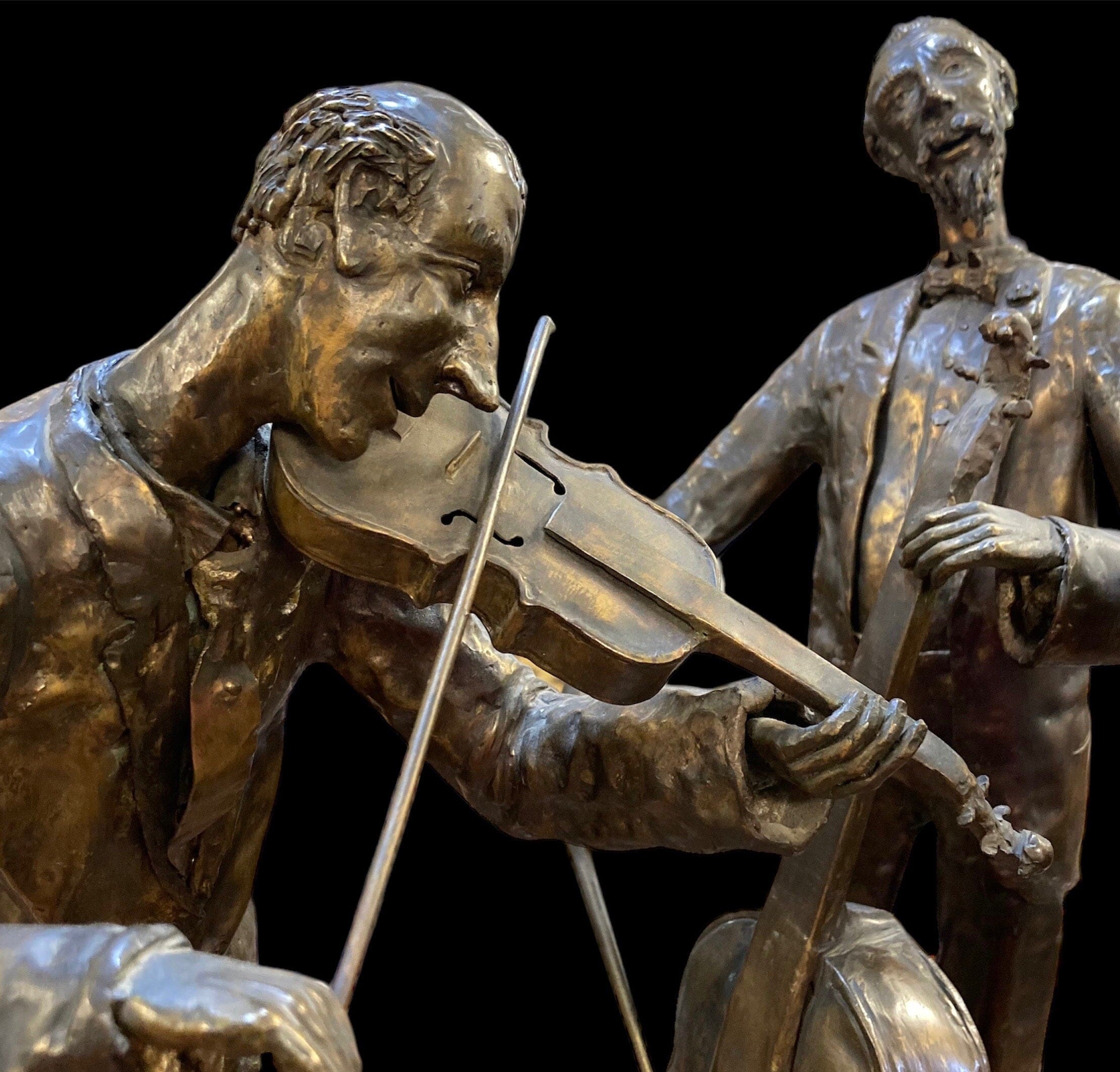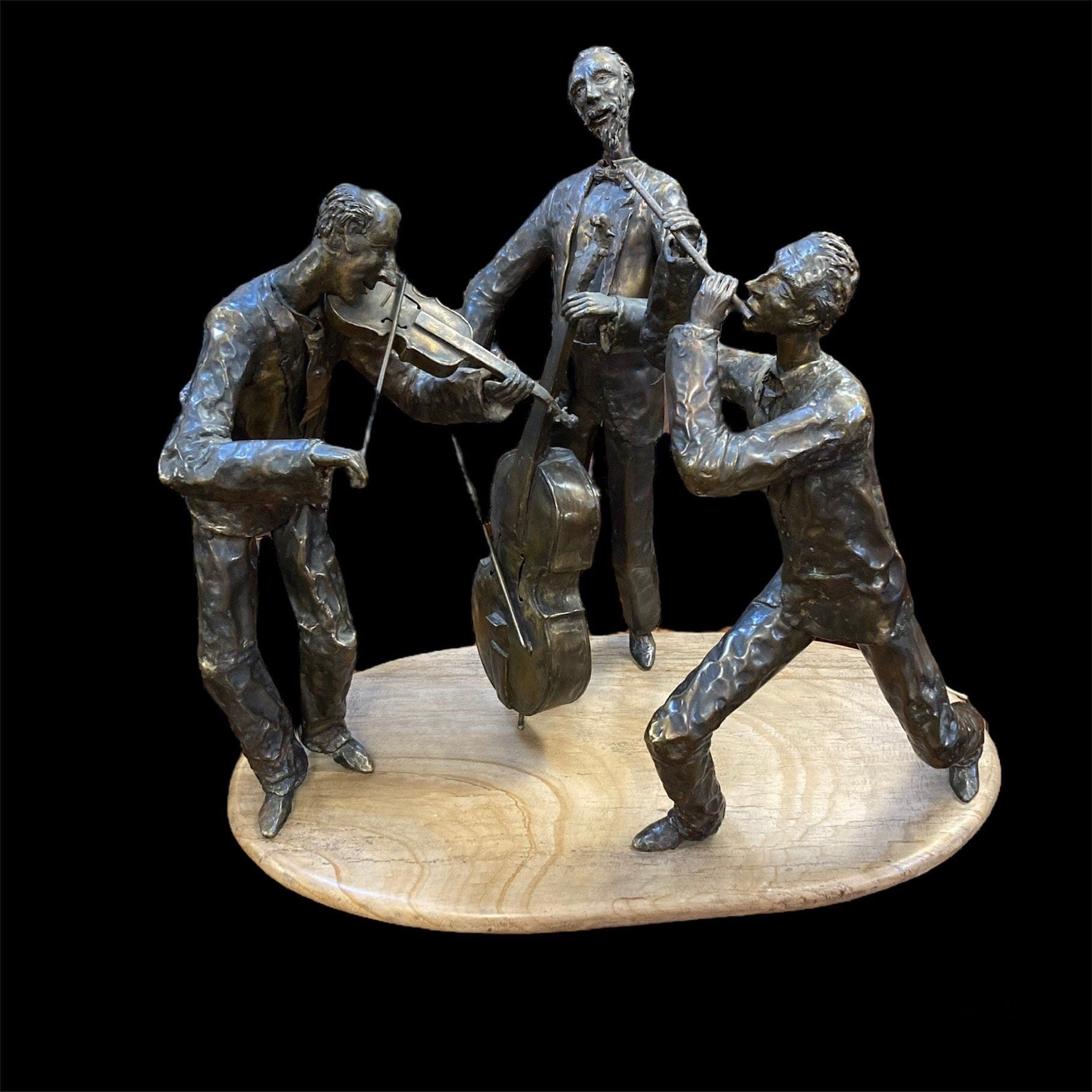 Javier Canedo - Escultura tres músicos en bronce y base de mármol 1996