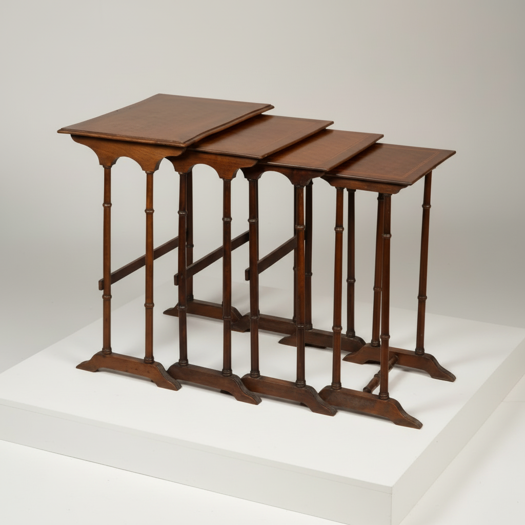 Conjunto de 4 mesas gigognes en madera enchapada, marquetería de cubos.