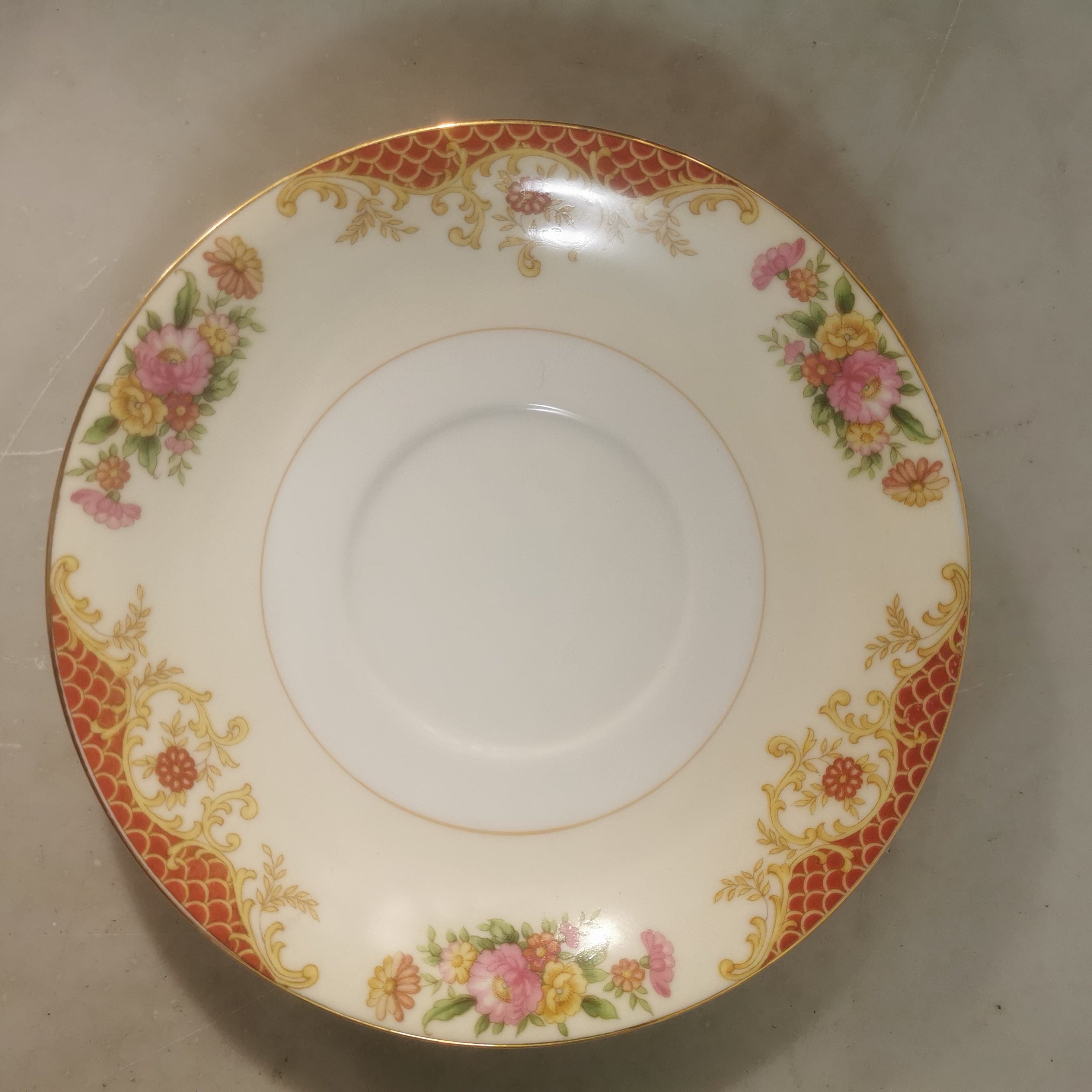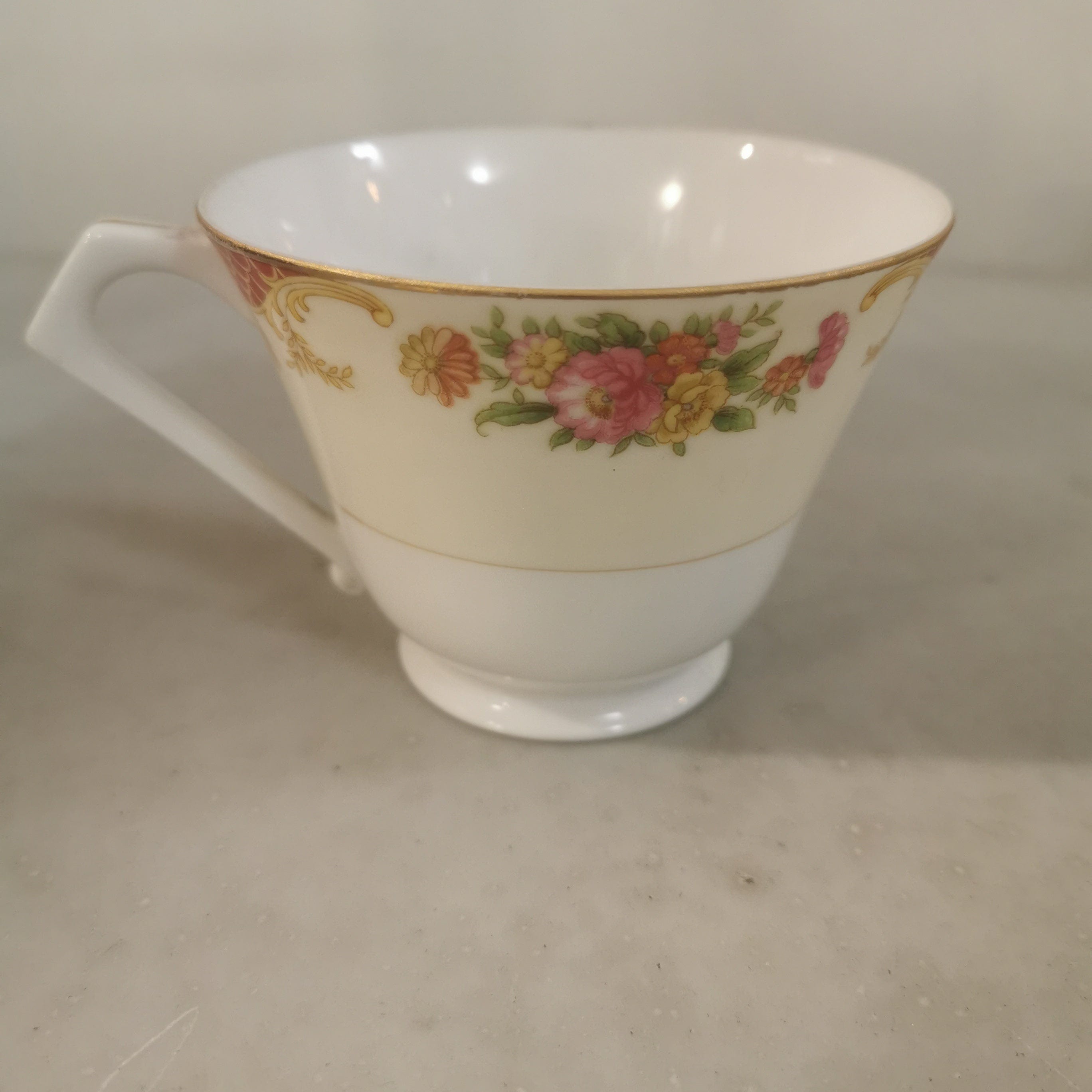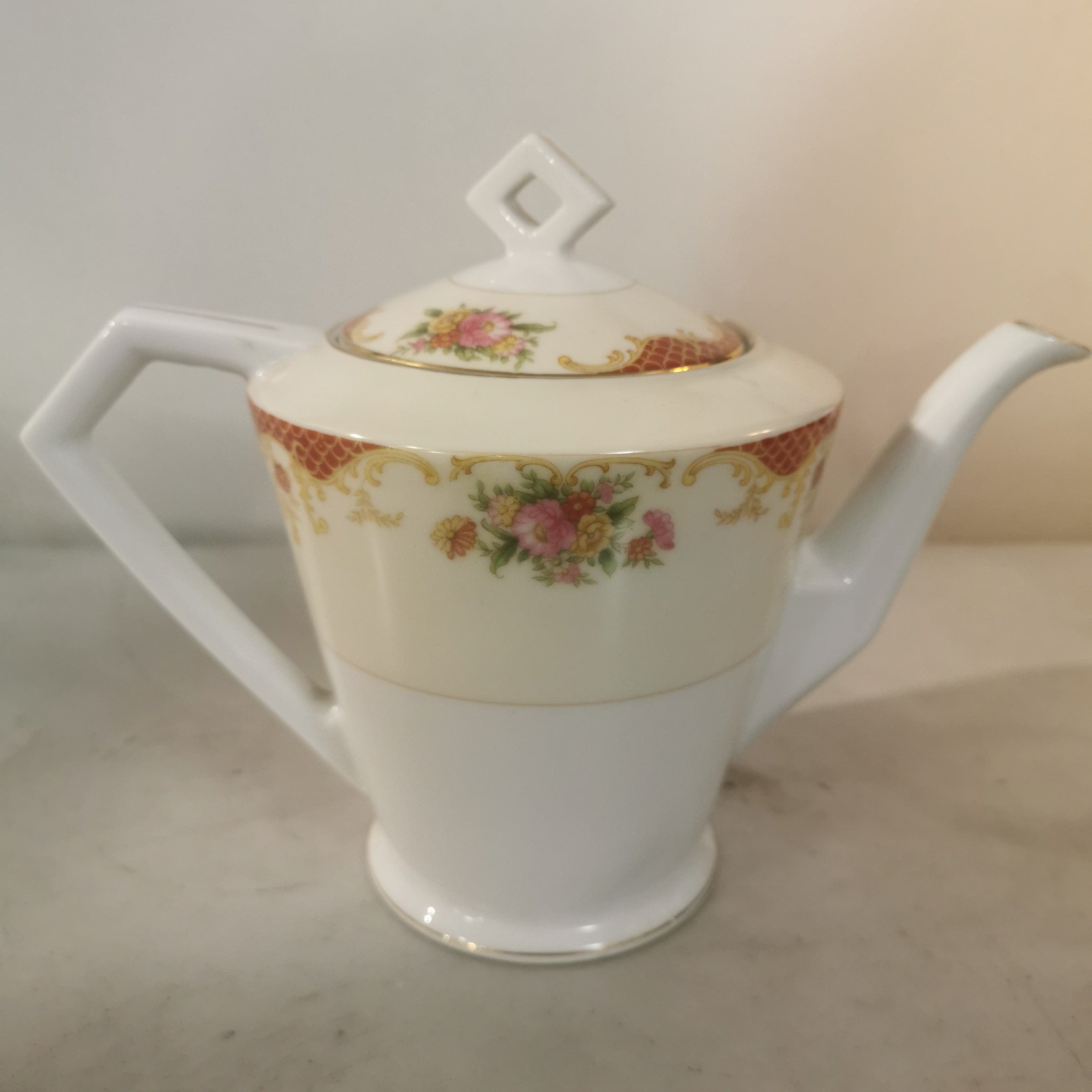 Precioso conjunto de té de porcelana Noritake para seis personas . El conjunto tiene bellos motivos florales y finas líneas doradas.