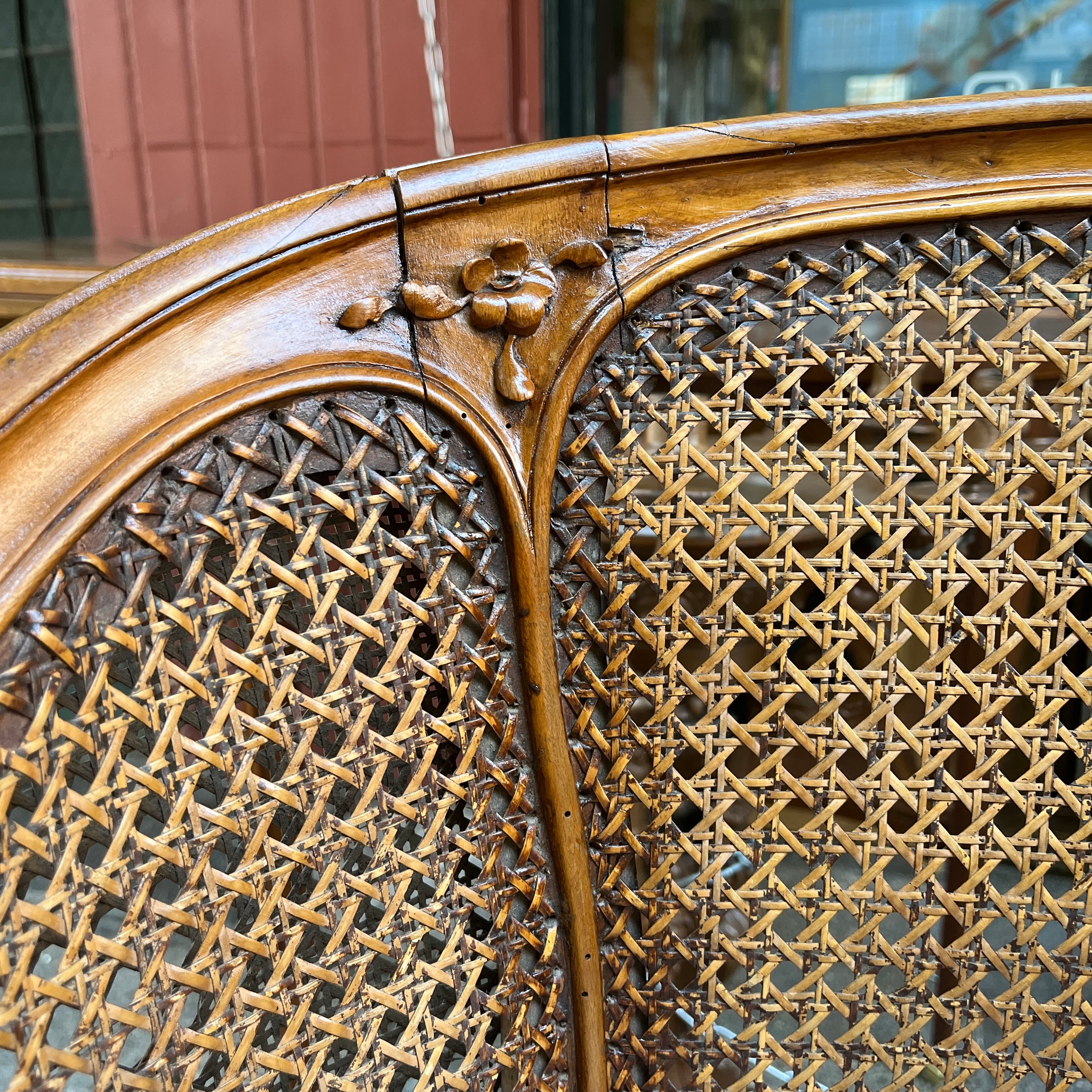 Sitial francés estilo Luís XV de haya enjuncado y clavetones de bronce circa 1900