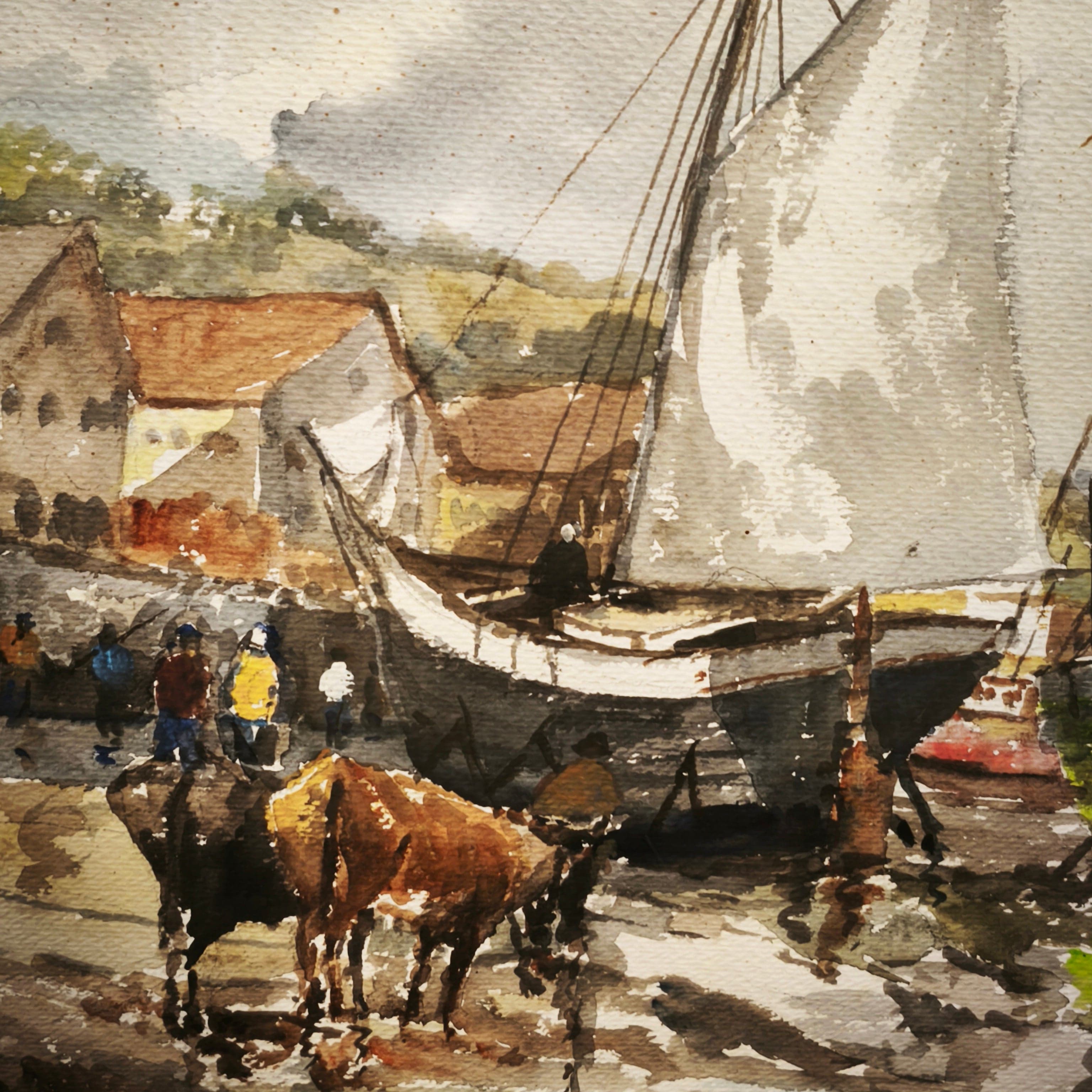 Santiago Alegria - Acuarela 'Descarga en la orilla'