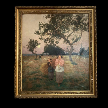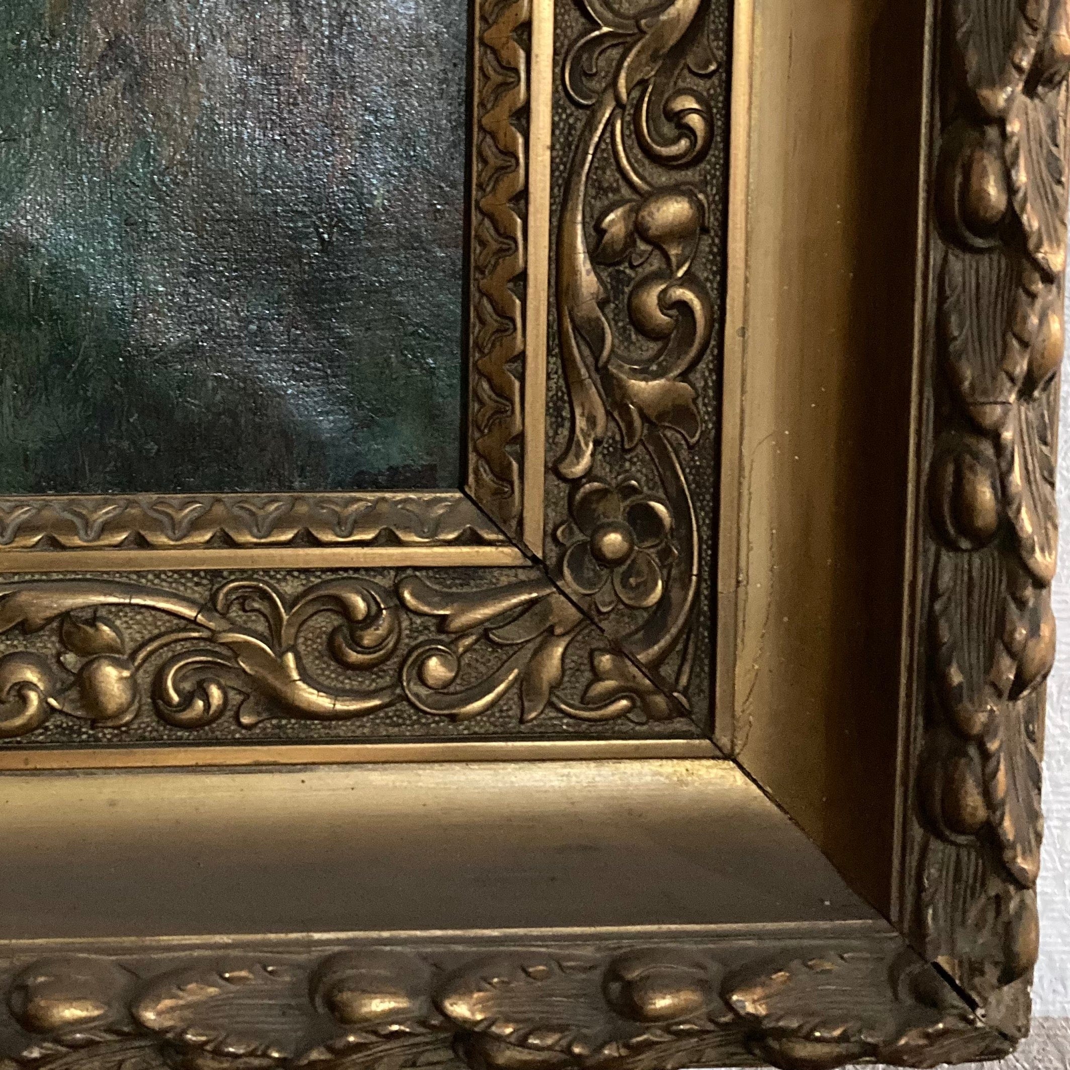 Óleo sobre tela Escuela Francesa siglo XIX, del destacado autor Victor Binet. Bello marco de madera y yeso bañado en ormolú.
