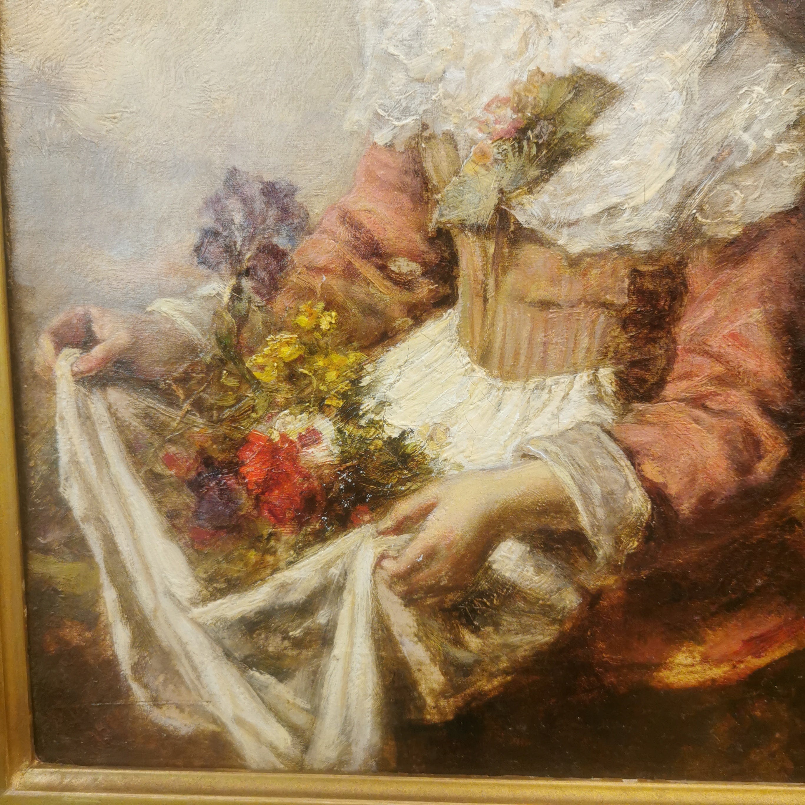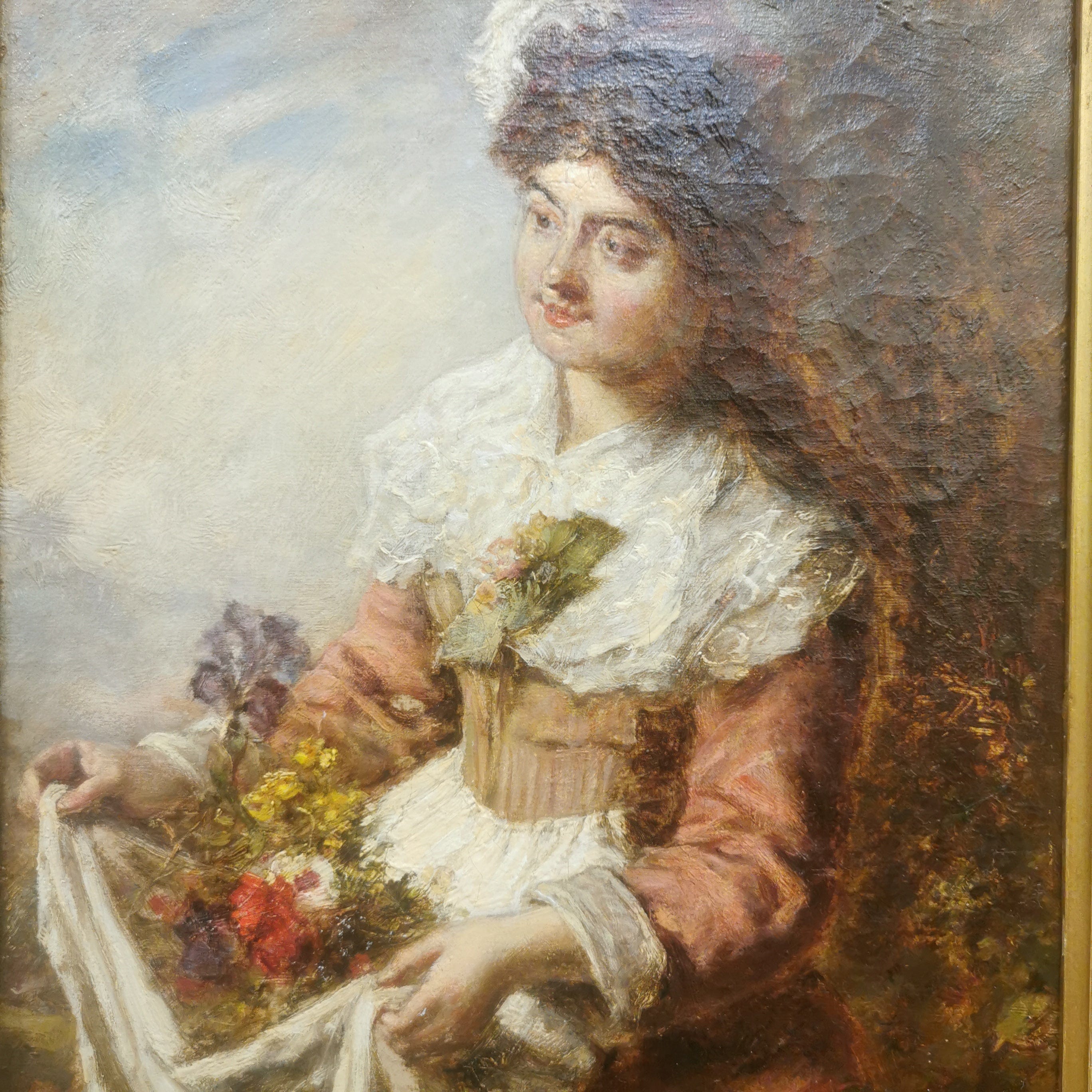 Anónimo - Óleo sobre tela 'Mujer recolectando flores'