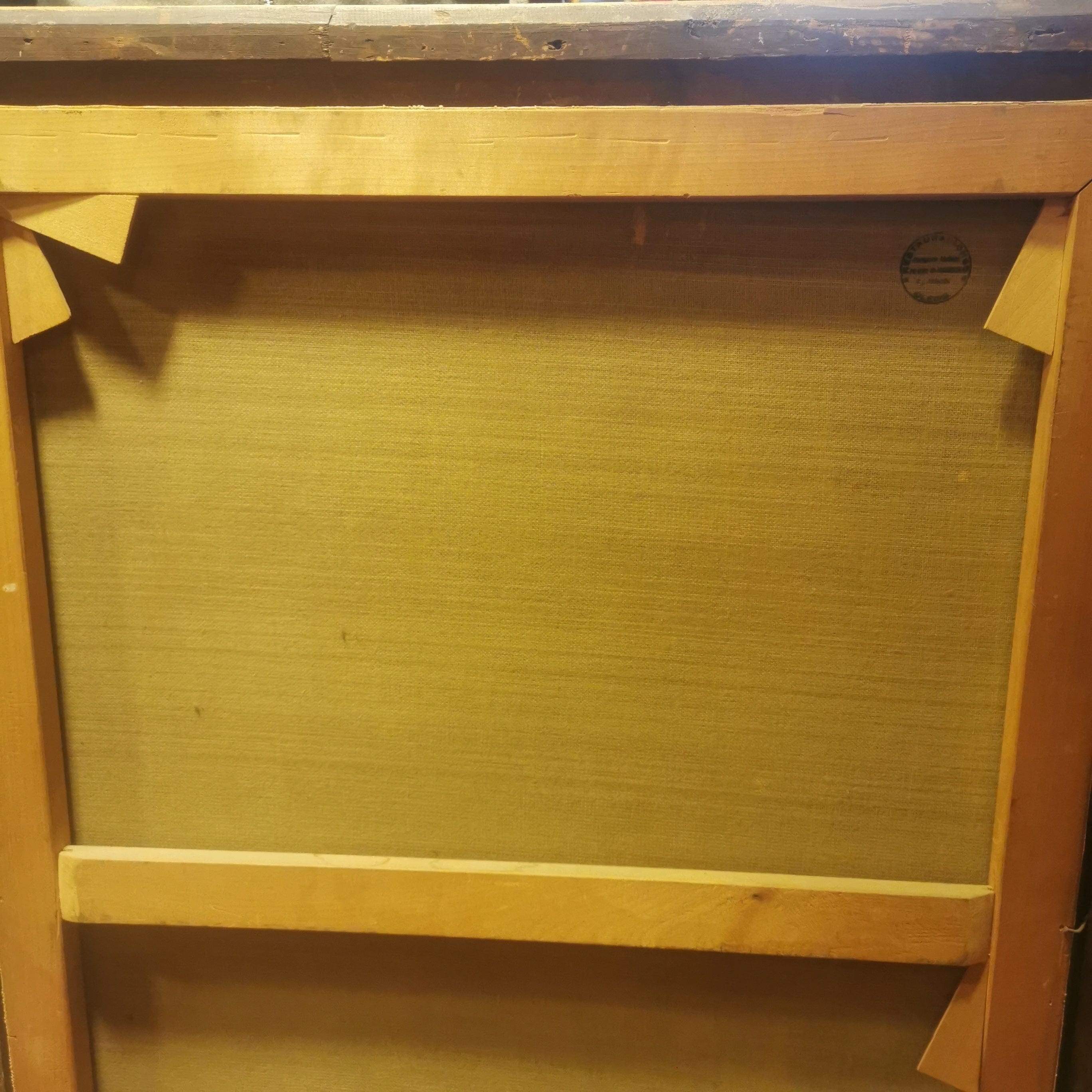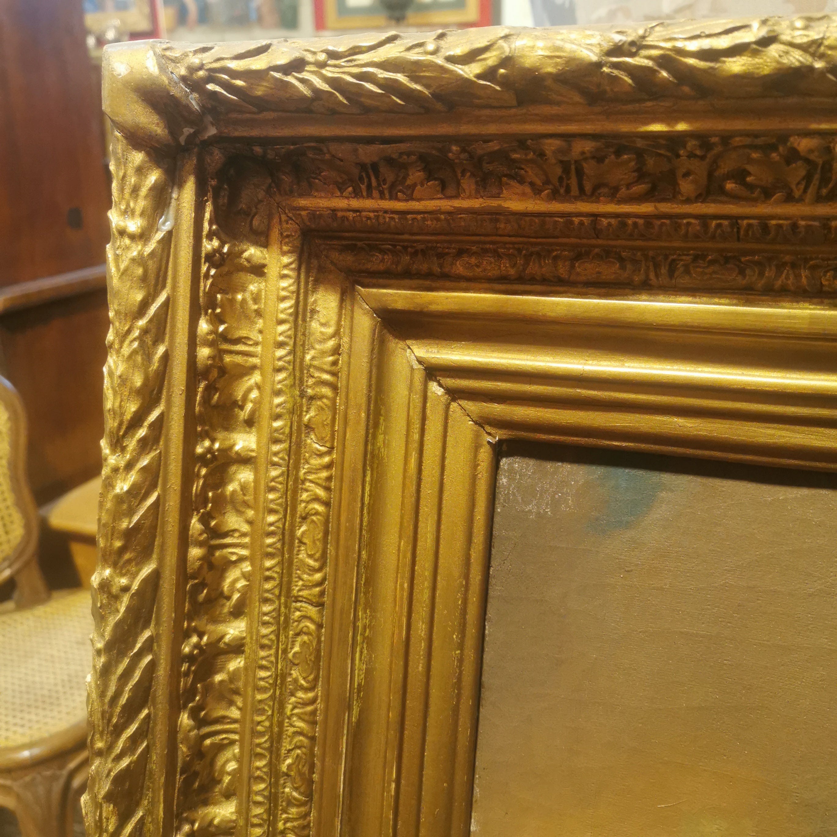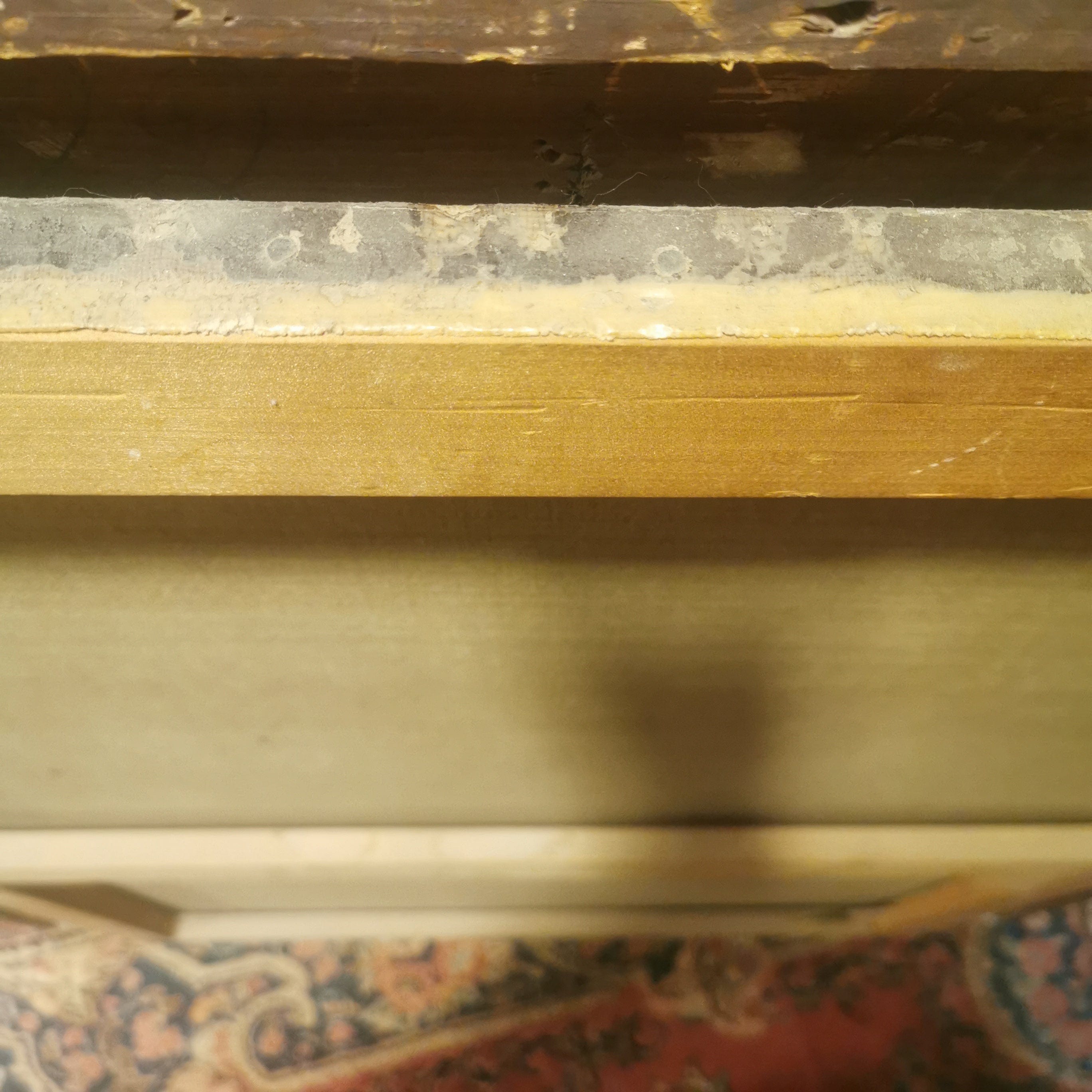 El cuadro fue sobrepuesto al marco que no es original, le faltan 8cm de luz. Obra re entelada.