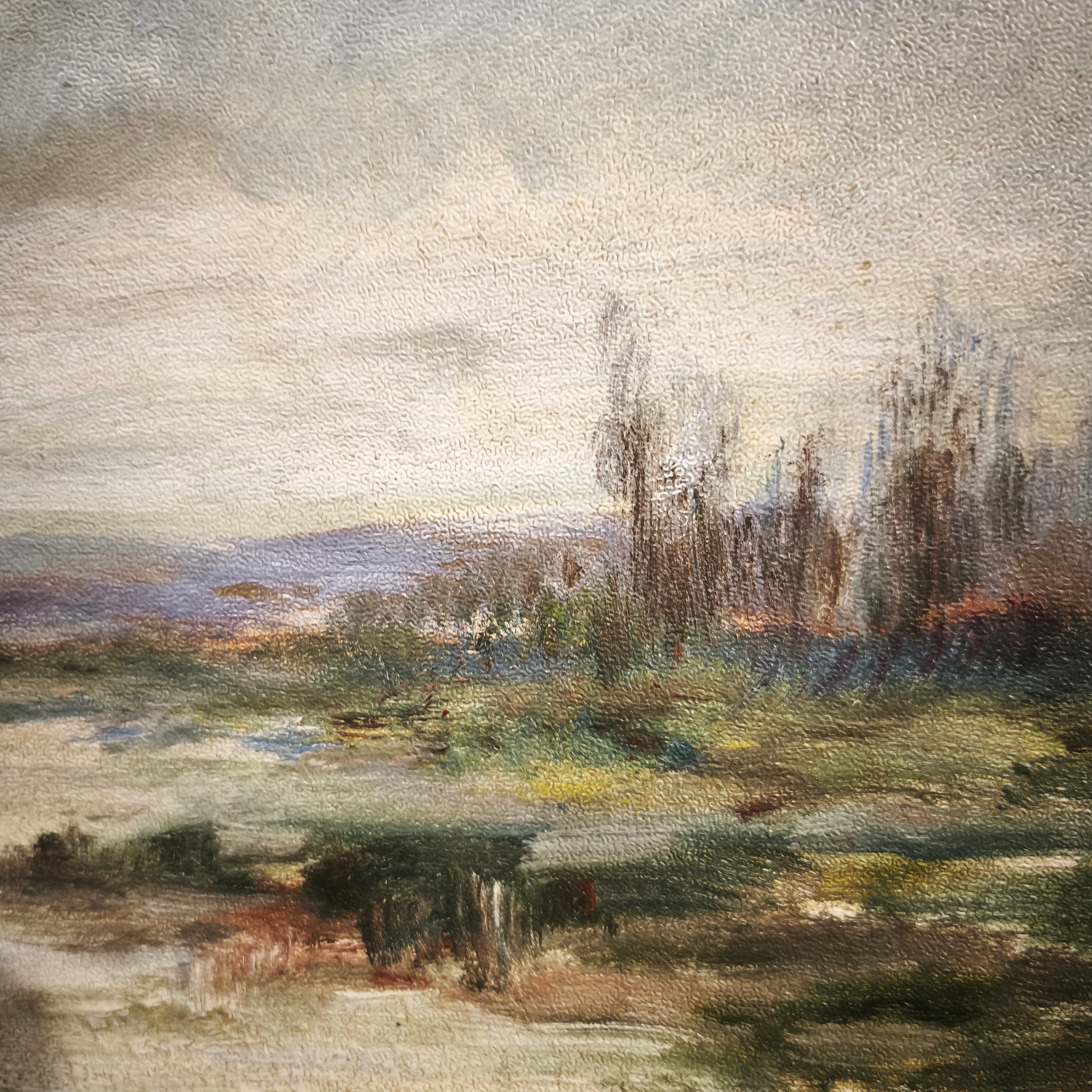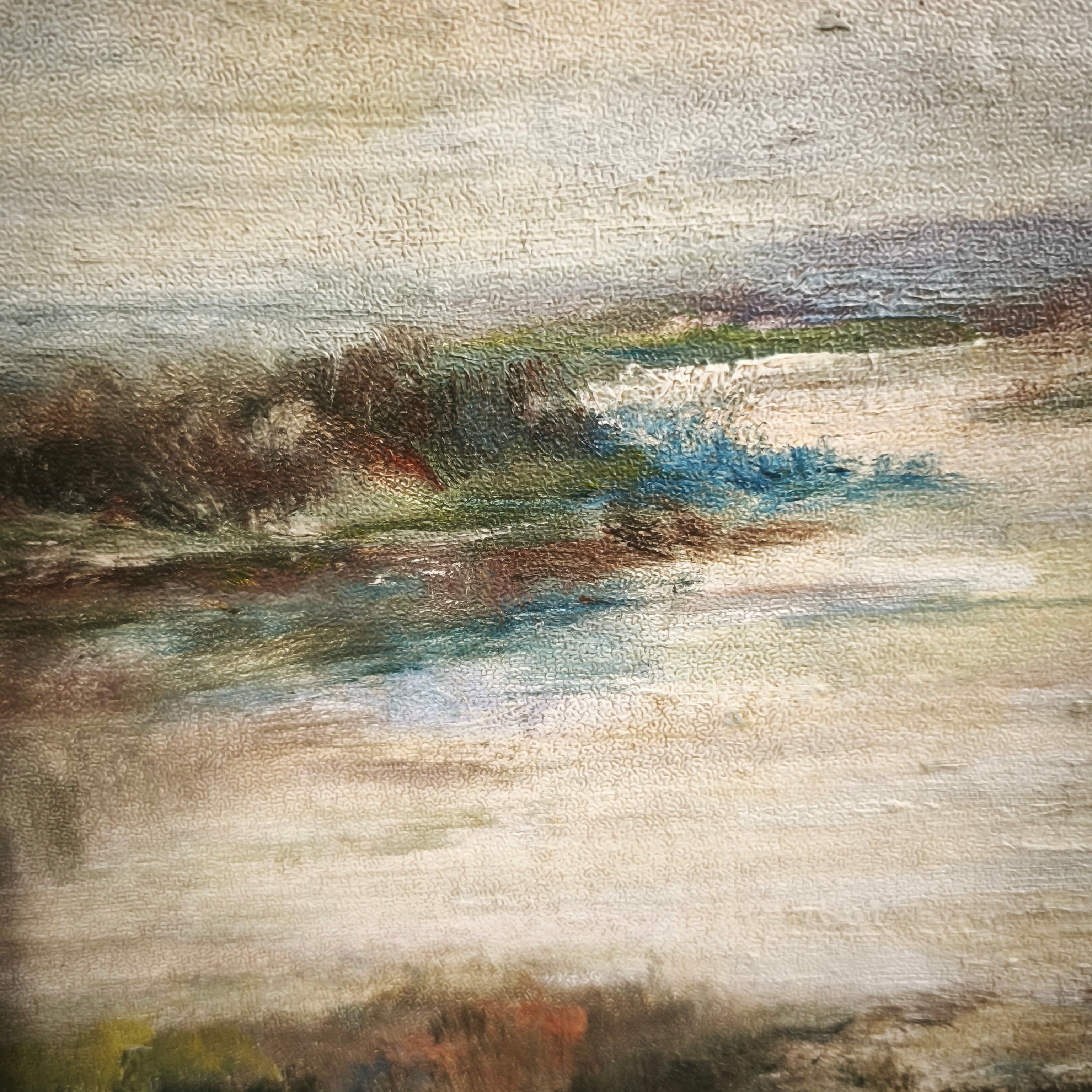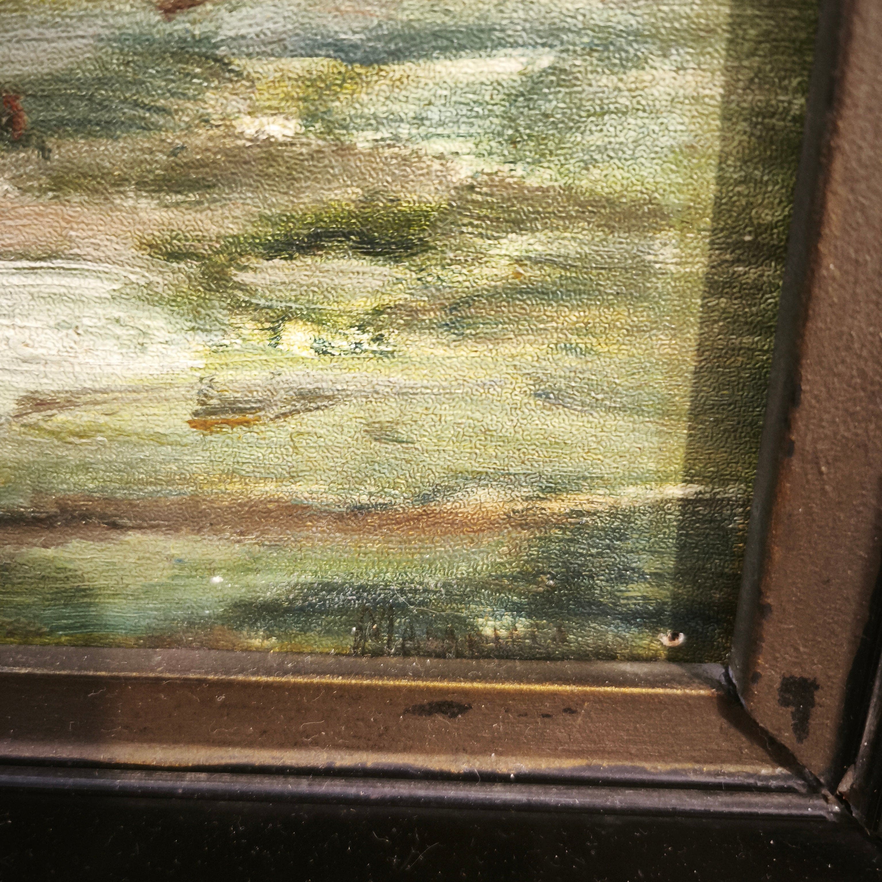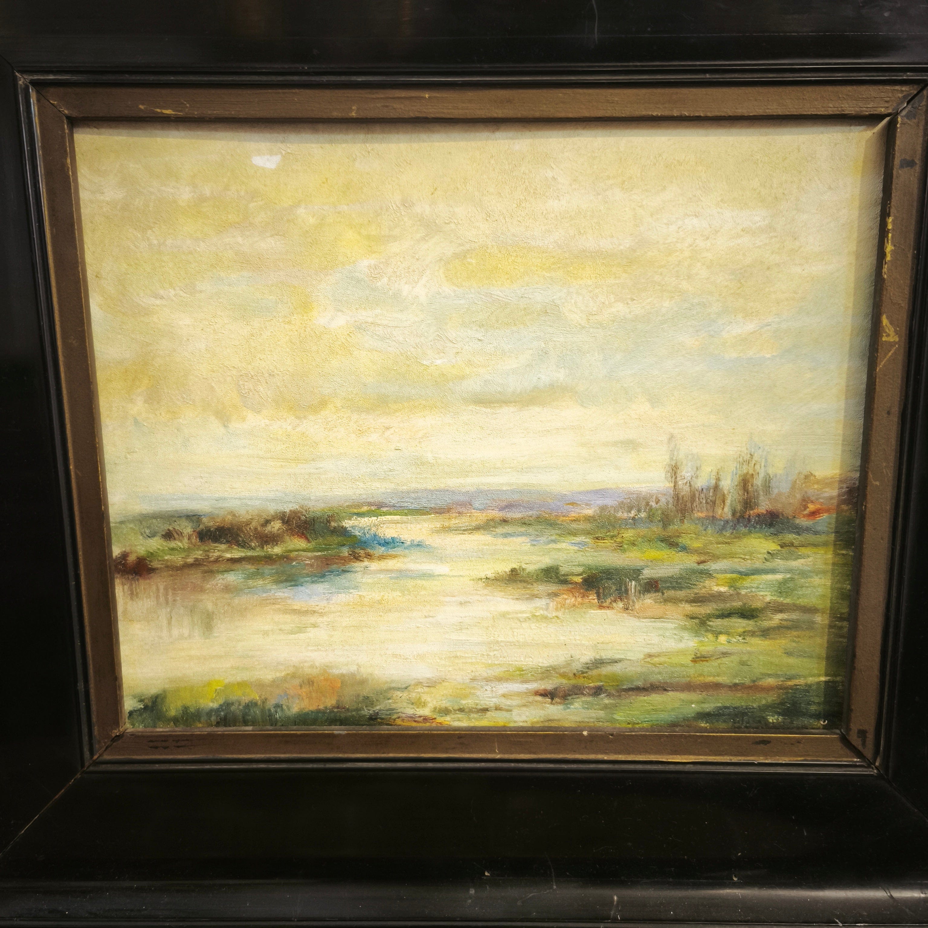Firma ilegible - Óleo sobre madera entelada 'paisaje de humedal'