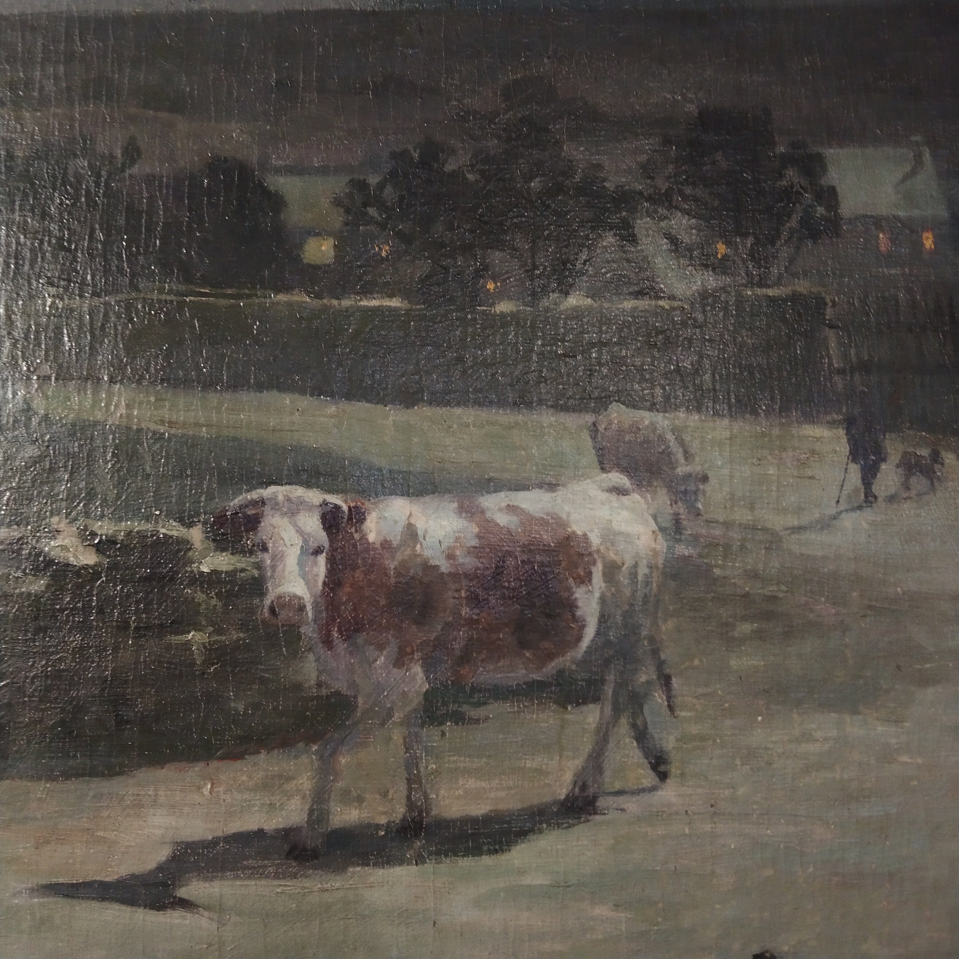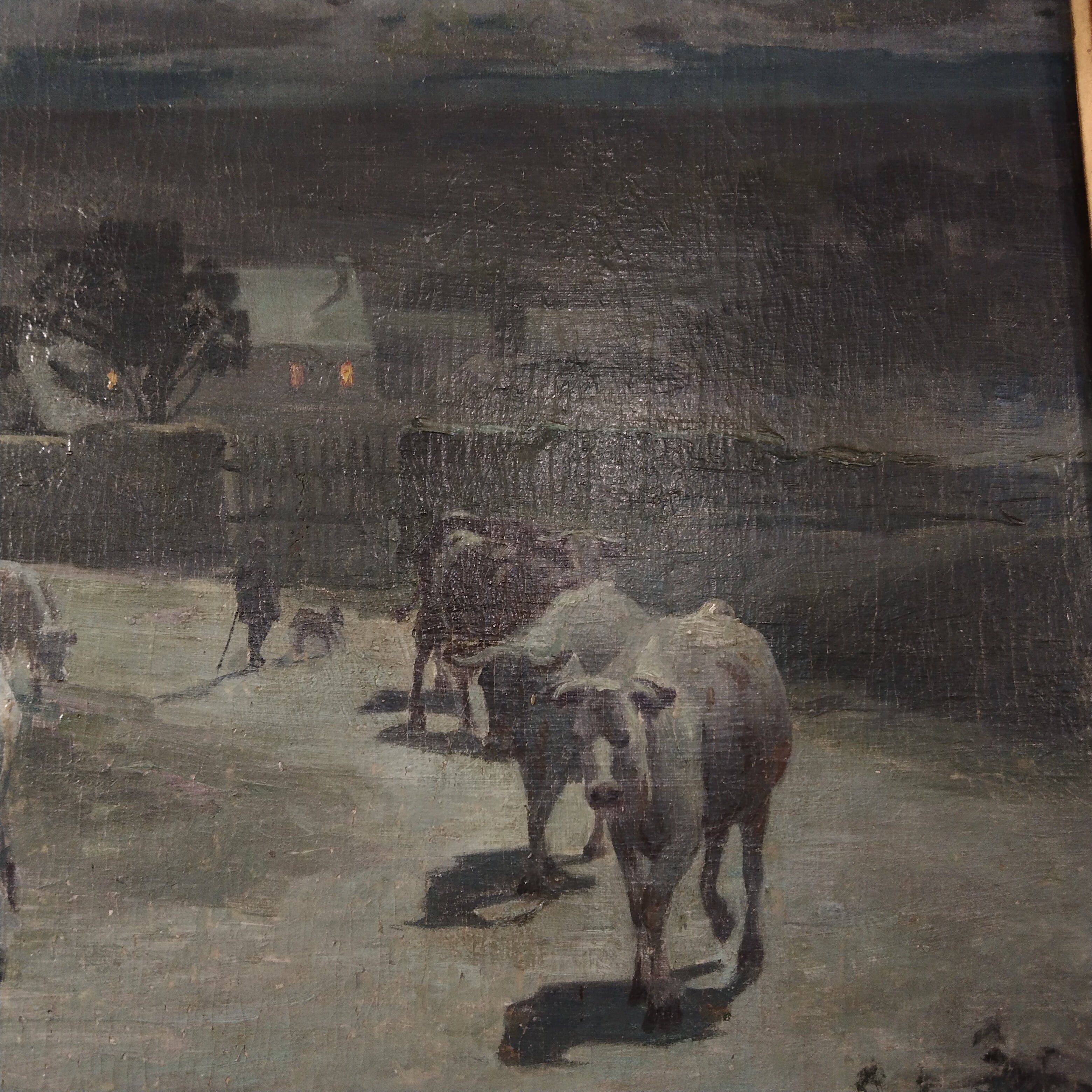 René His - Óleo sobre madera 'Rebaño de noche' - 1899