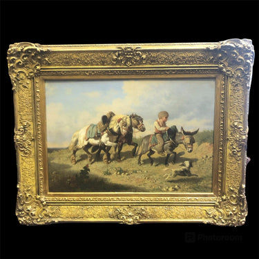 Hermoso Oleo del pintor Francés, Theodore Fort (1810- 1896) la obra está enmarcada con bello marco de madera en dorado.