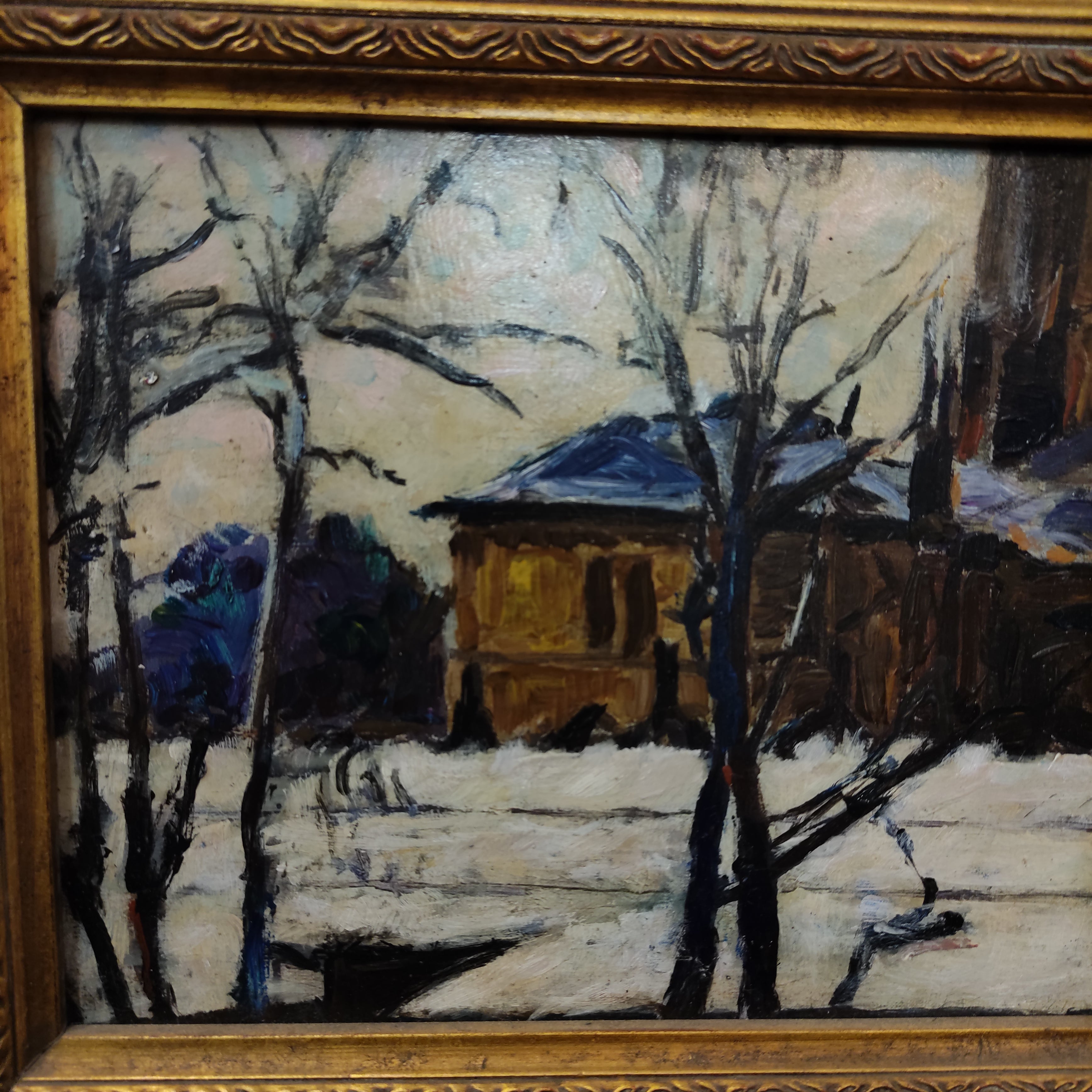 Anónimo - Óleo sobre madera 'Casa en la nieve'