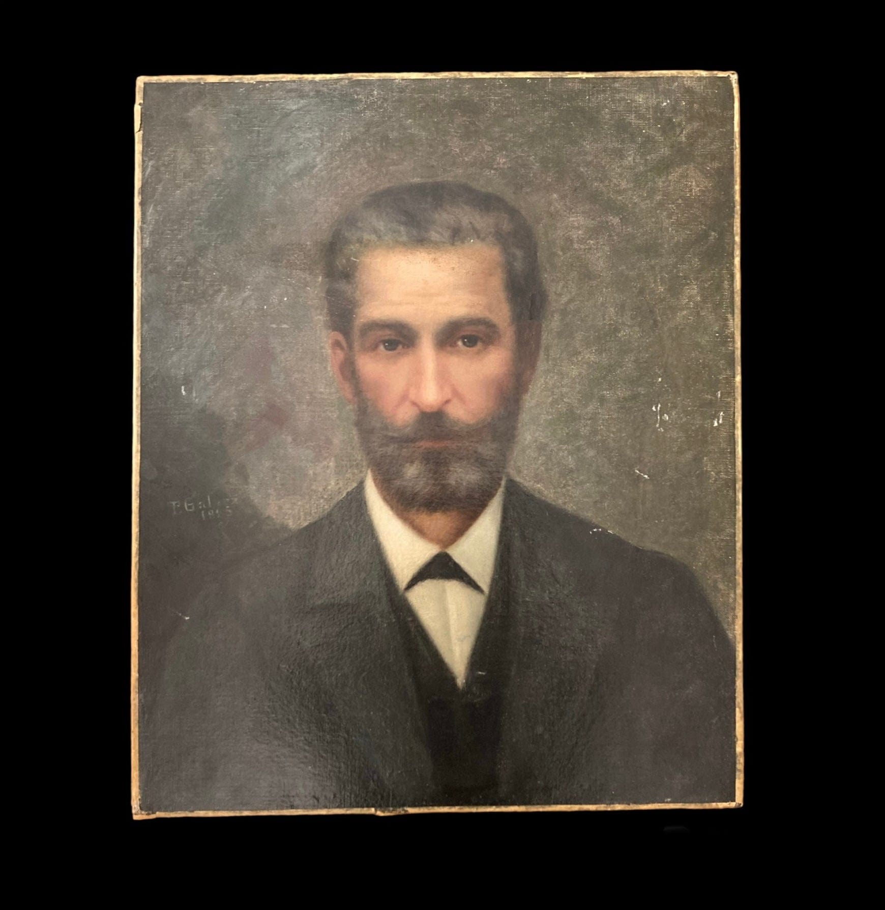 T. Galvez - Óleo "Retrato hombre antiguo"