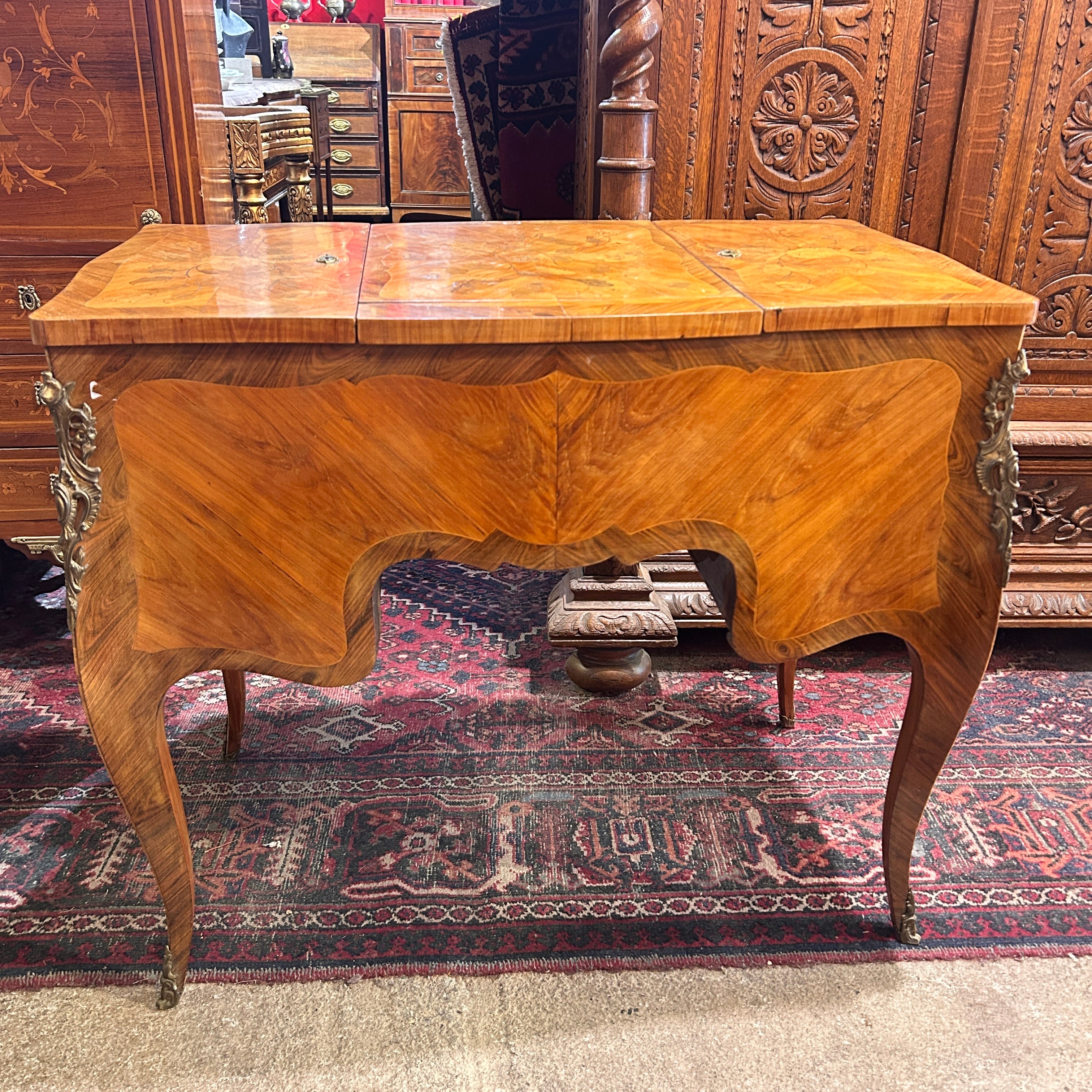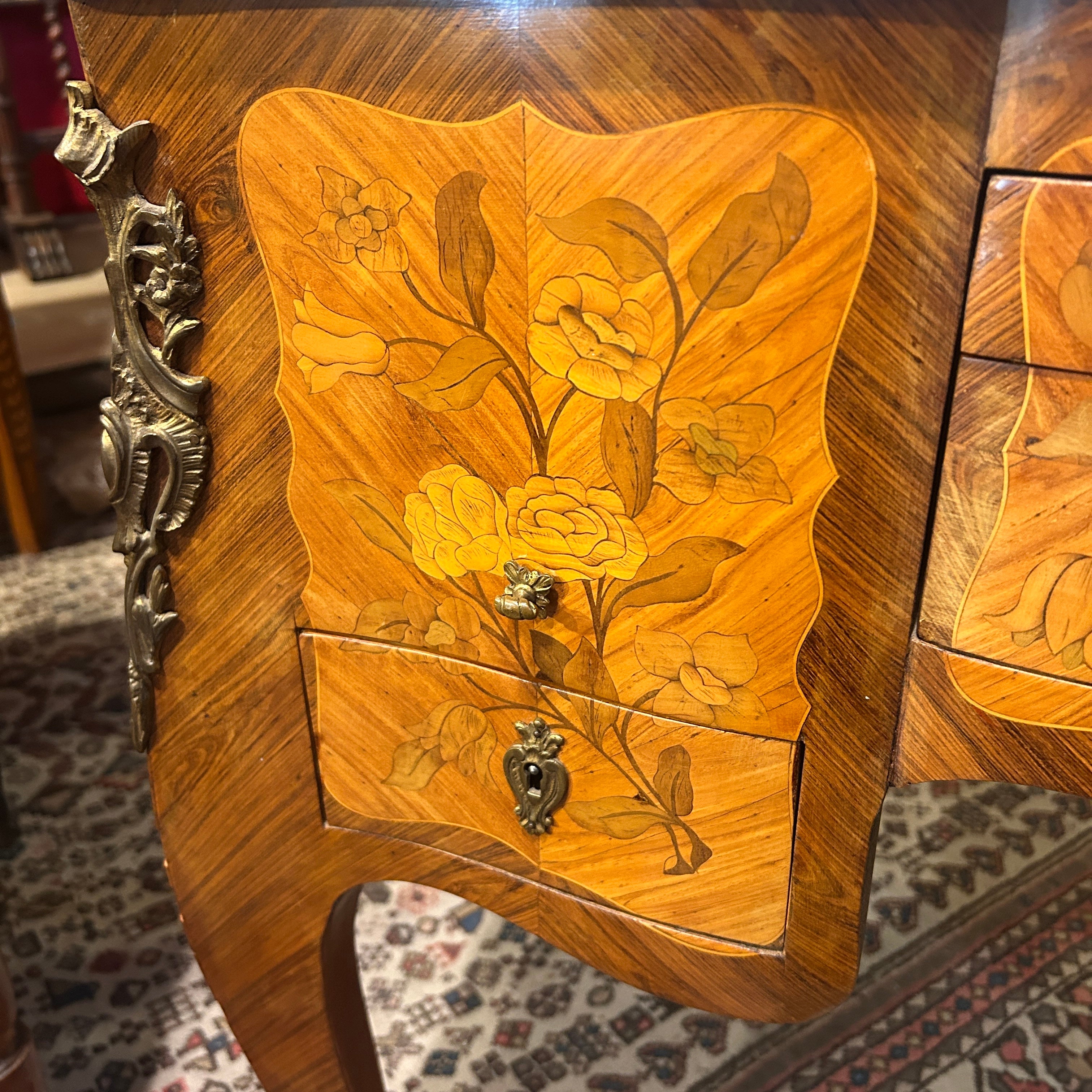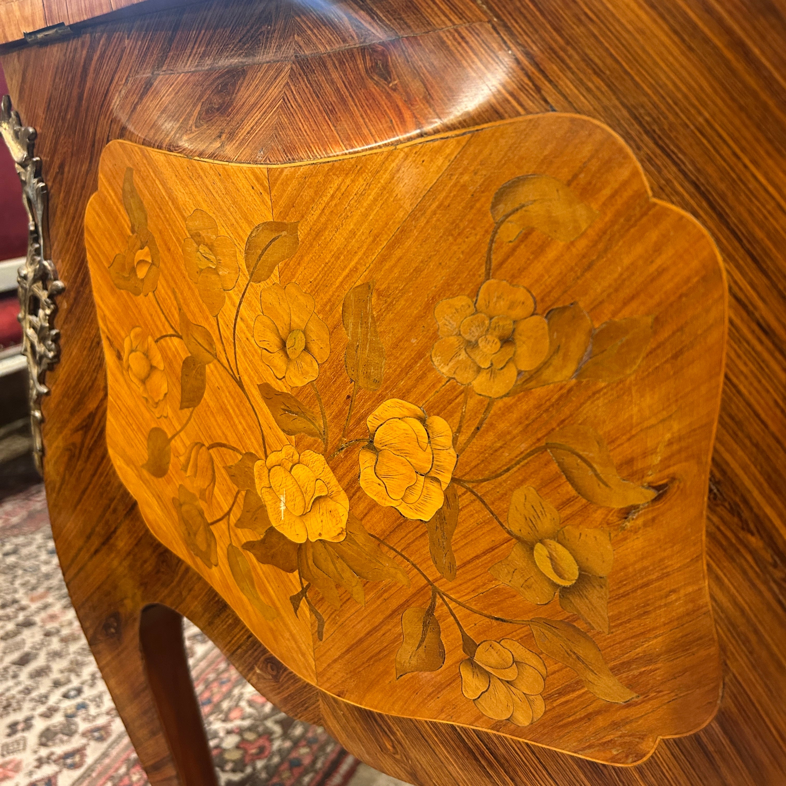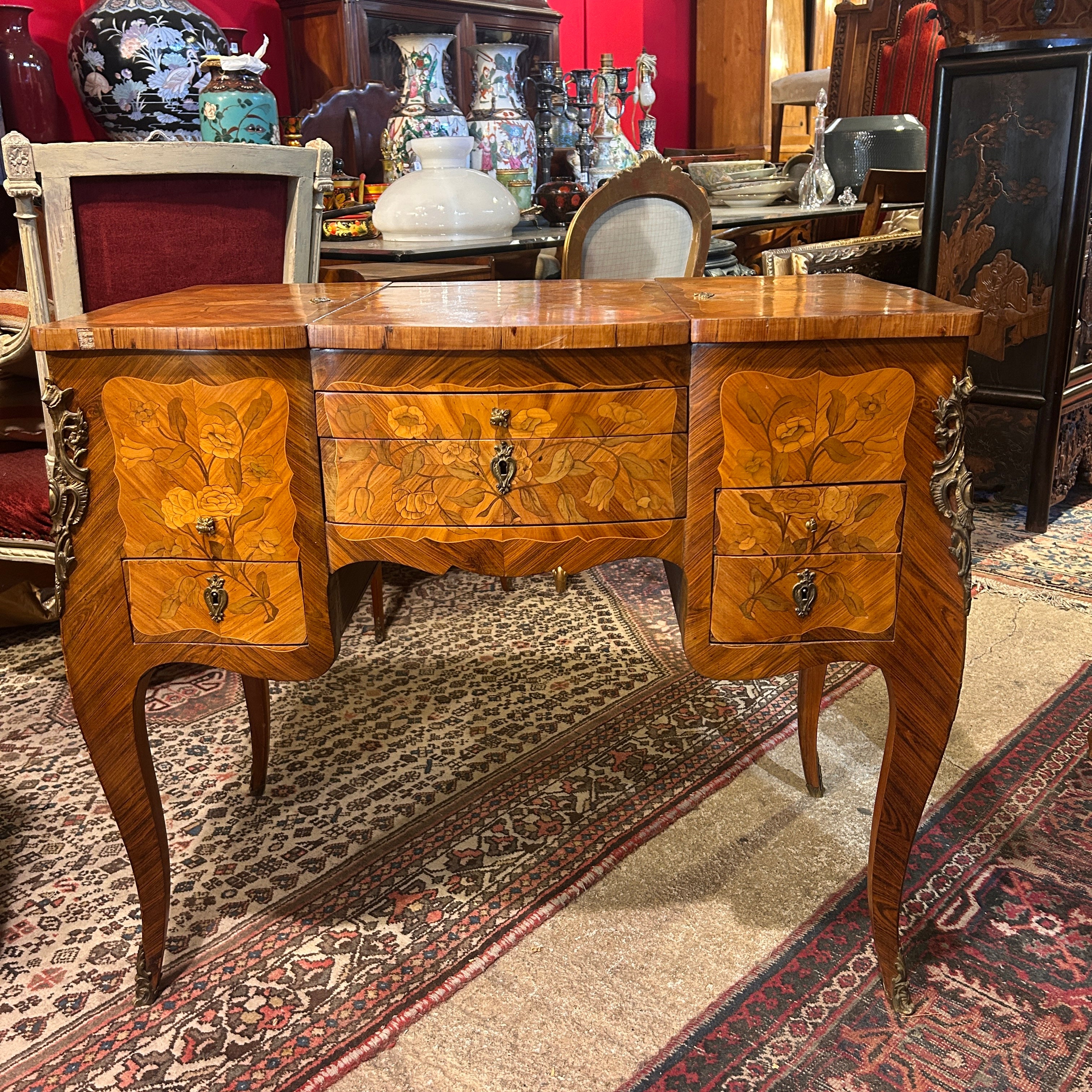Coiffeuse Luis XV marquetería floral y geométrica inicio s.XX
