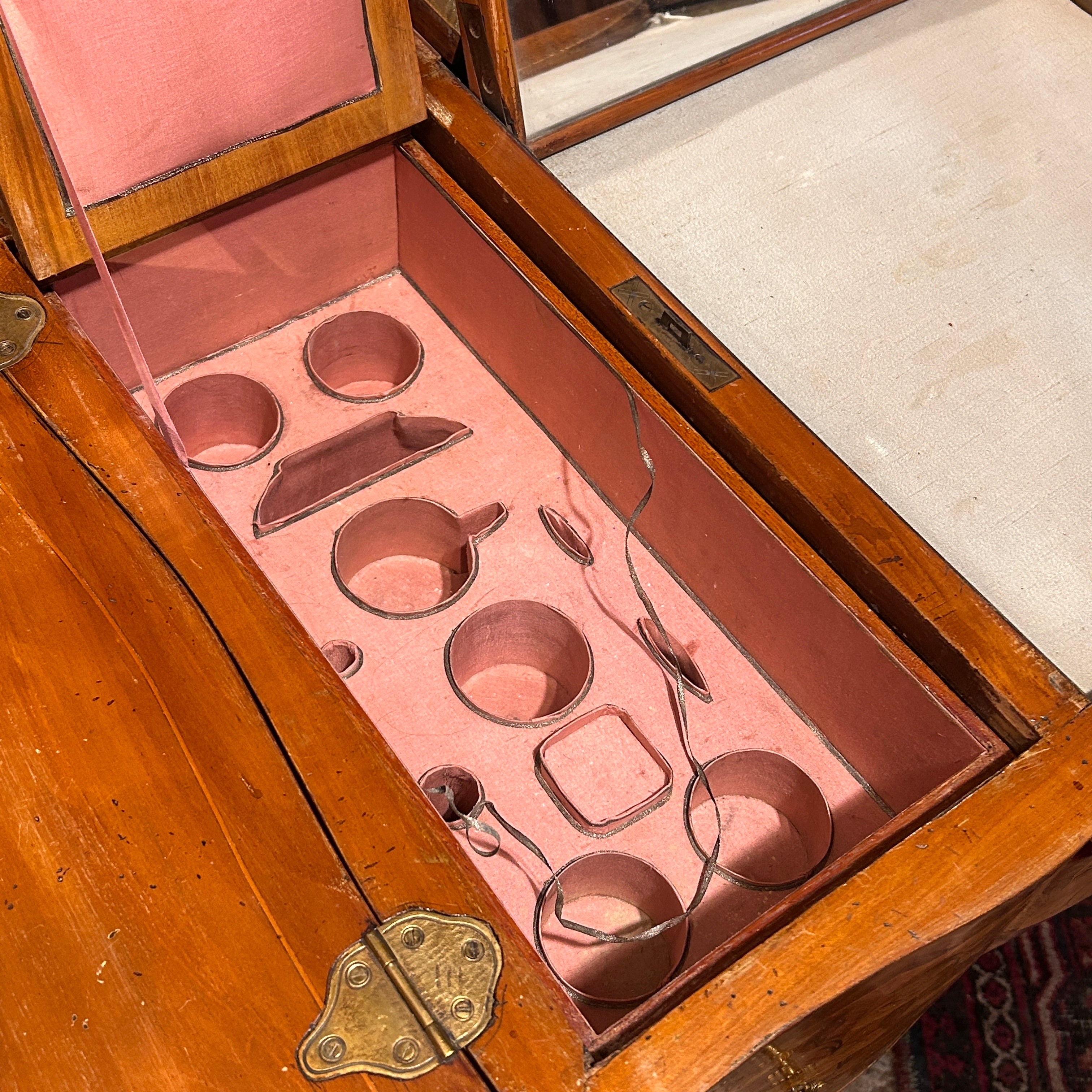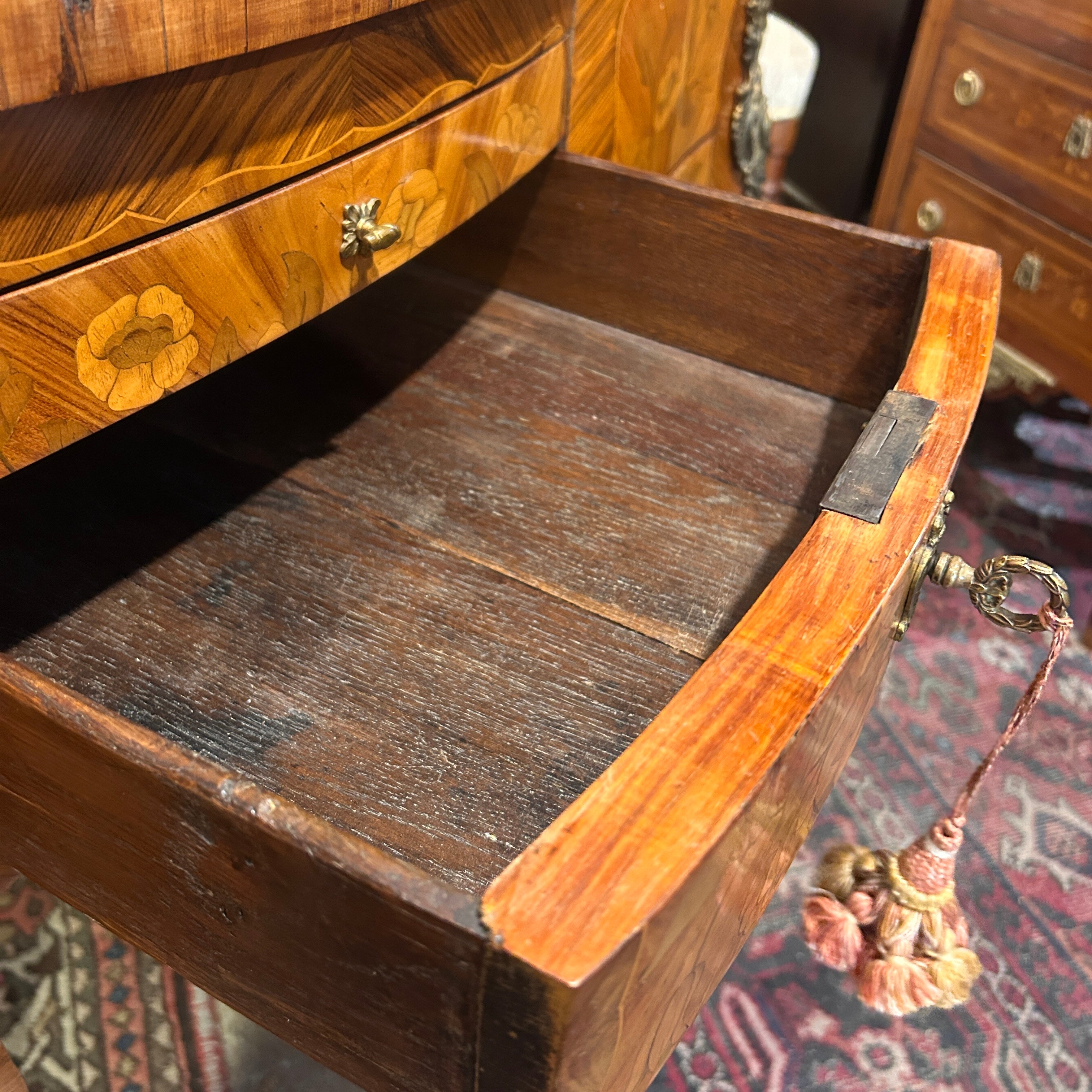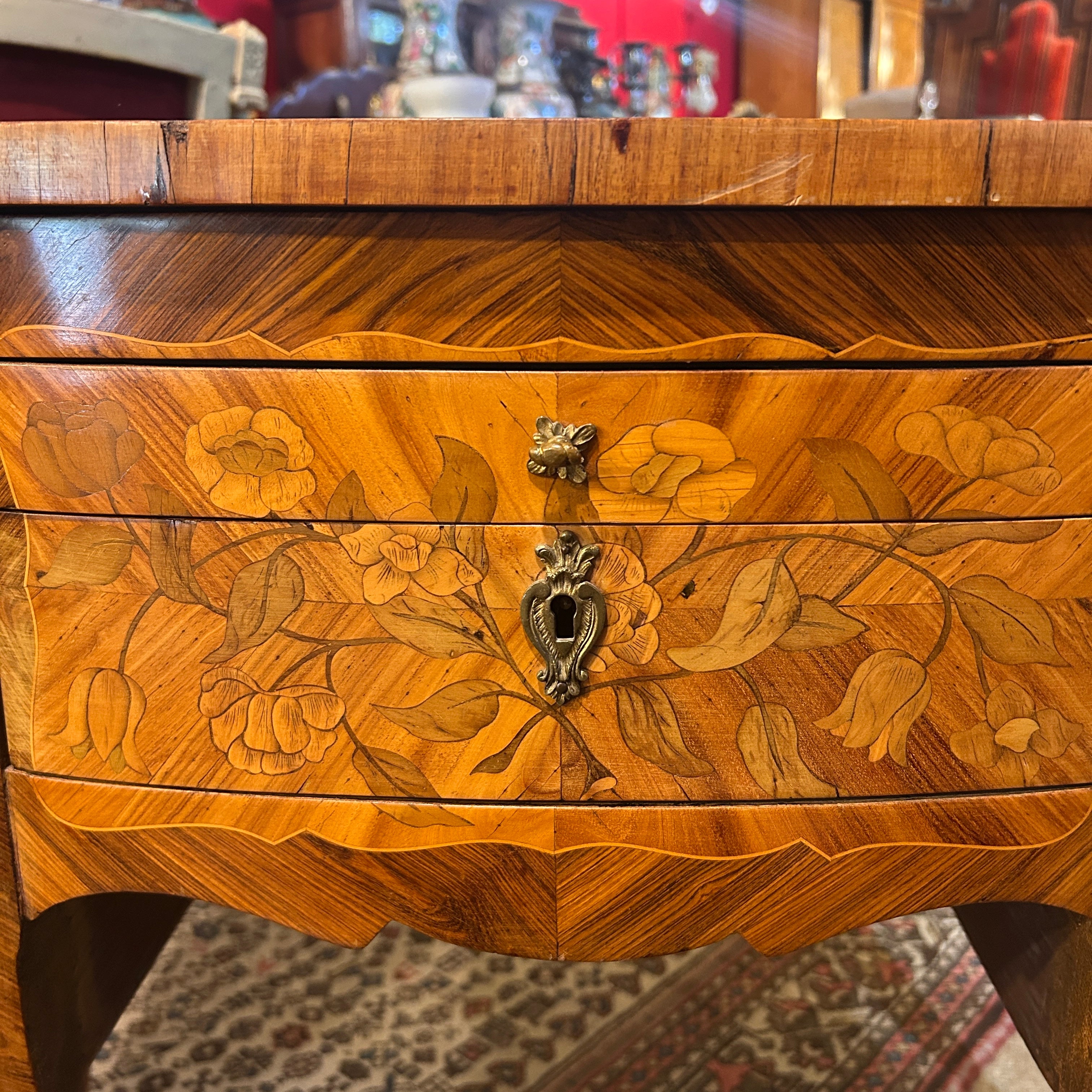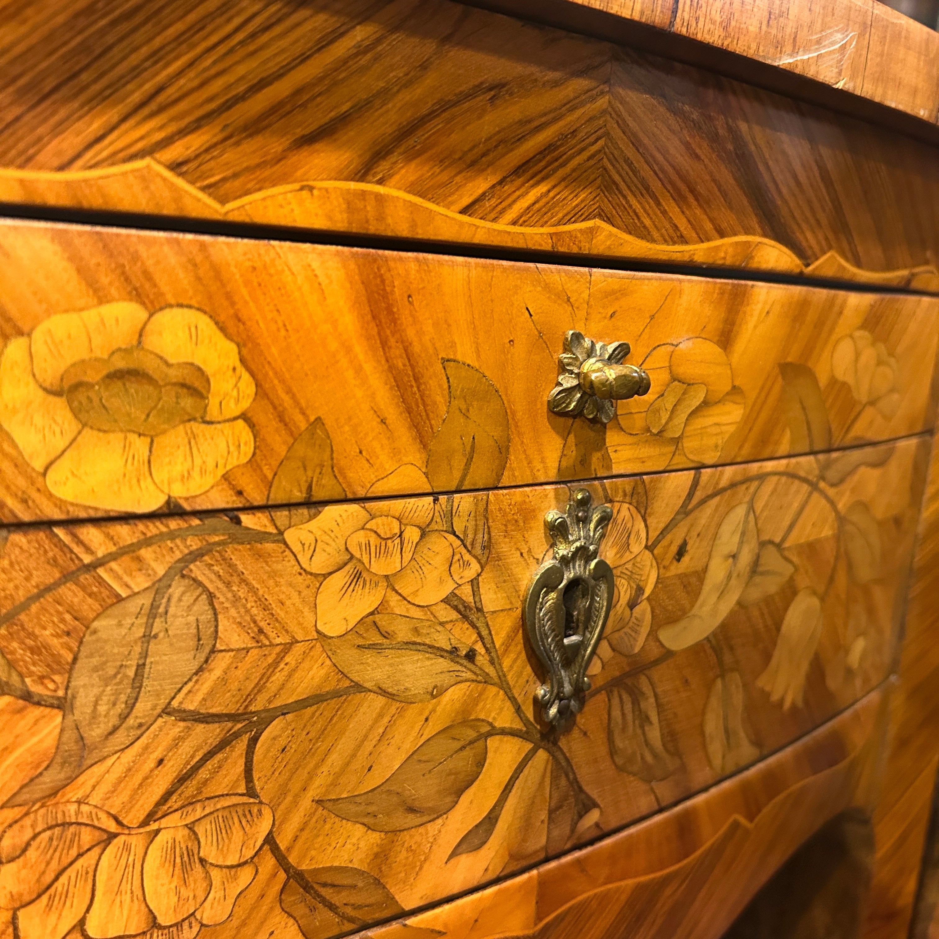 Coiffeuse Luis XV marquetería floral y geométrica inicio s.XX