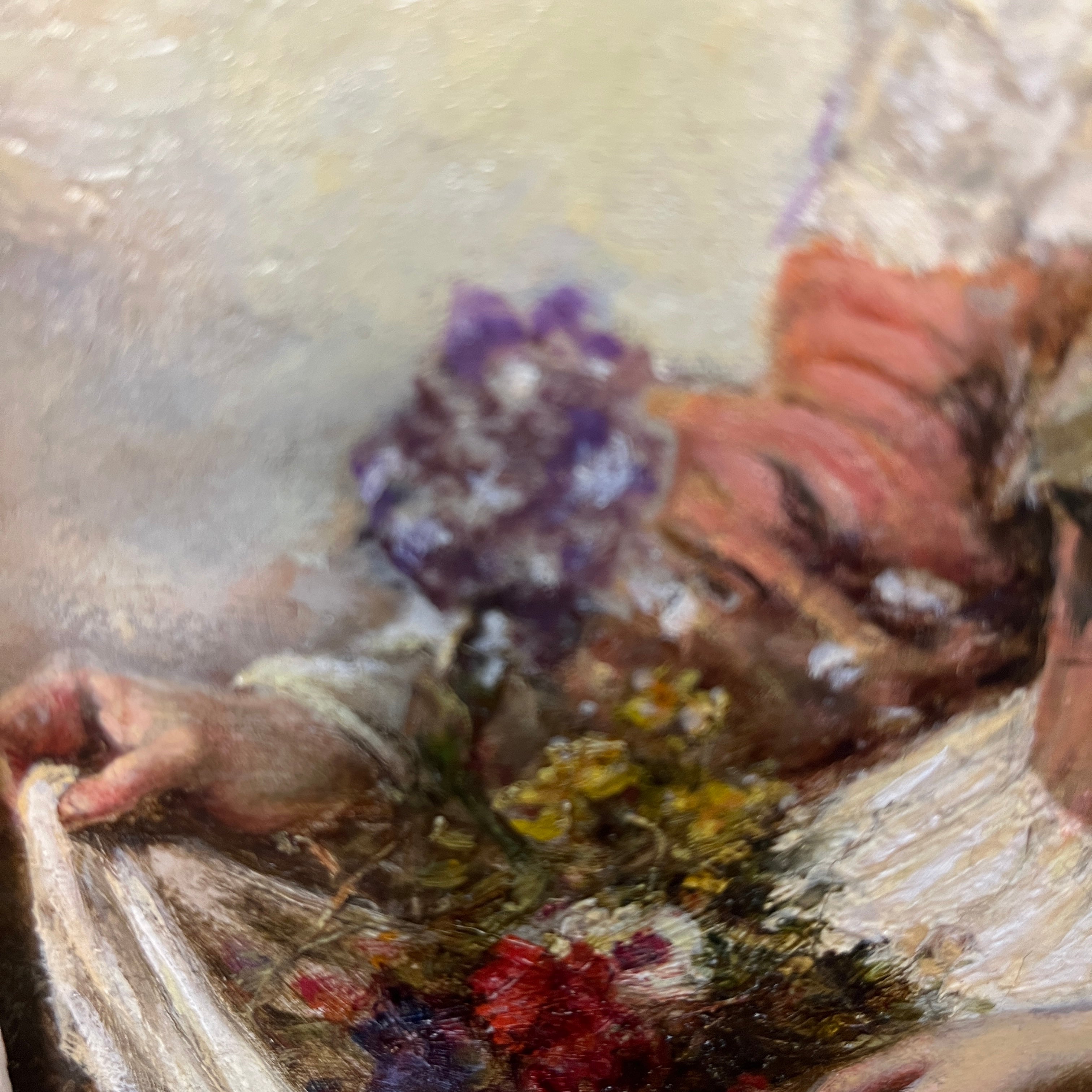 Eduardo León Garrido - Óleo sobre tela 'Mujer recolectando flores'