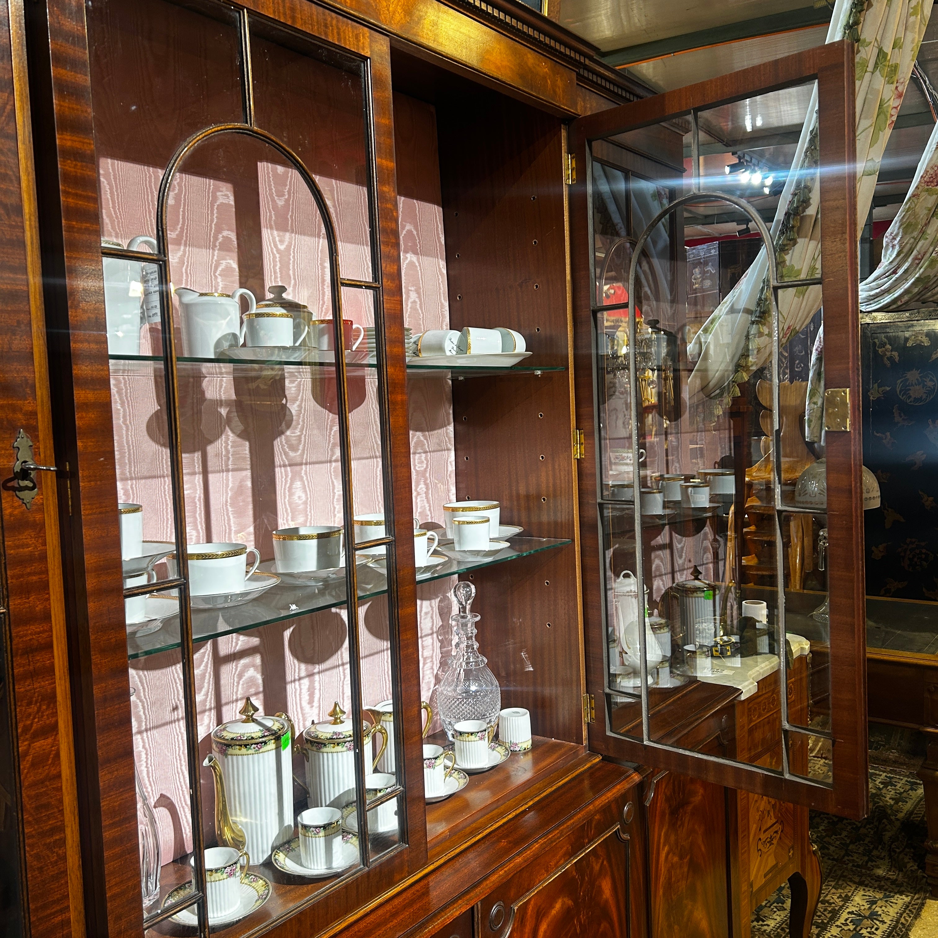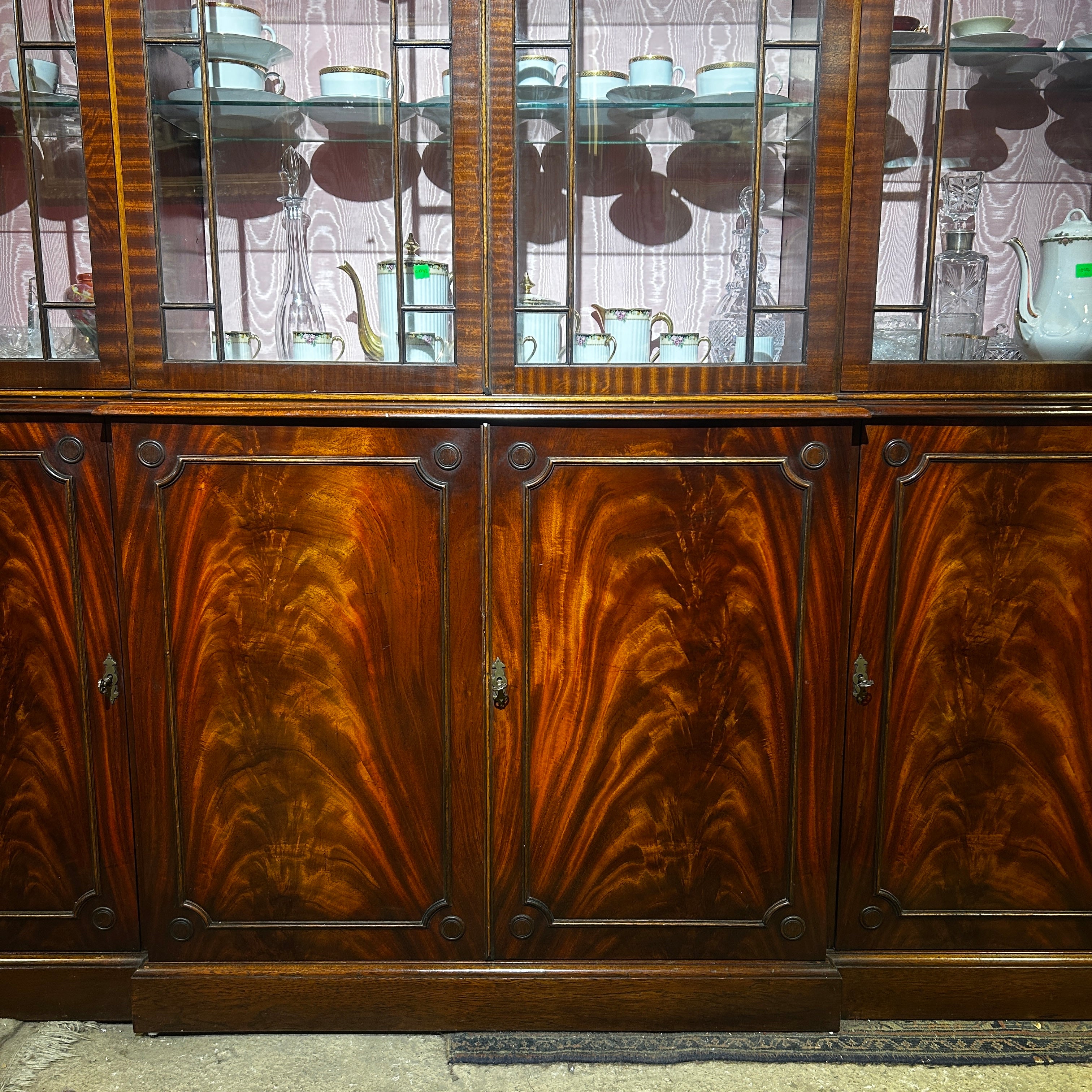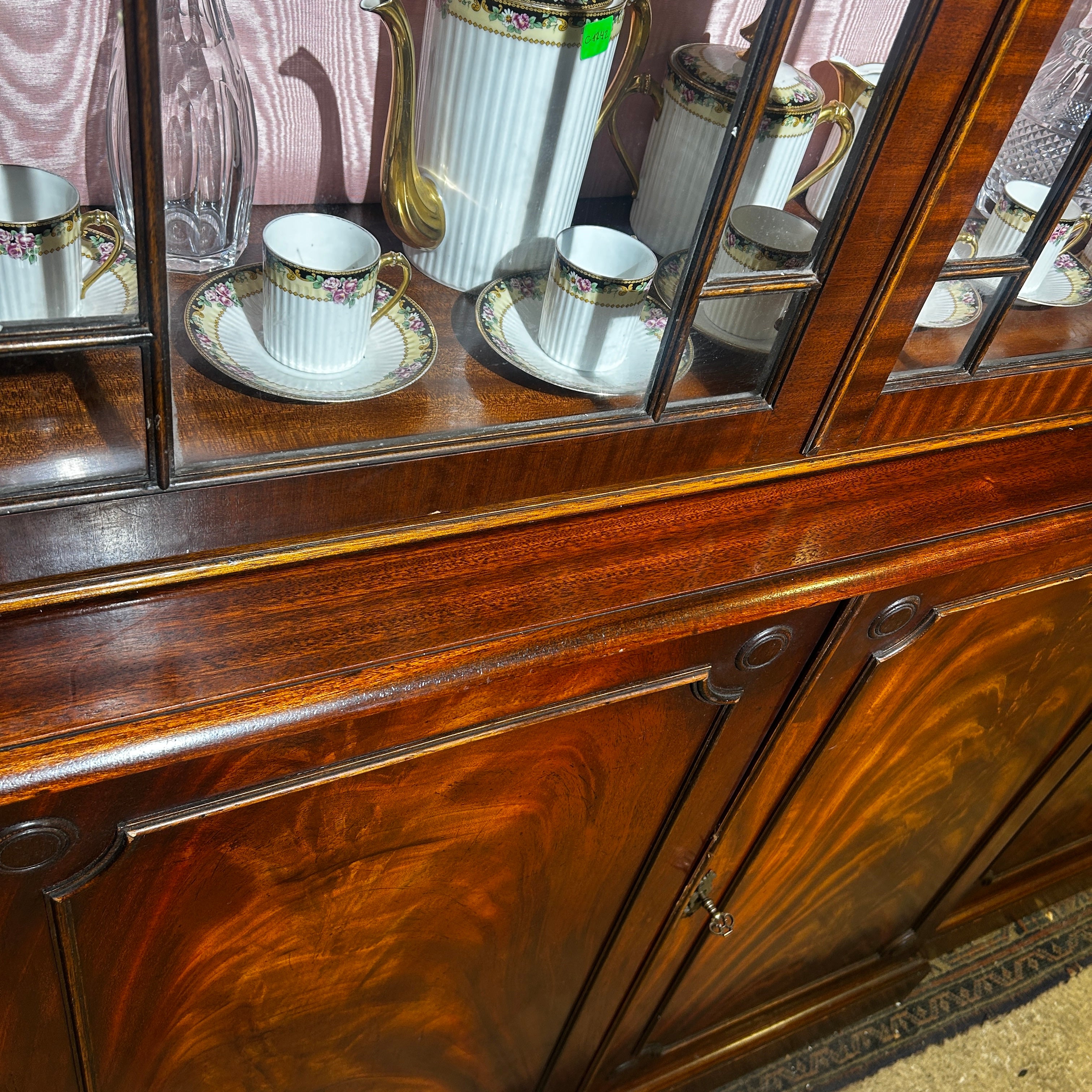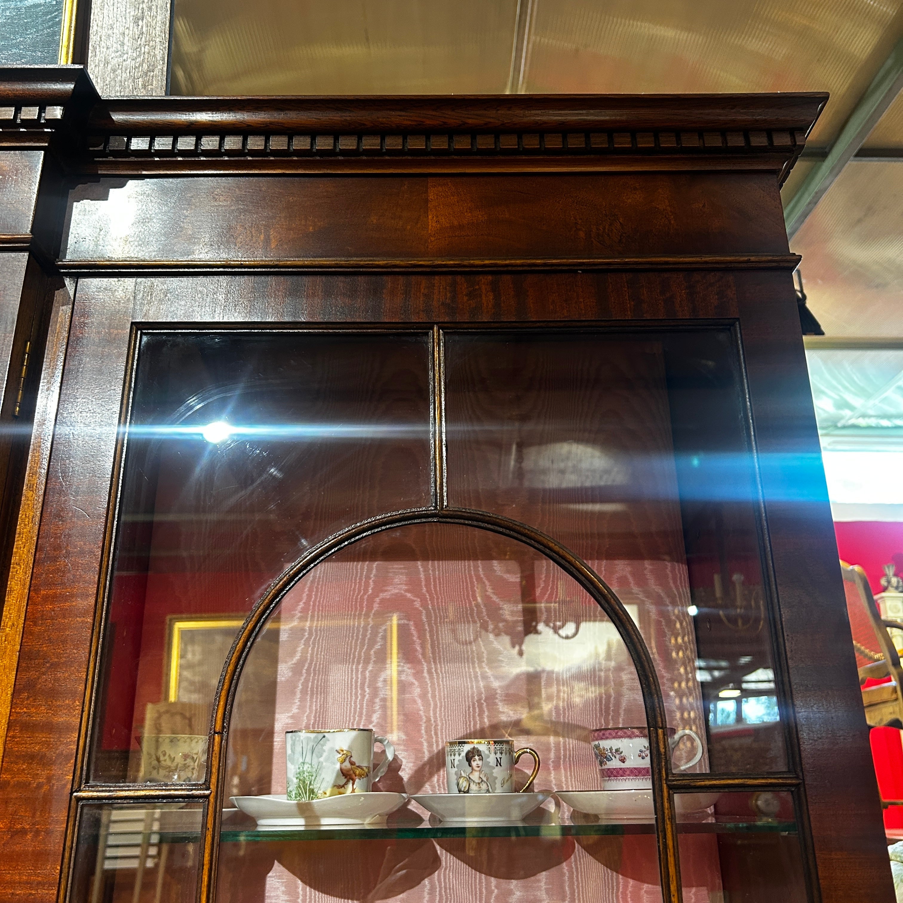 Precioso mueble contemporáneo de los años 80s-90s, fabricado en Inglaterra de caoba y raíz de caoba. Es un muy mueble muy versátil,ya que puede ser utilizado como librero,vitrina o alacena. La vitrina superior tiene cuatro puertas de vidrio y el estante inferior tiene cuatro puertas de madera.