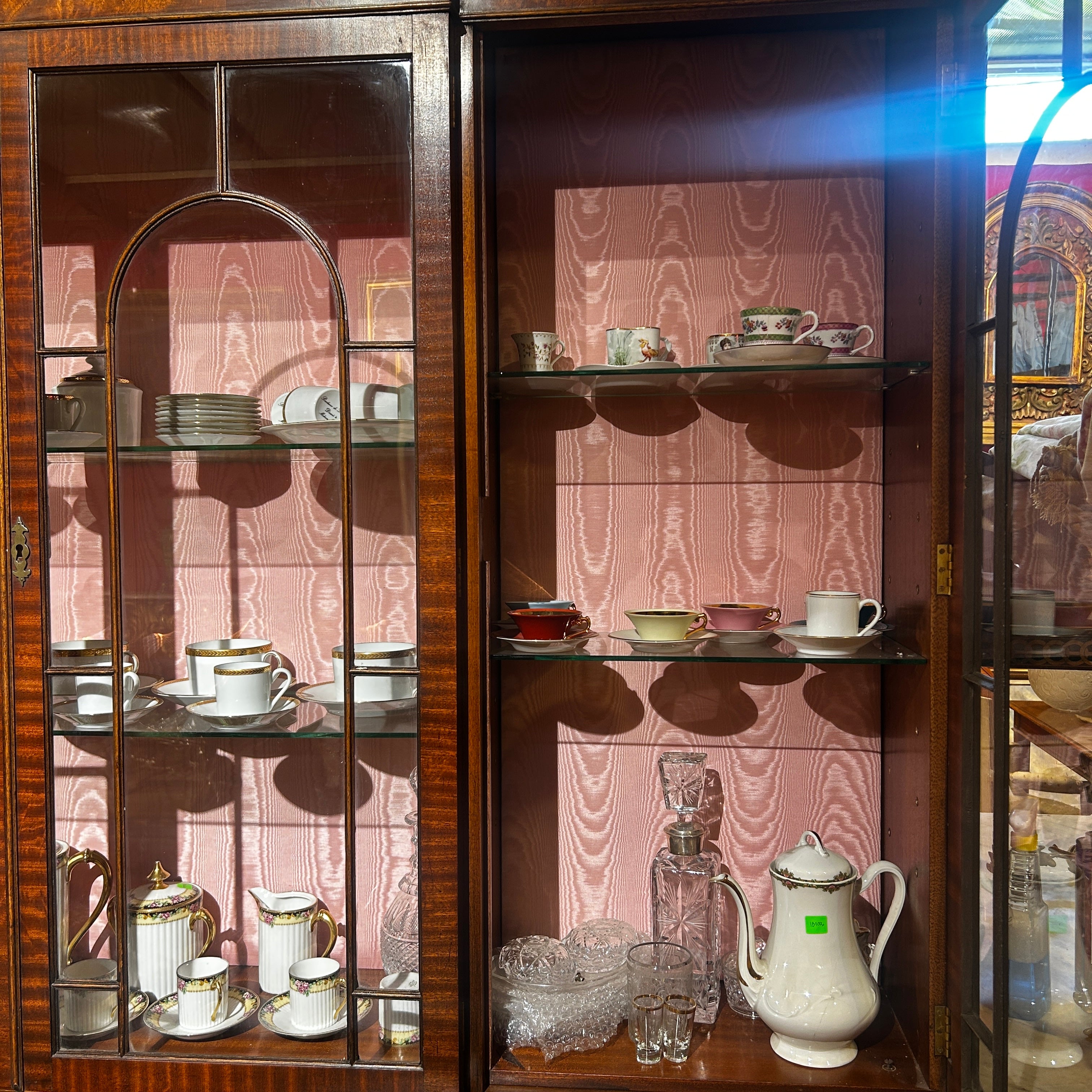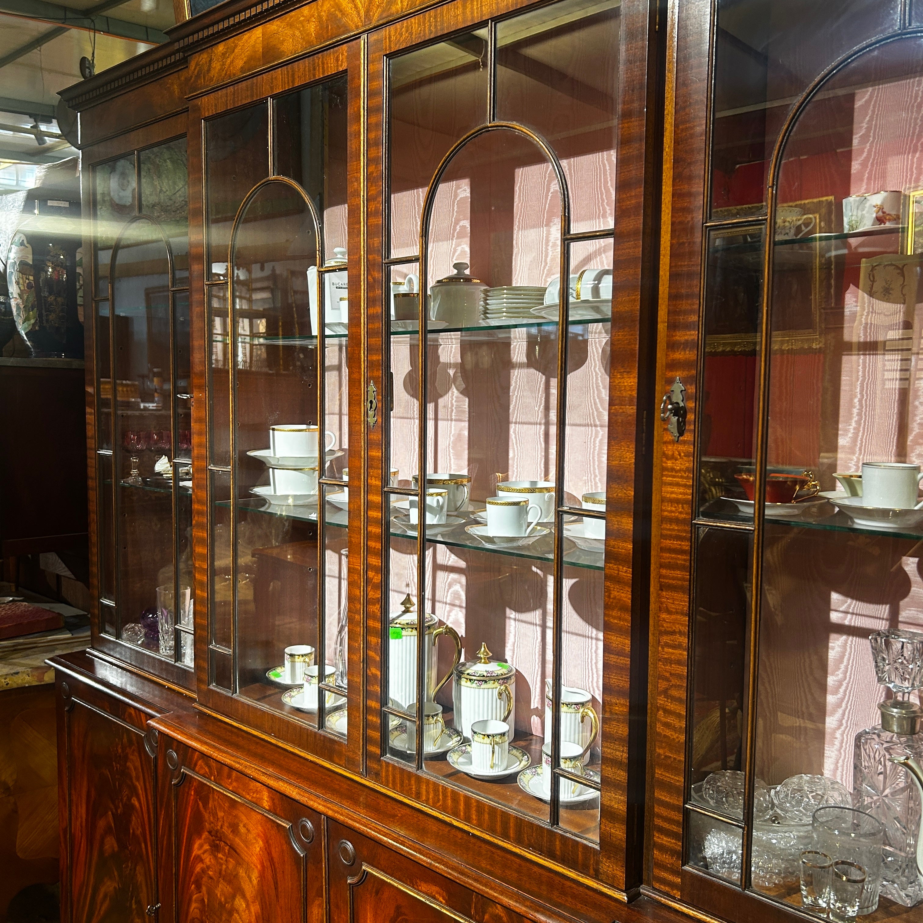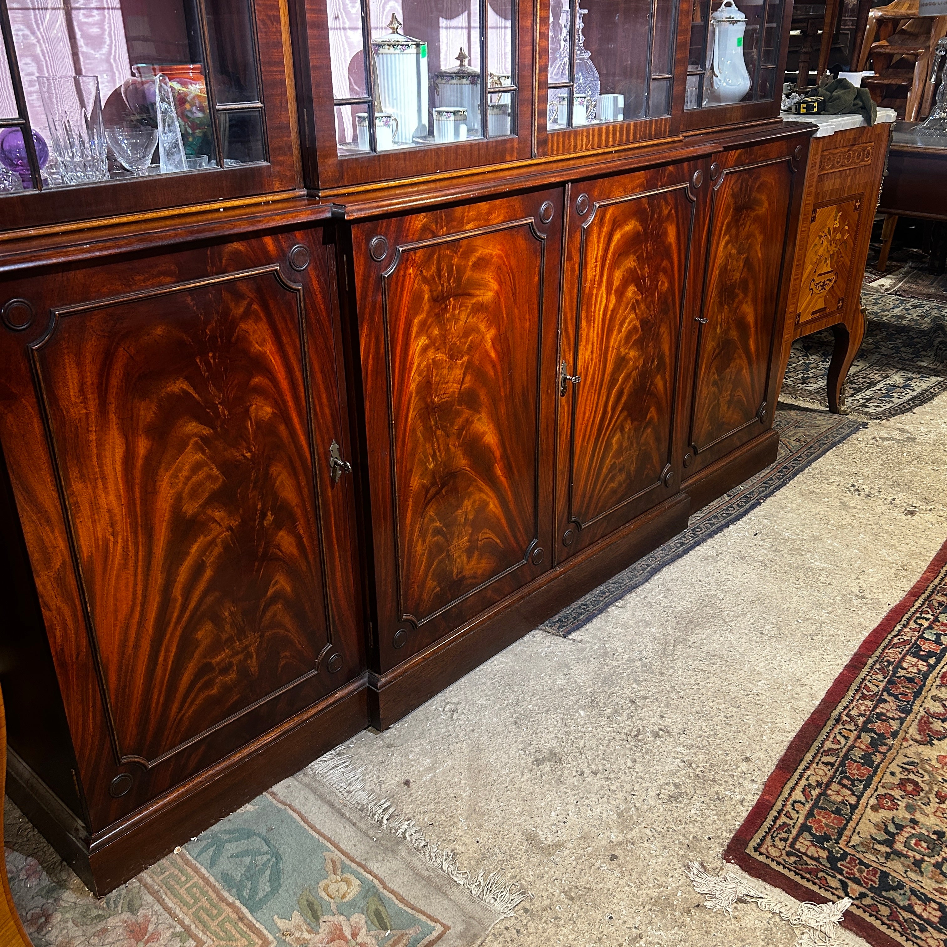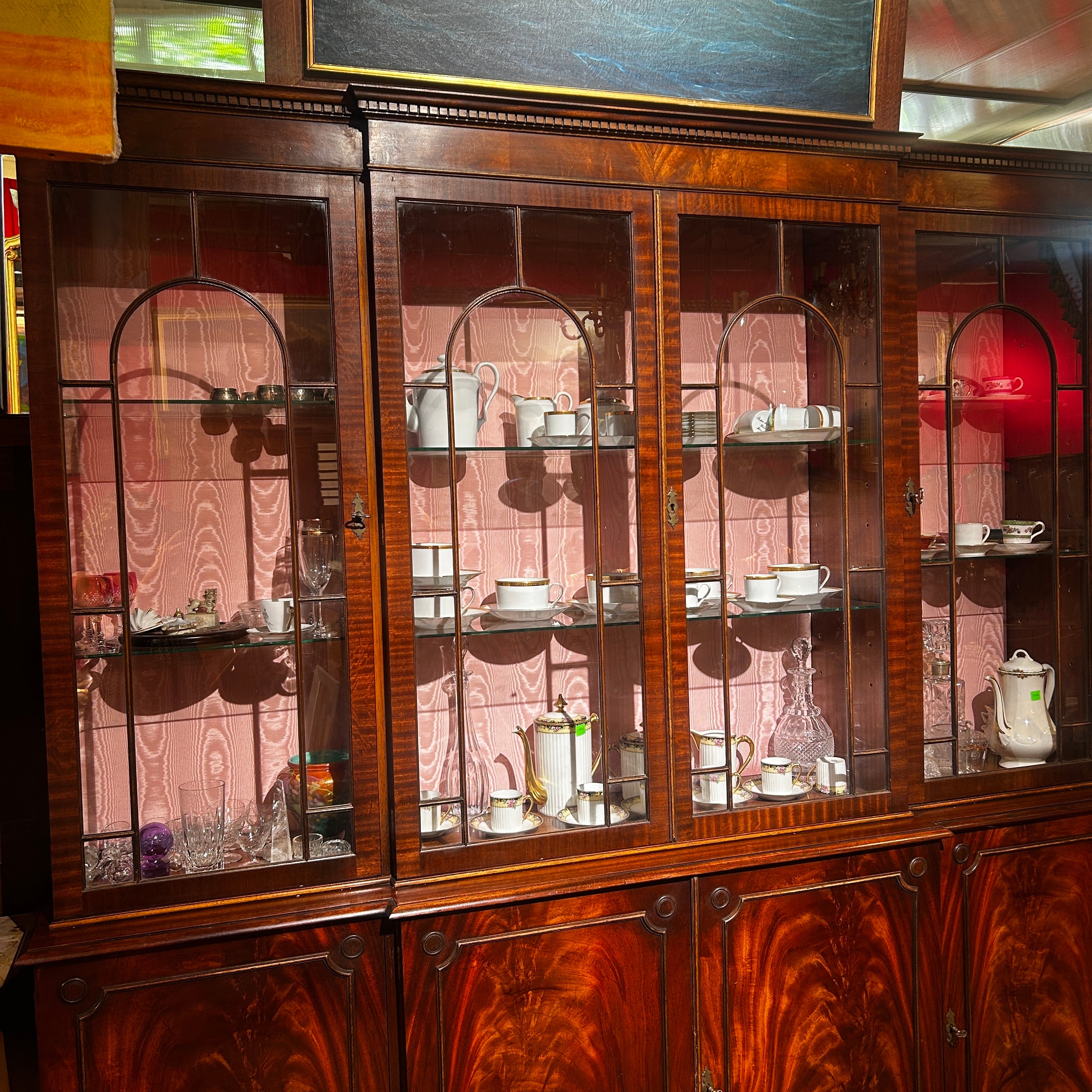 Precioso mueble contemporáneo de los años 80s-90s, fabricado en Inglaterra de caoba y raíz de caoba. Es un muy mueble muy versátil,ya que puede ser utilizado como librero,vitrina o alacena. La vitrina superior tiene cuatro puertas de vidrio y el estante inferior tiene cuatro puertas de madera.