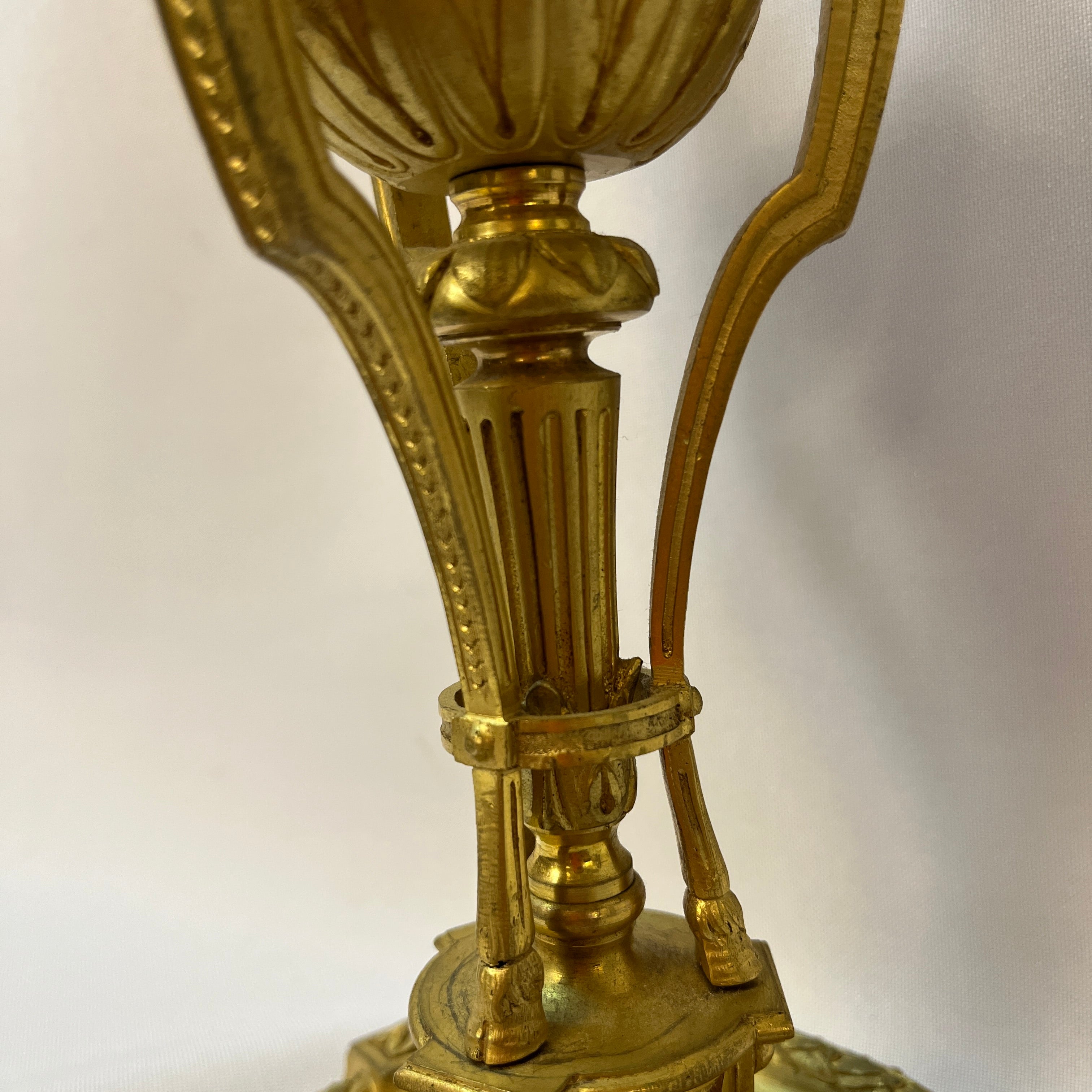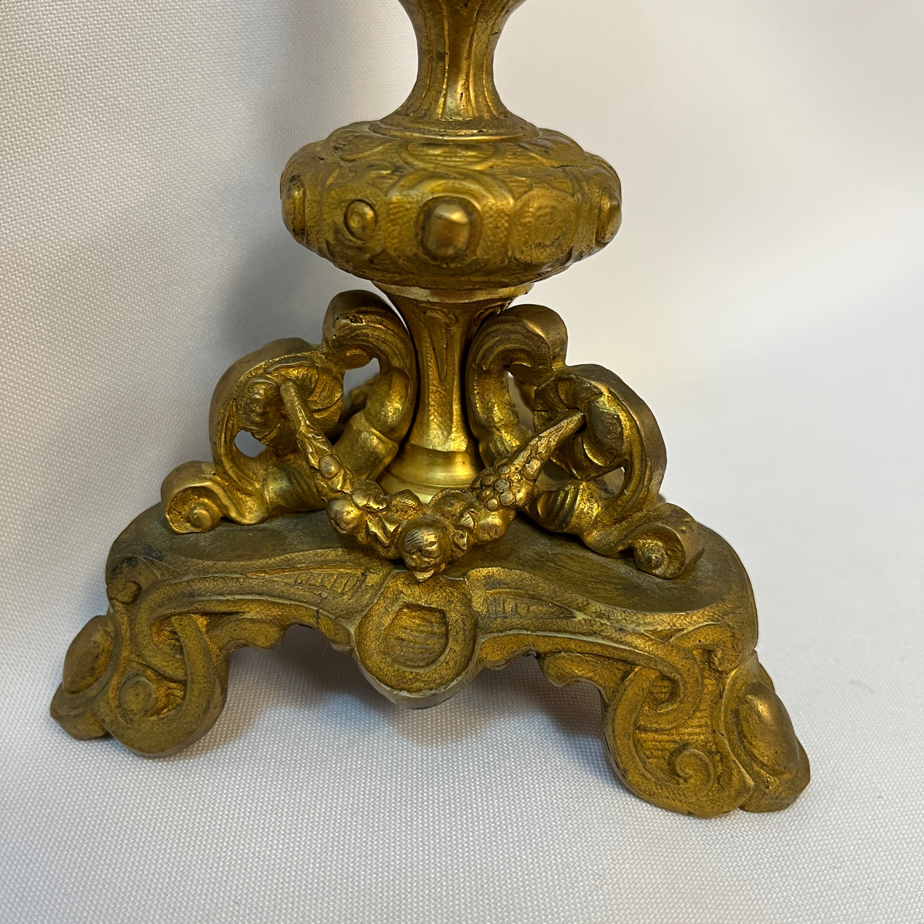 Radiante lámpara de bronce con una semi esfera de mármol blanco en su interior, coronada con pequeños bustos de querubines de bronce mirando al exterior. El trabajo detallista con el bronce, le otorga una belleza especial, ideal para tenerla como decoración o también utilizarla. Circa mediados s.XX