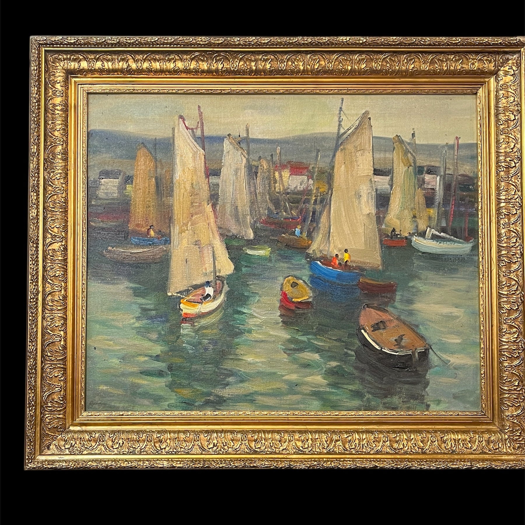 Arturo Pacheco Altamirano - Óleo sobre tela ‘Veleros en el muelle’