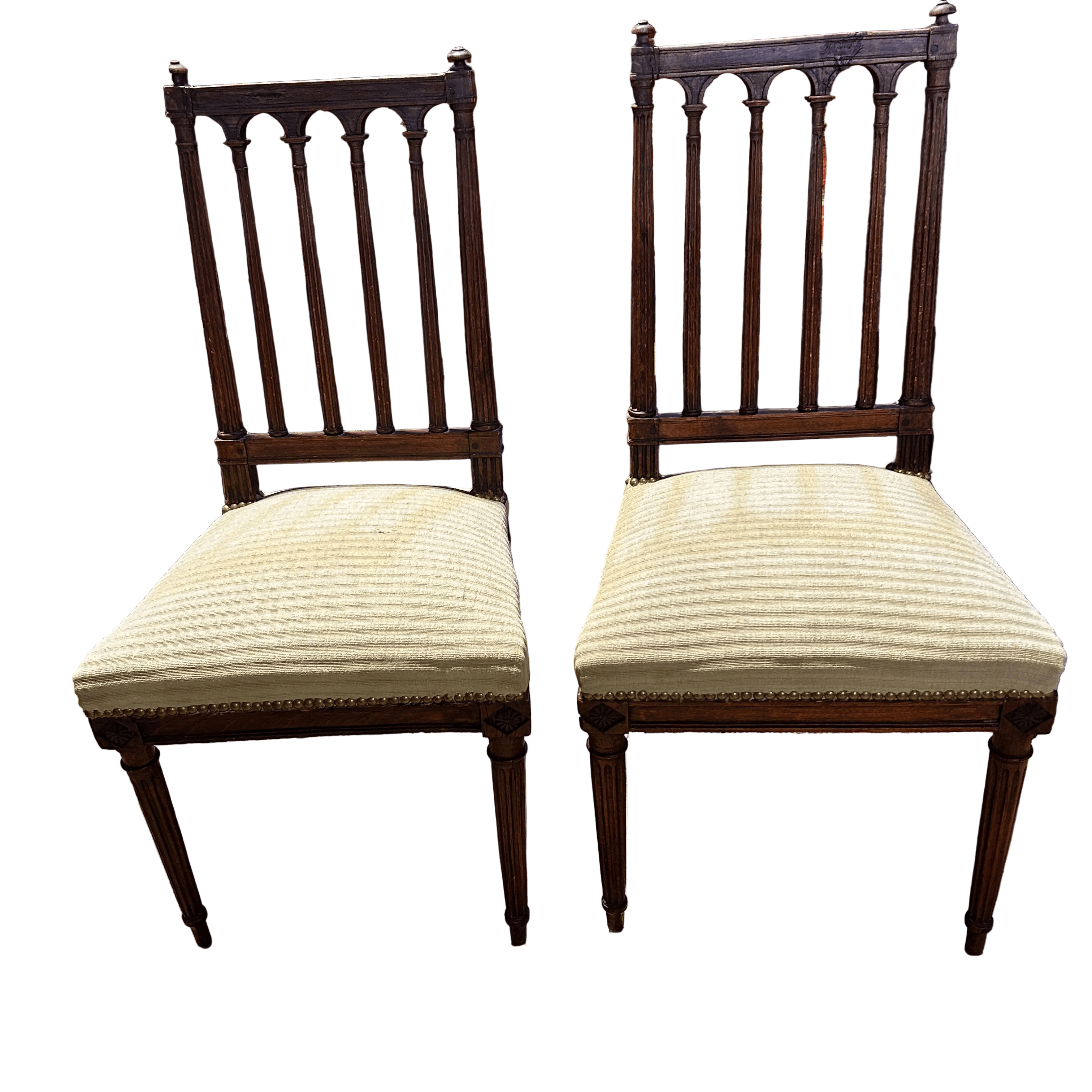 Pareja de sillas francesas estilo Luís XVI de madera de nogal de principios del siglo XX