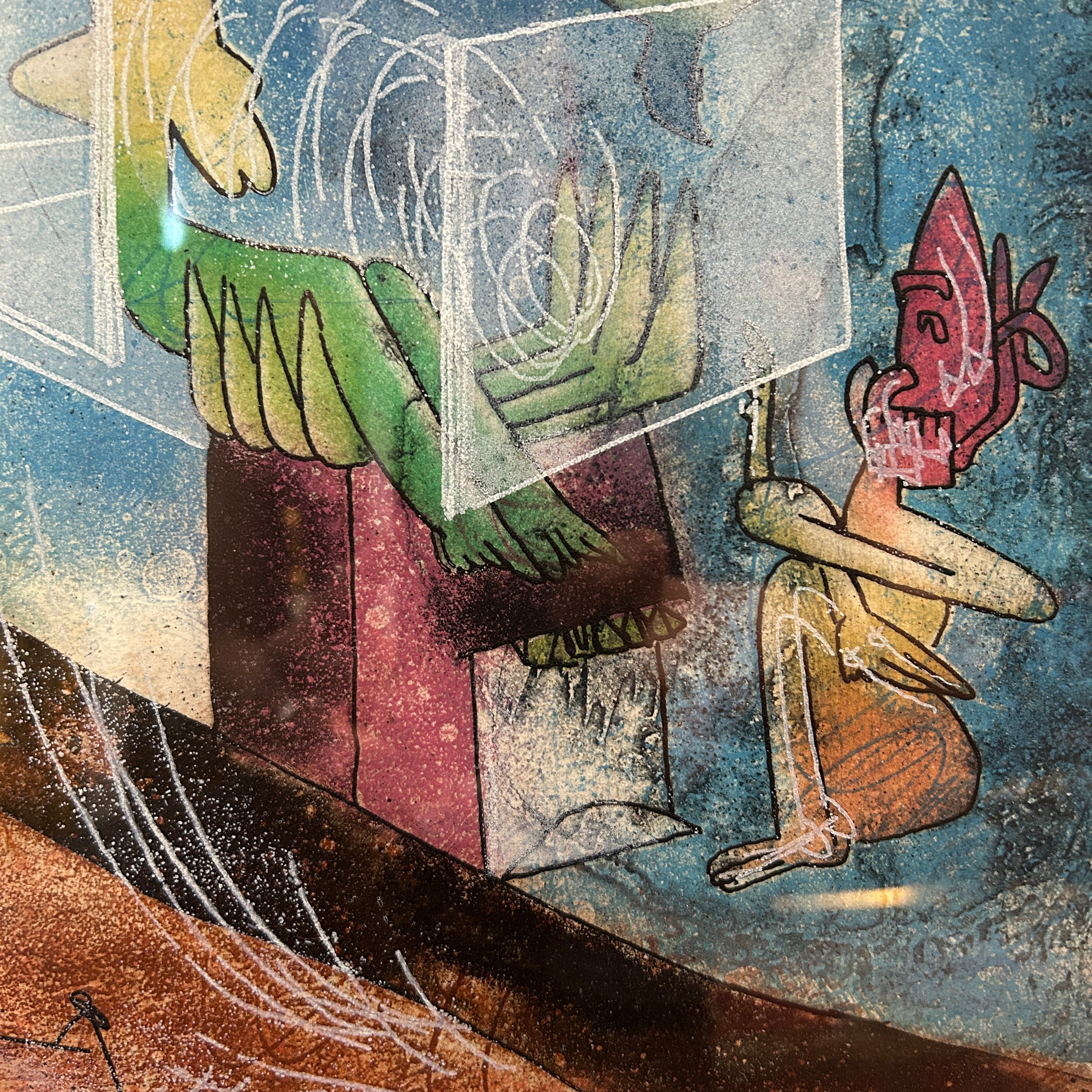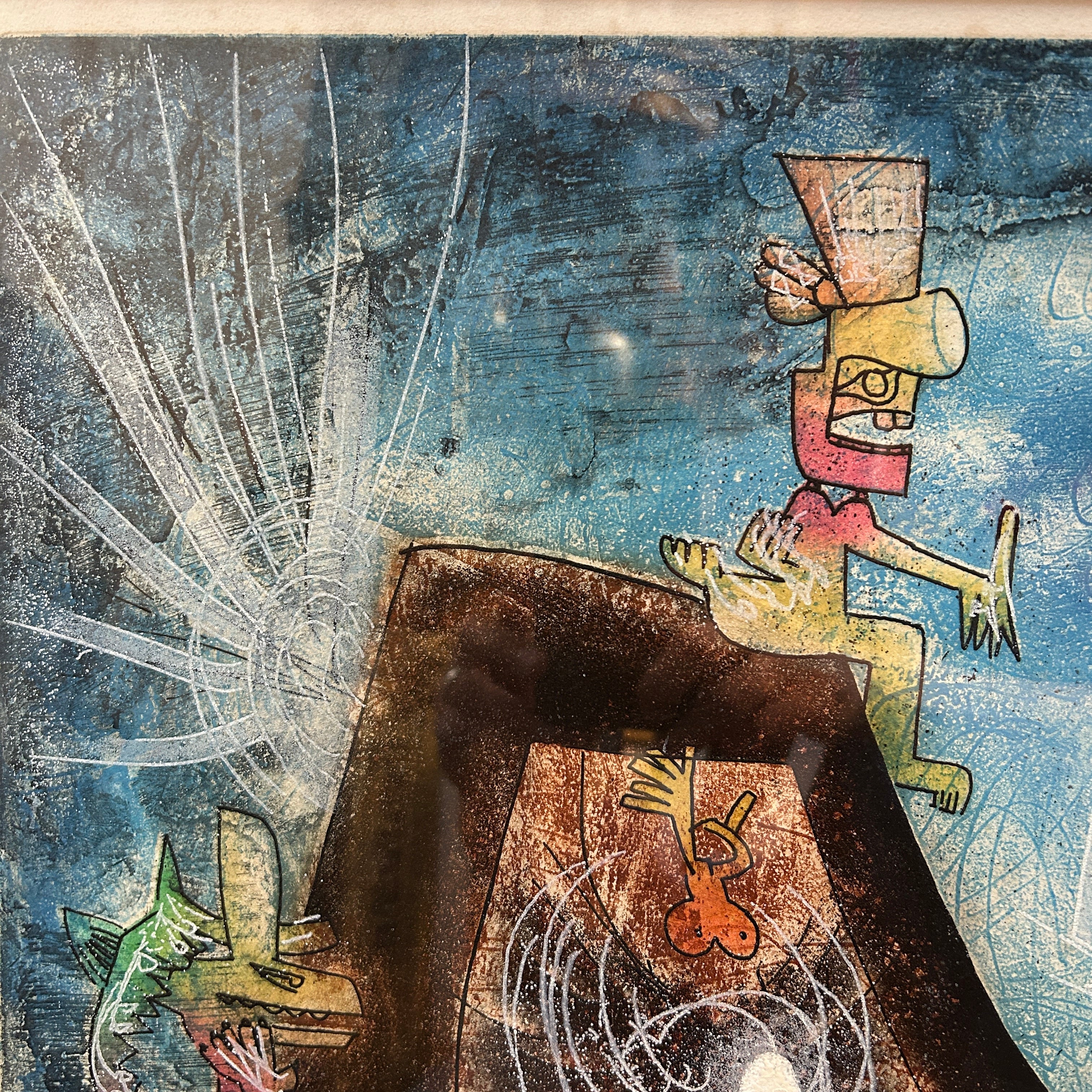 Grabado sobre papel de algodón, firmado y seriado, del reconocido artista chileno Roberto Matta. La obra, creada en 1983 y titulada ‘The Oppressors Les Oprime’, está hecha en técnica aguafuerte y aguatinta.