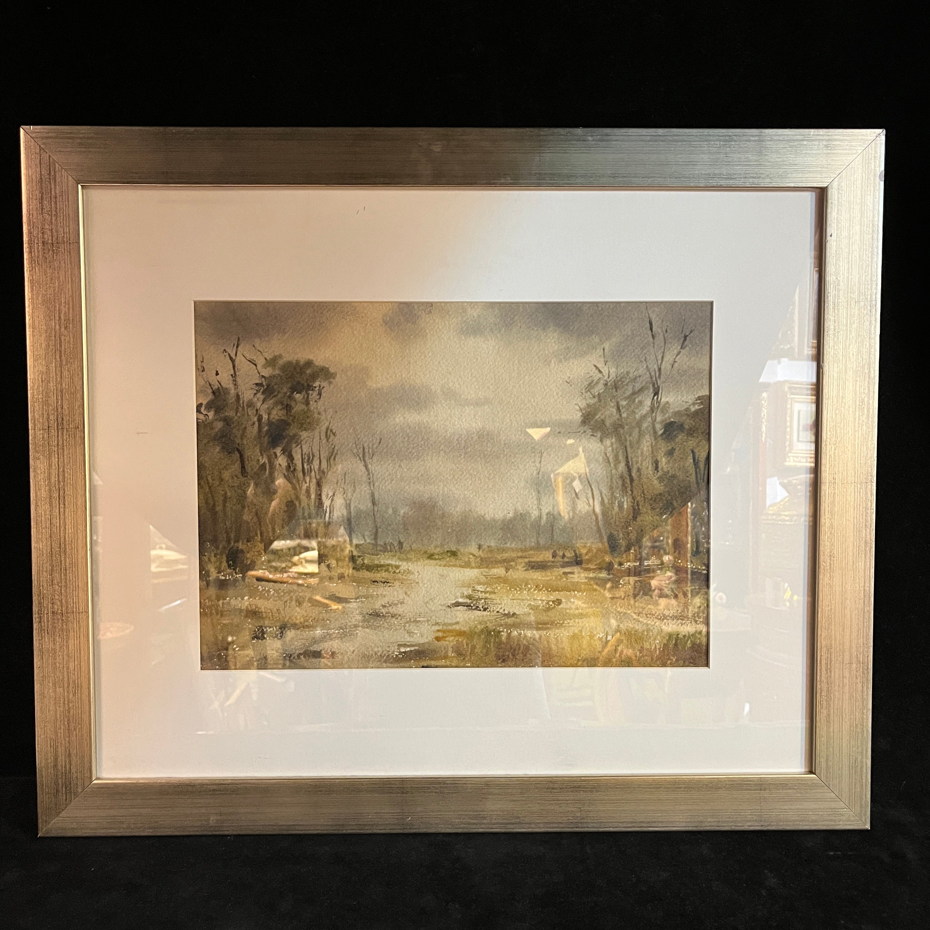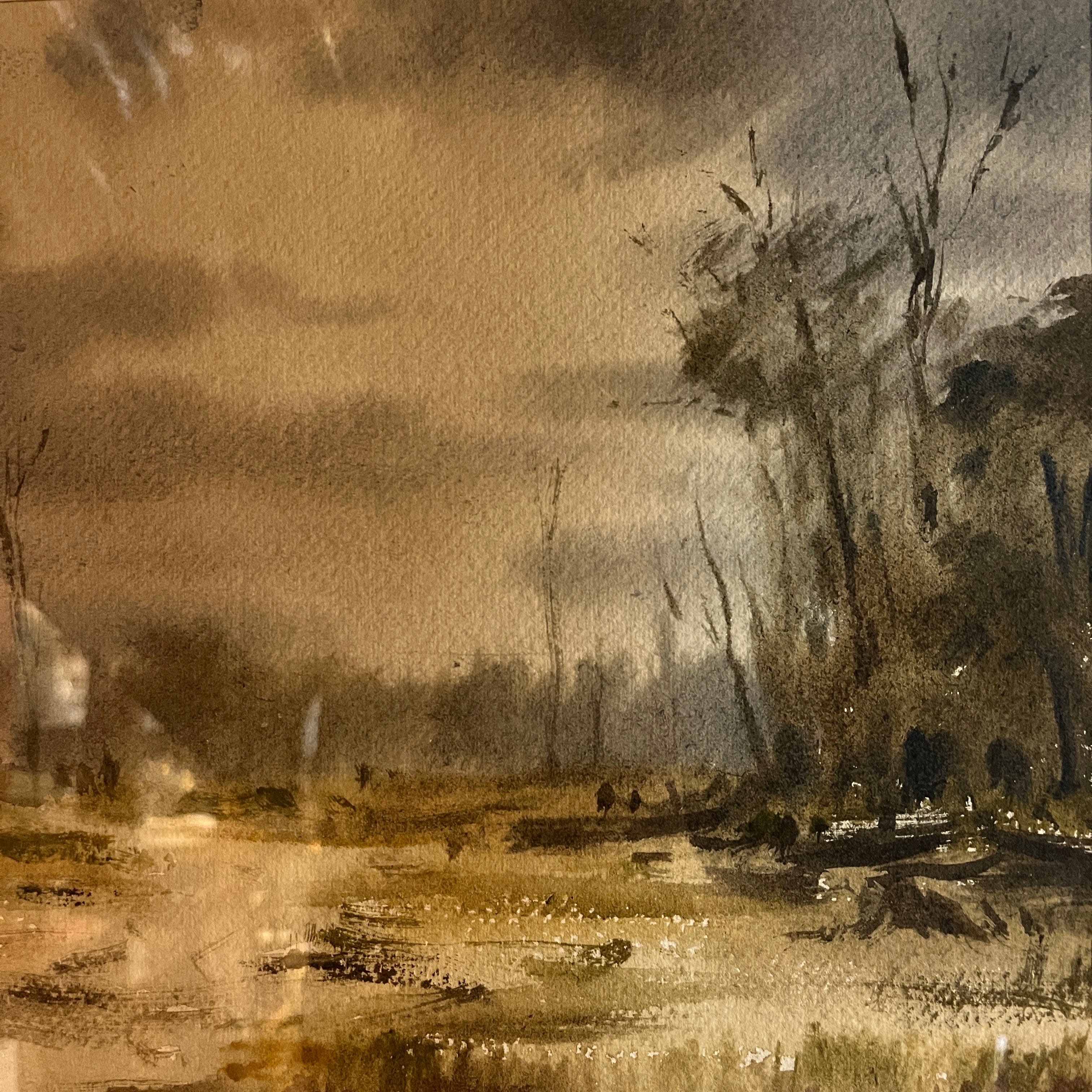 Hardy Wistuba - Acuarela sobre papel 'Paisaje cielo cargado'
