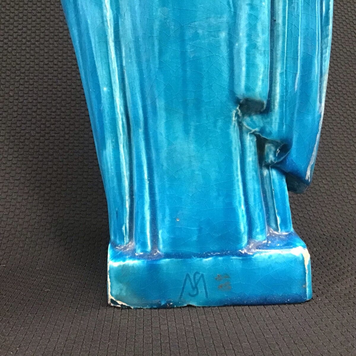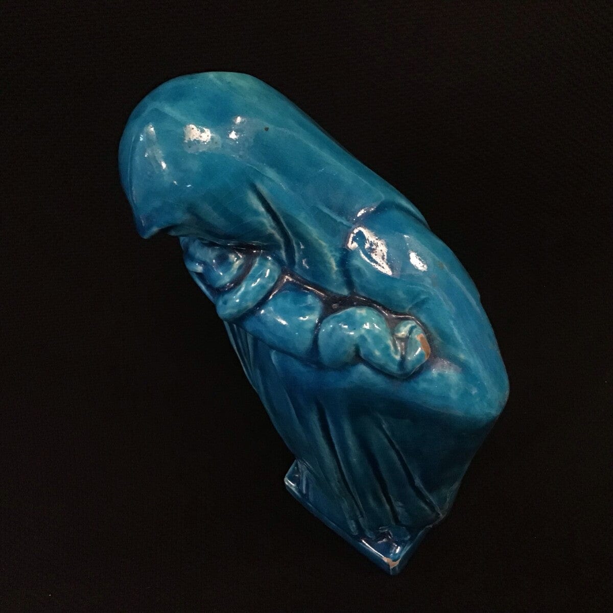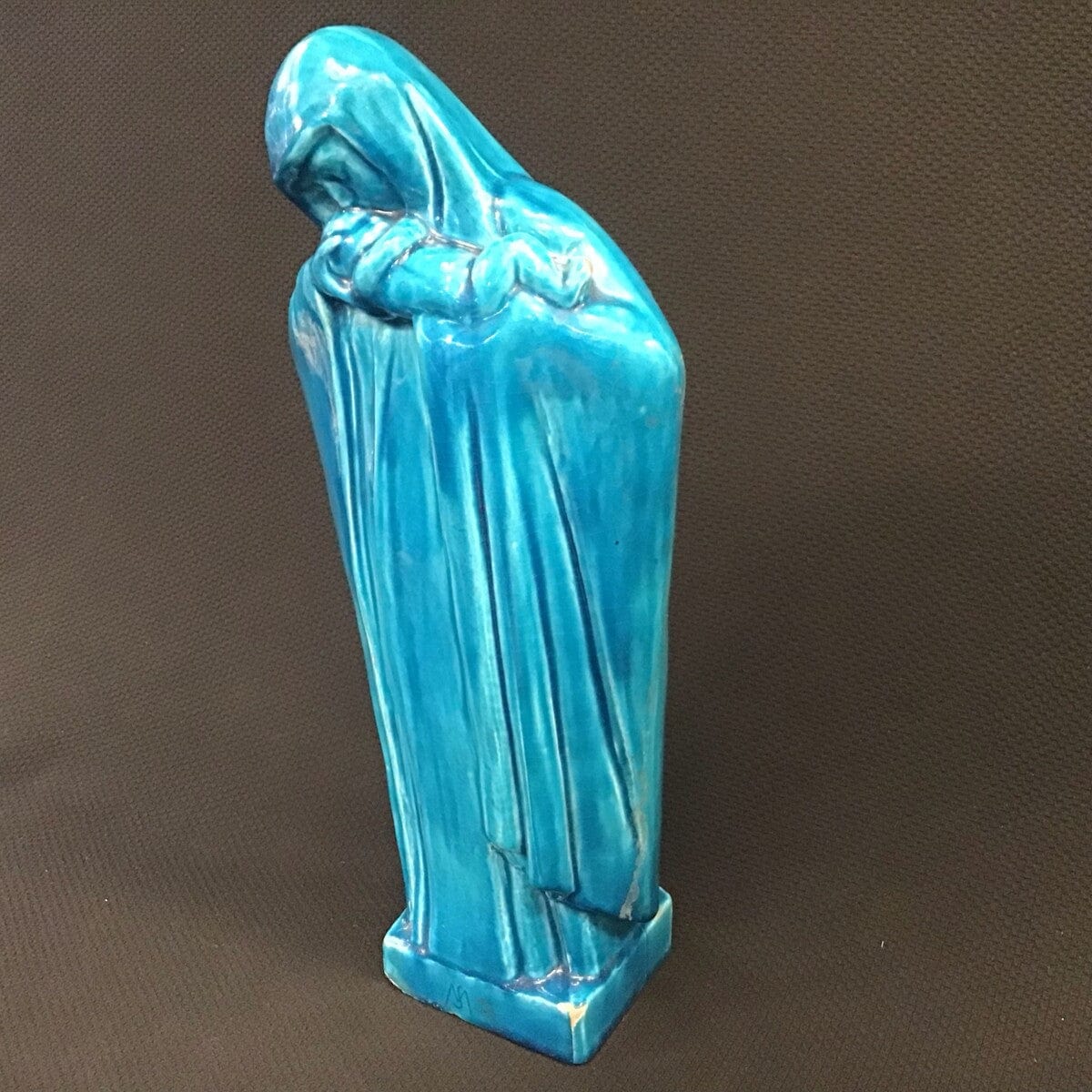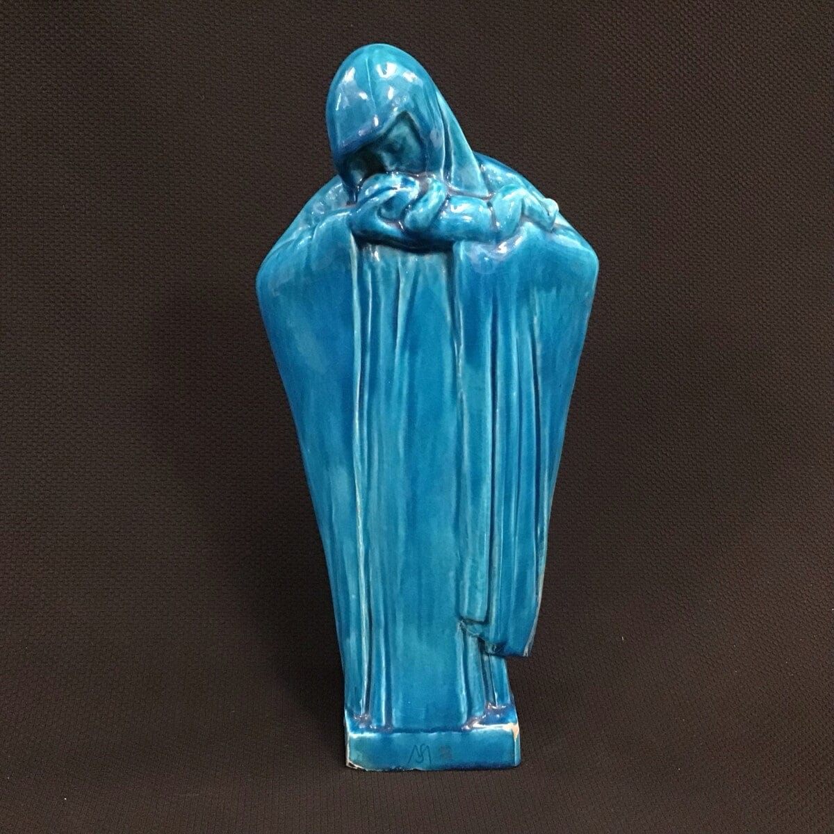 Figura de virgen o madre en loza color turquesa de origen francés.