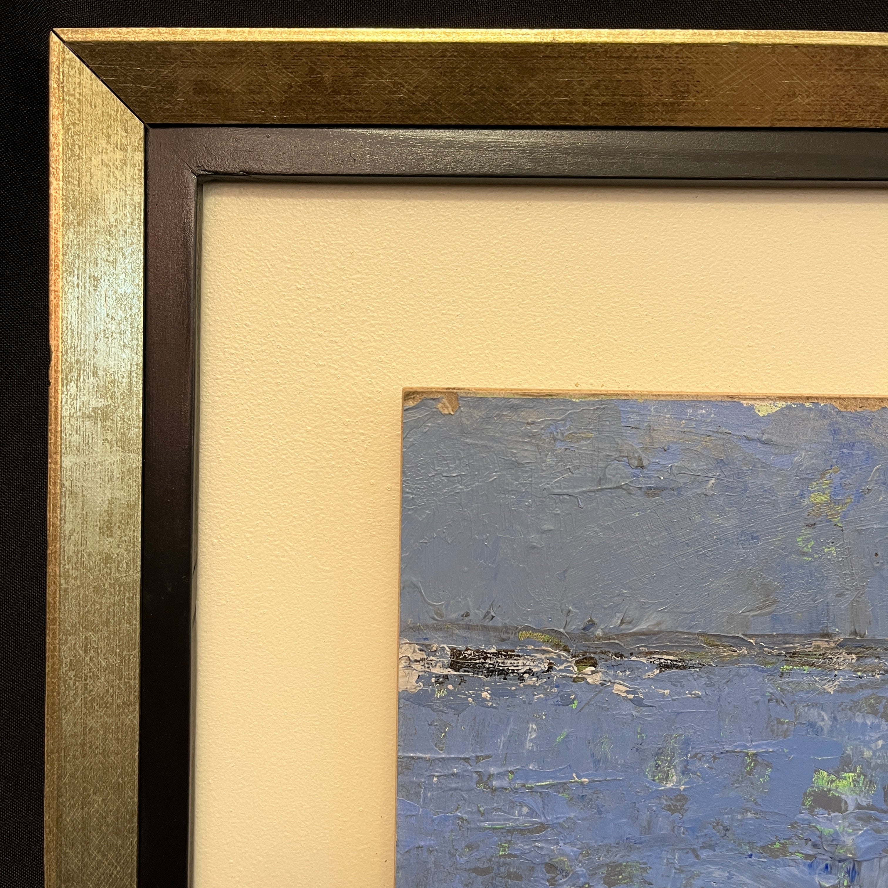 Esta obra del pintor chileno contemporáneo, Vittorio Queirolo, es una pieza especial ya que, el trabajo del artista se caracteriza por sus bodegones y naturaleza muerta, siendo ésta una excepción en la que se aventura a pintar un paisaje vivo, resultando una obra de colores profundos e intensos. Finalmente, es enmarcada en un marco plateado que complementa los colores fríos de la pintura.
