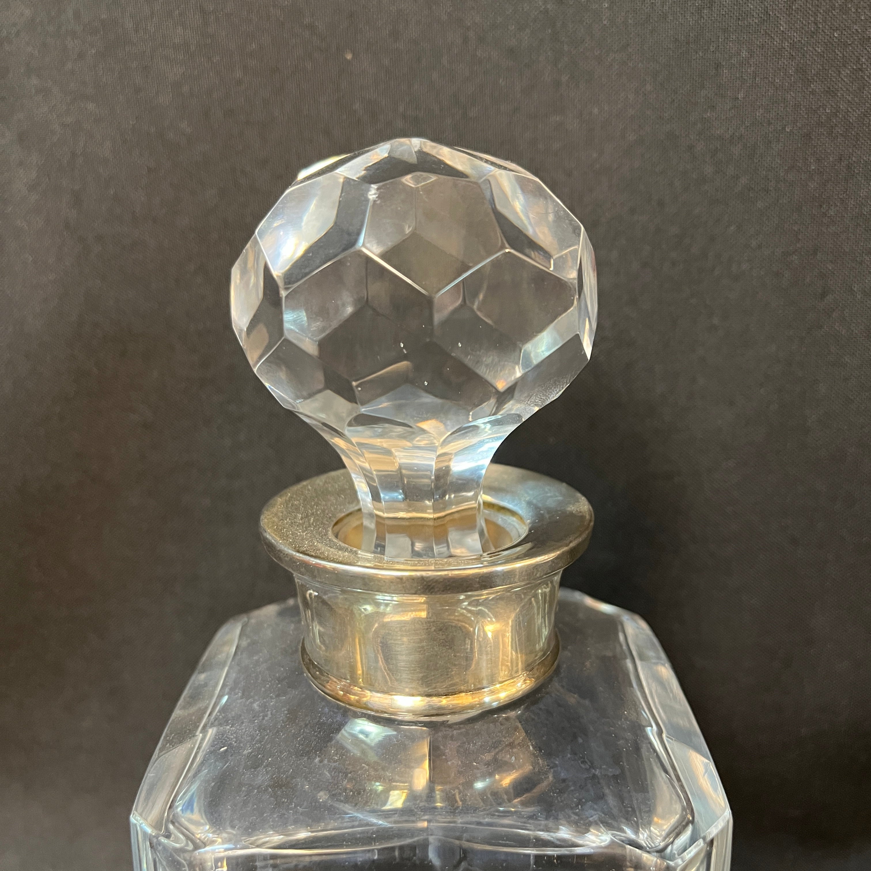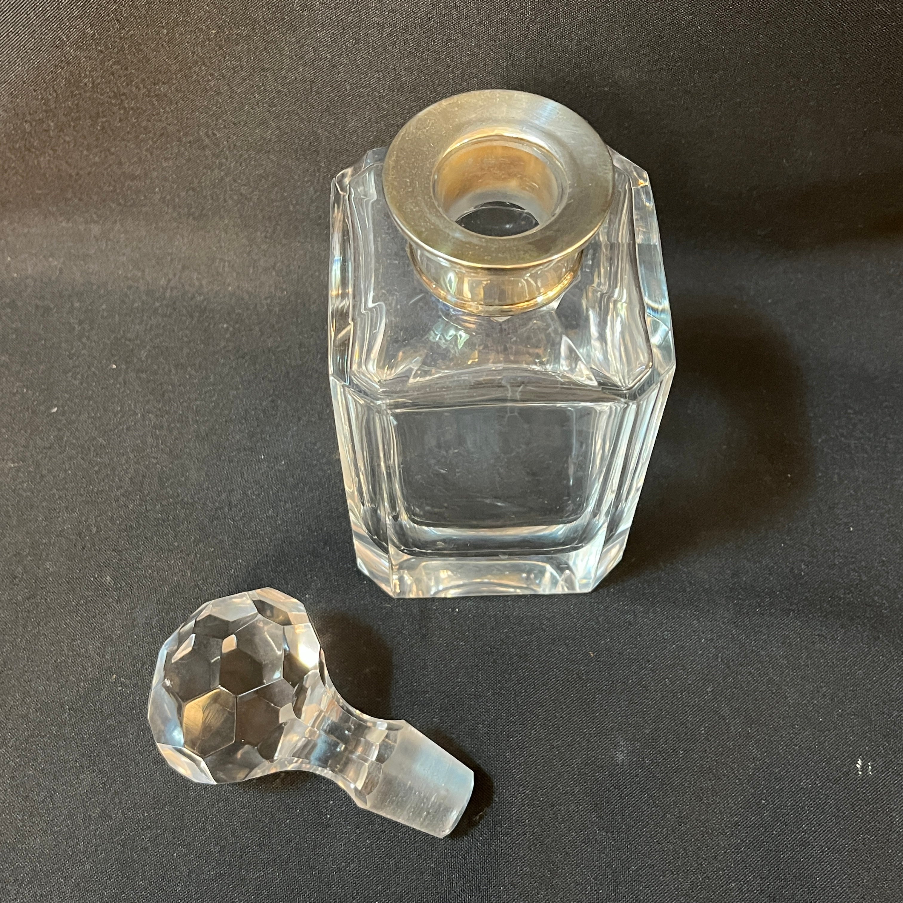 Botella de whiskey de cristal y plaqué tapa con corte geométrico