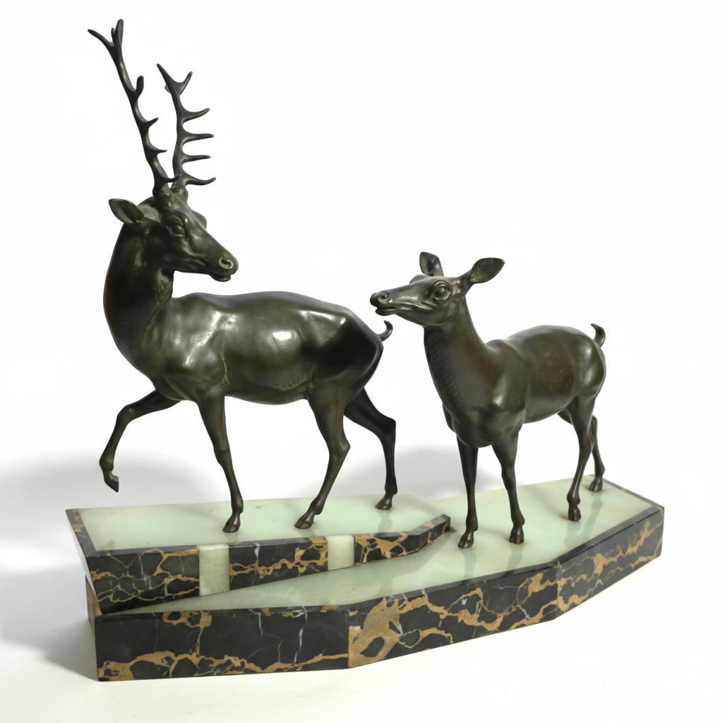 Prosper Lecourtier – “Ciervo y cierva” escultura