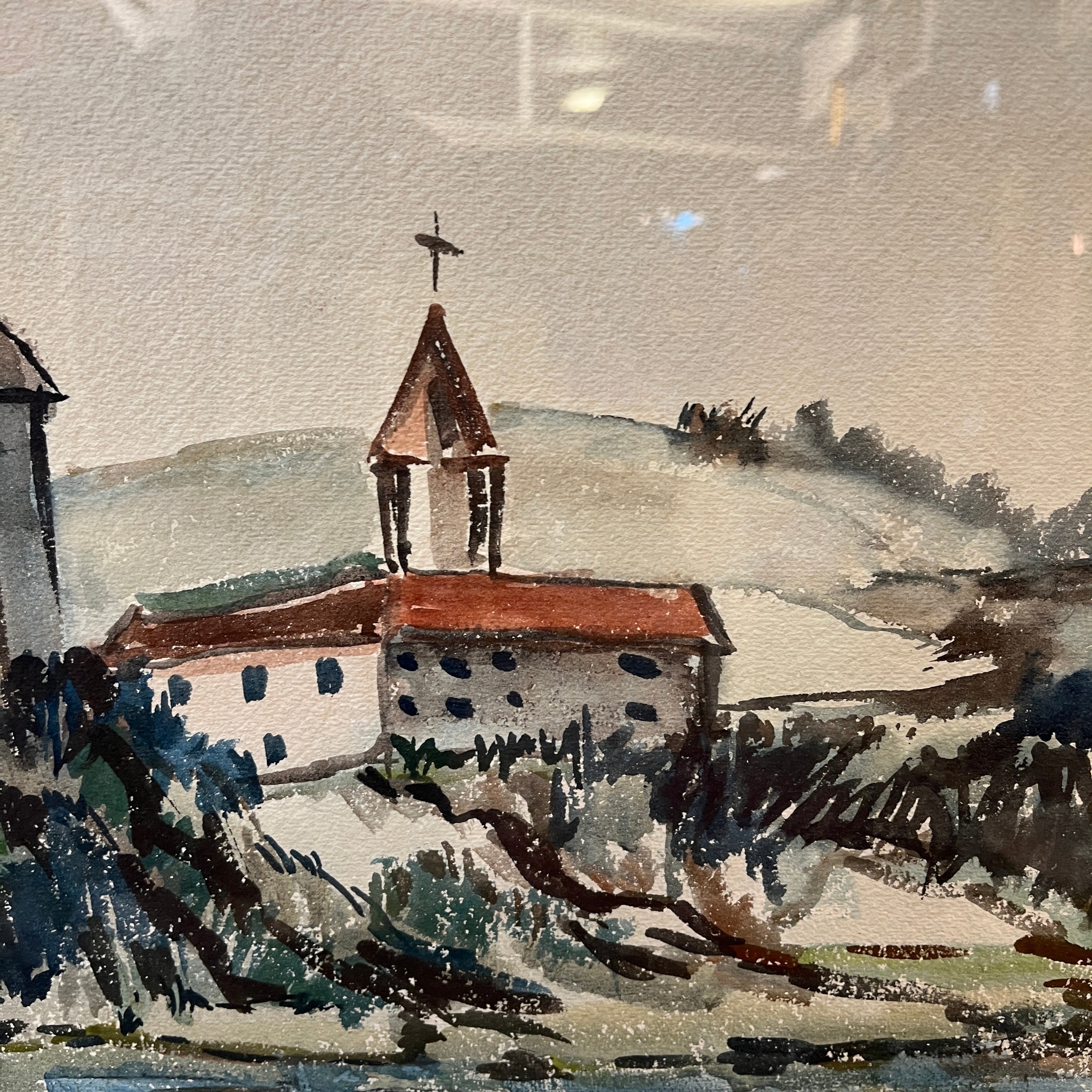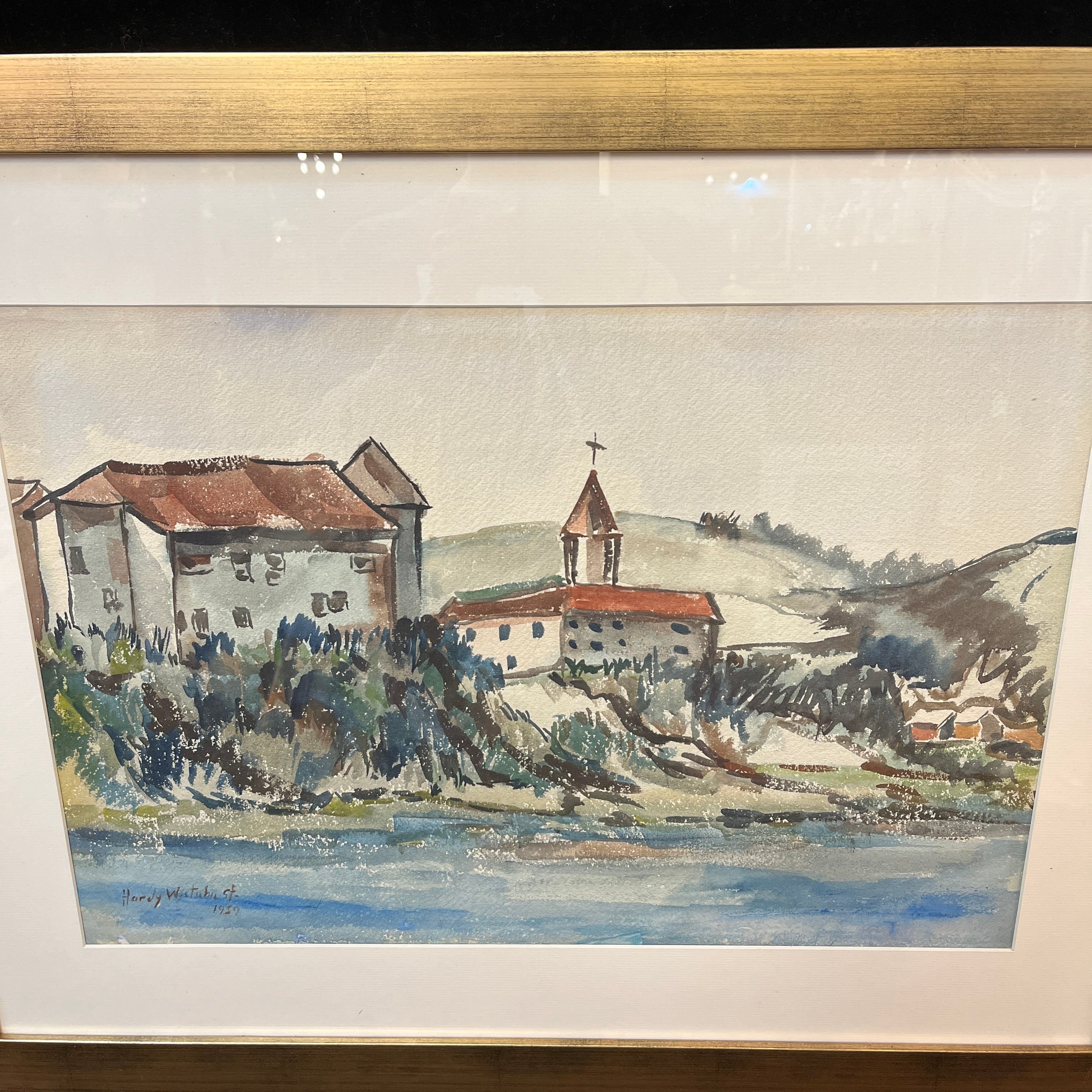 Hardy Wistuba - Aquarelle sur papier « Église sur la côte »