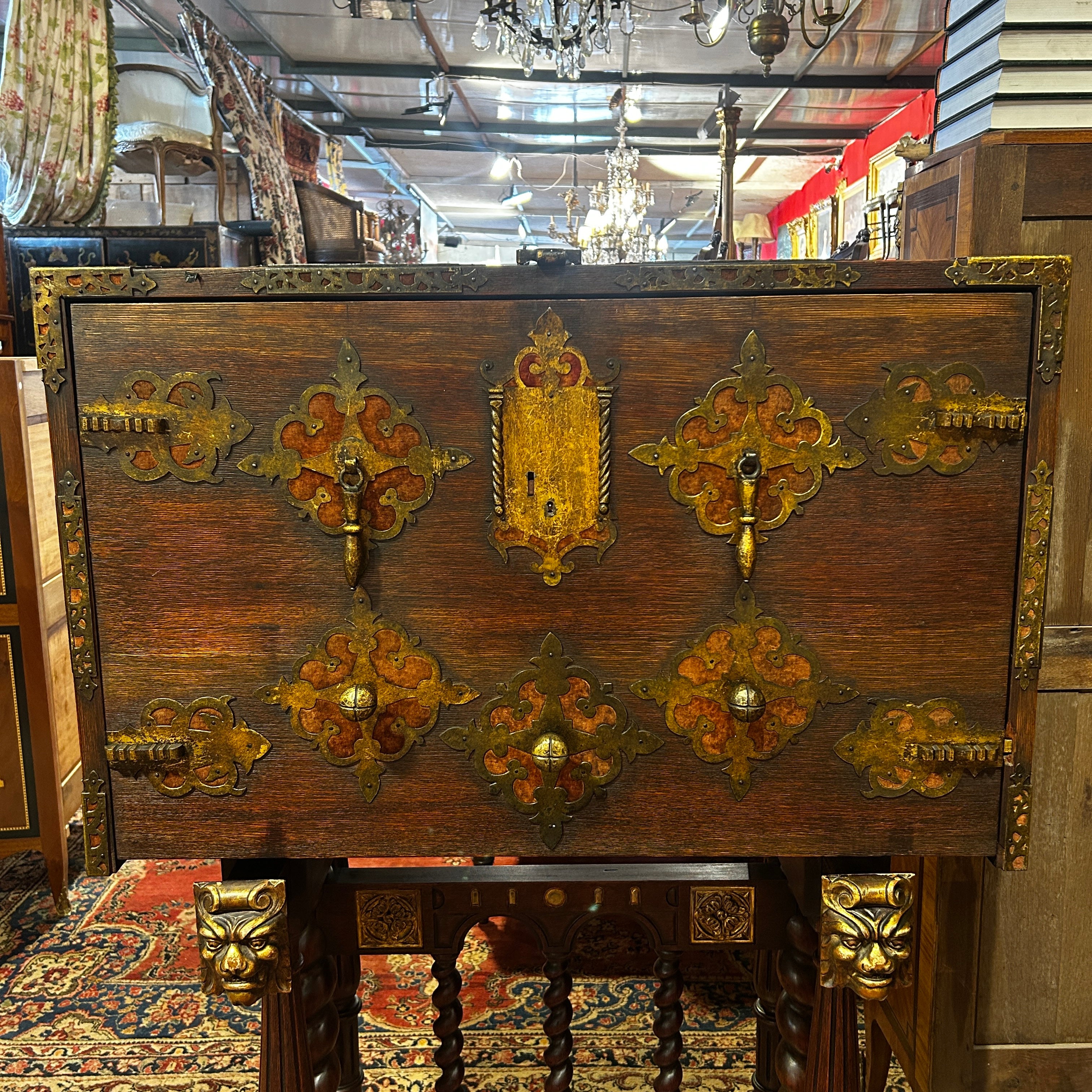Impresionante Bargueño español de madera de nogal del siglo XIX, proveniente de la ciudad de Bargas.