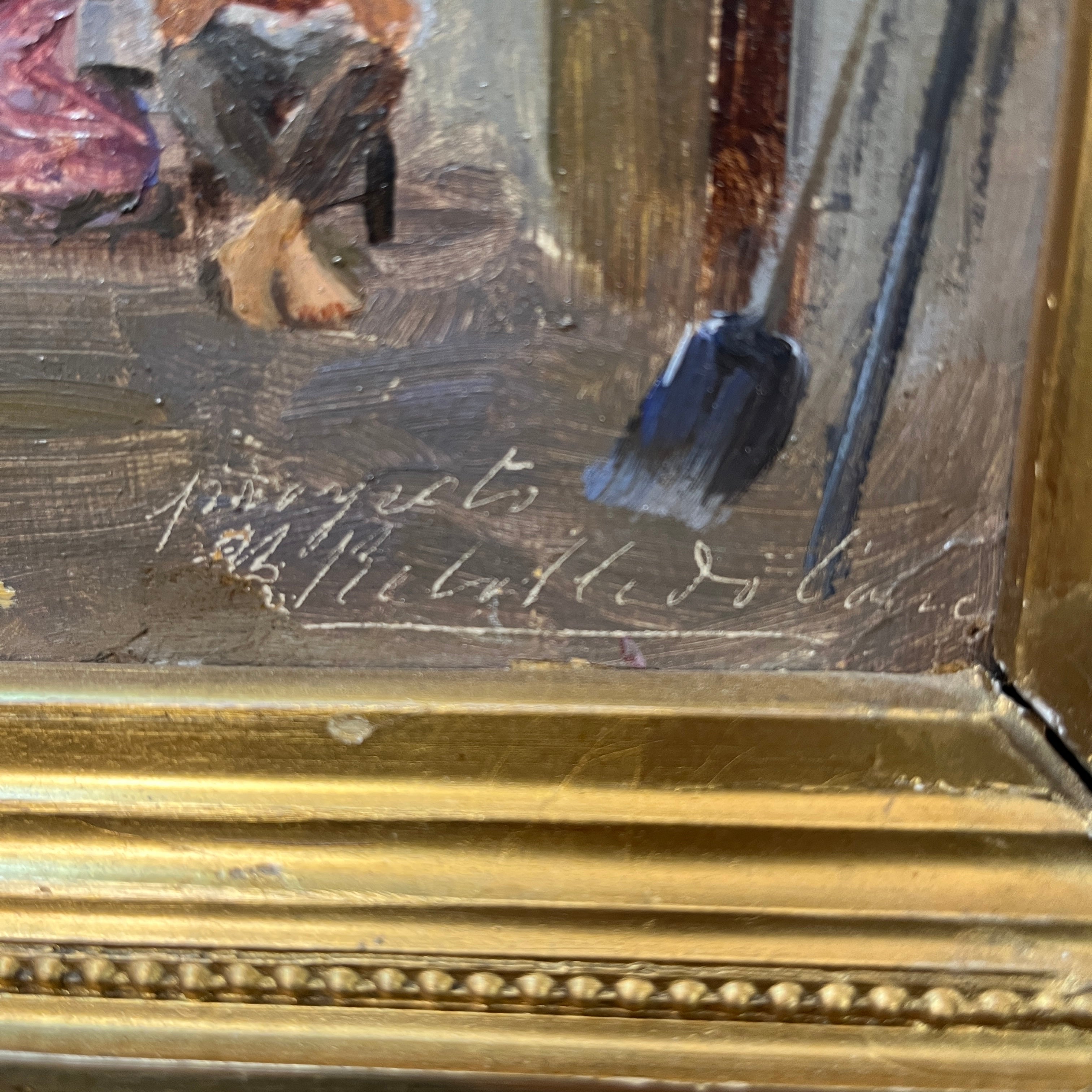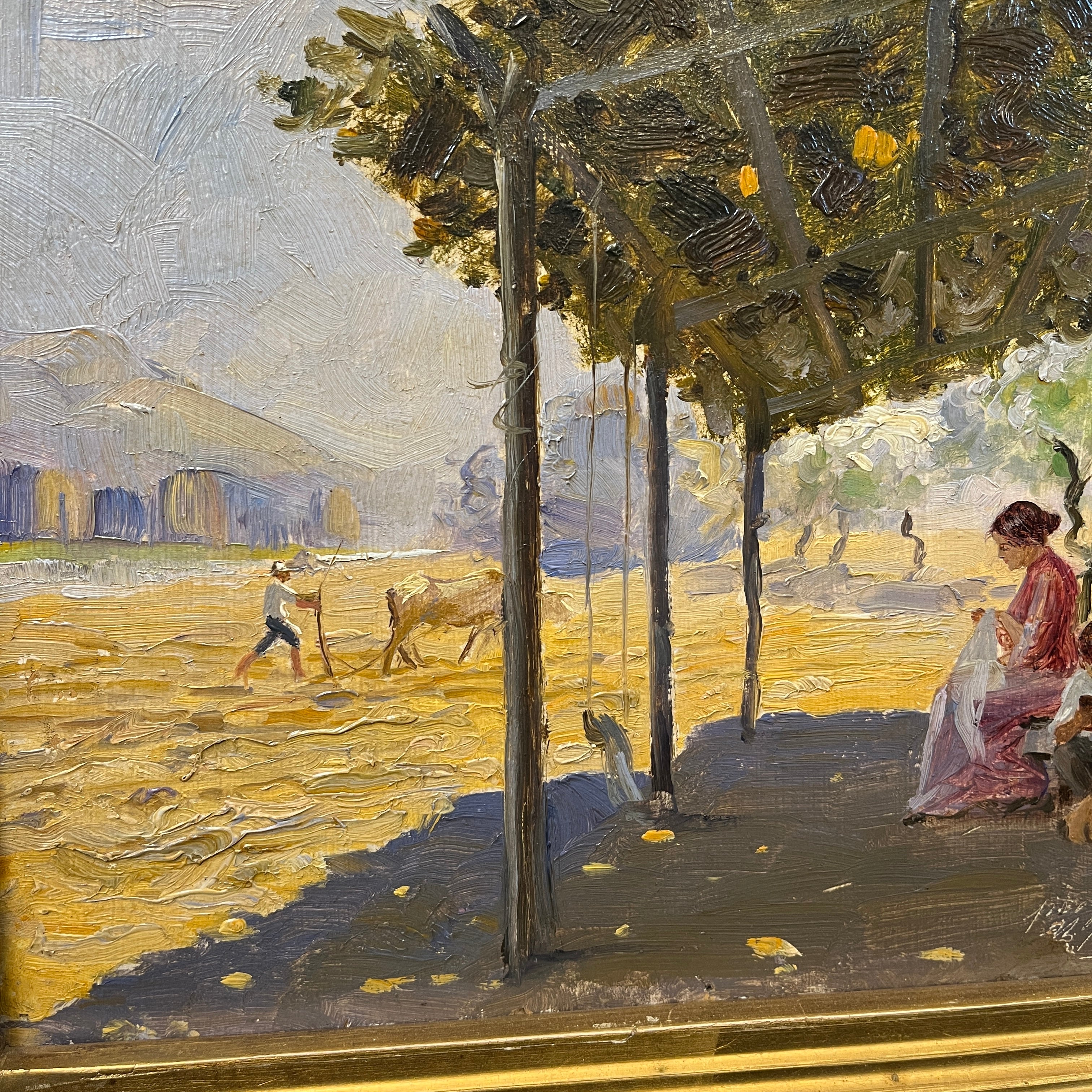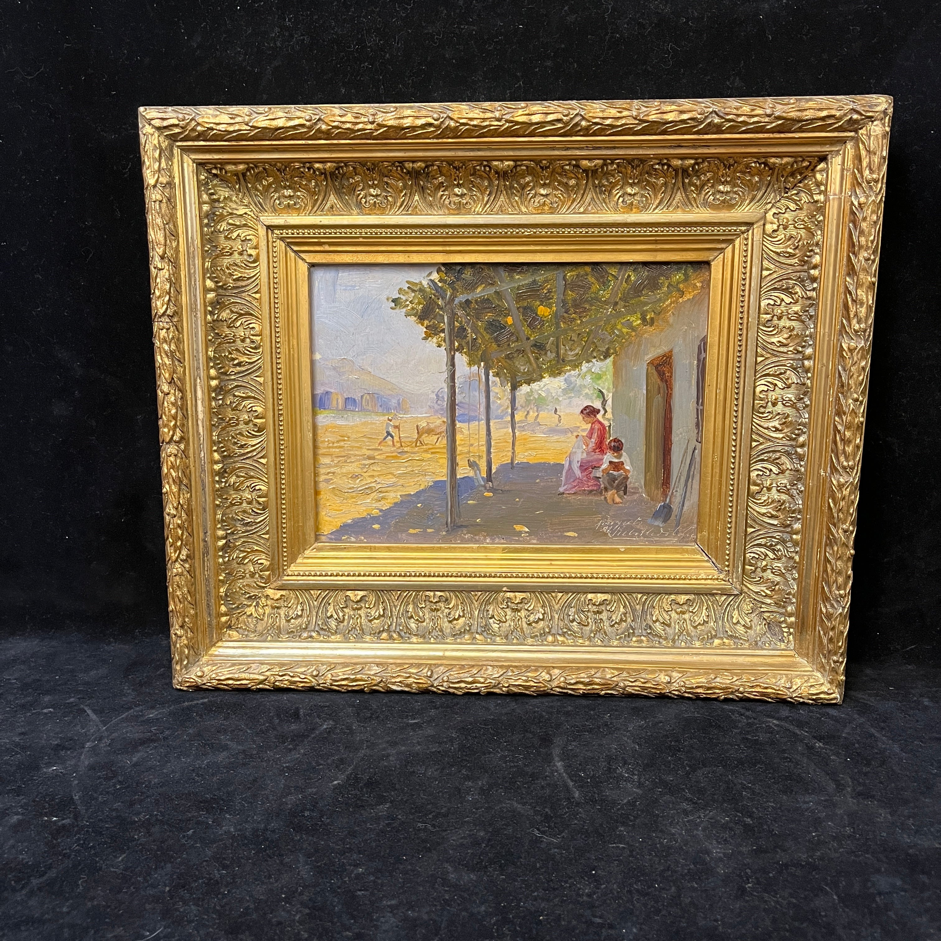 Benito Rebolledo - Óleo sobre cartón ‘Tarde bajo la sombra’