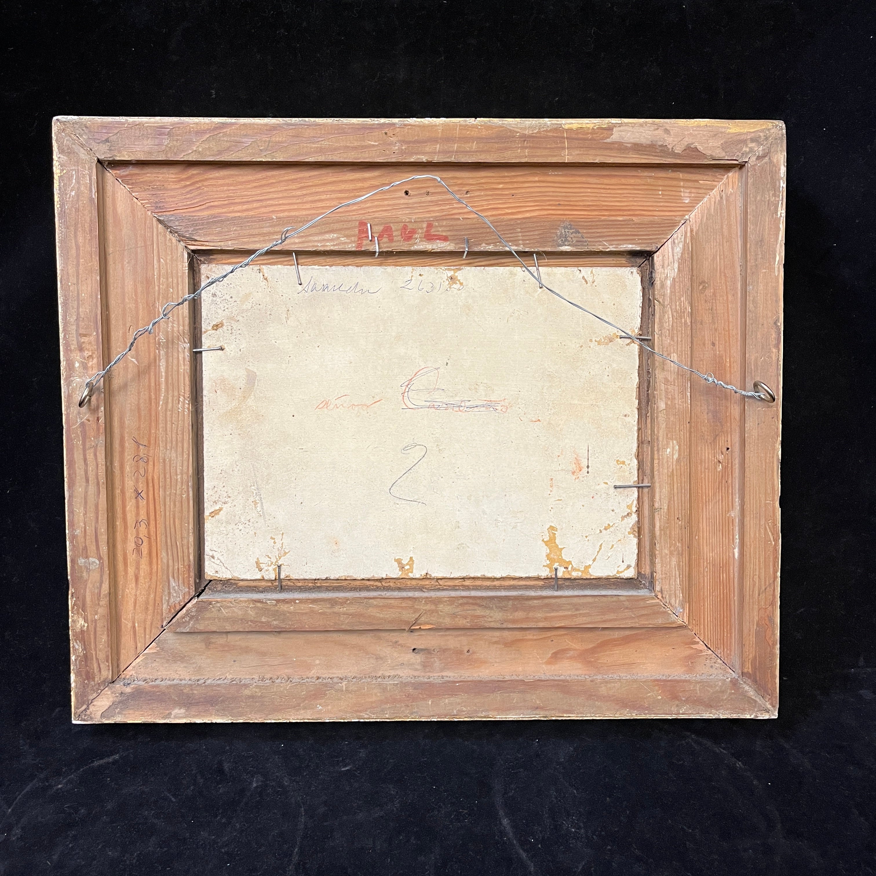 Dimensiones: Obra: alto:20cm, ancho: 29cm Marco: Alto: 39cm ancho: 46cm, profundidad: 7cm.