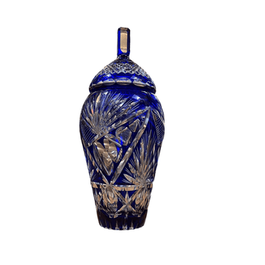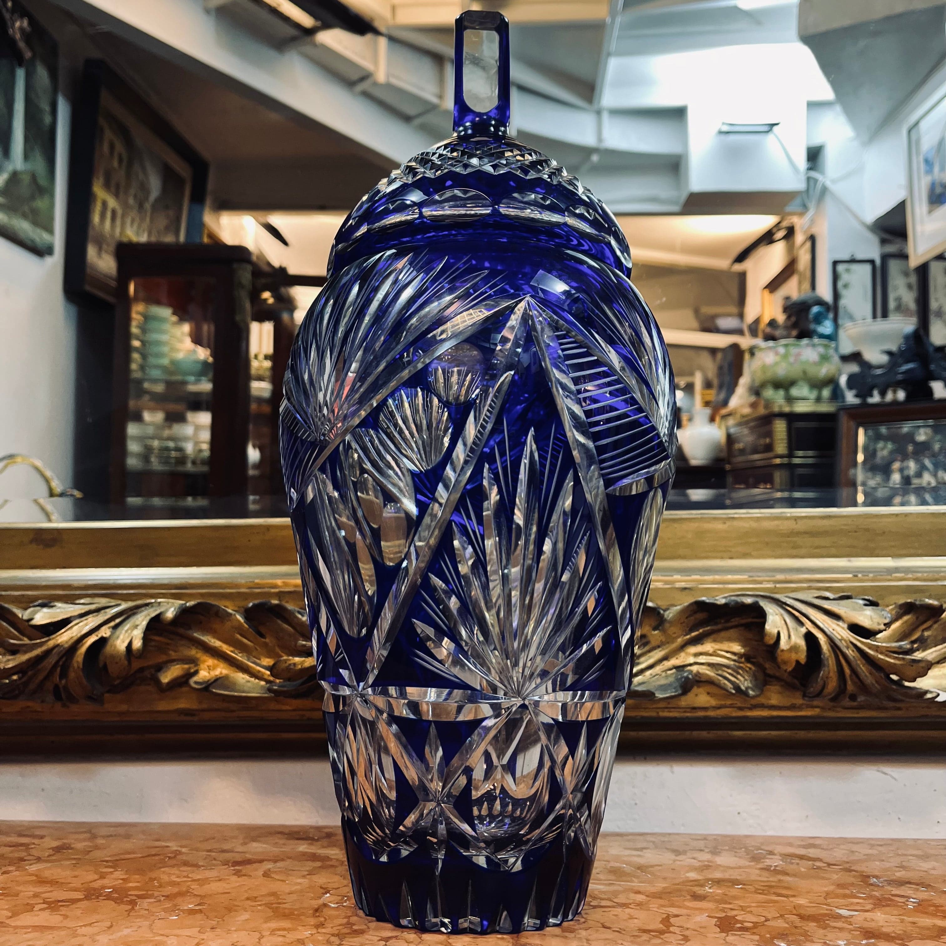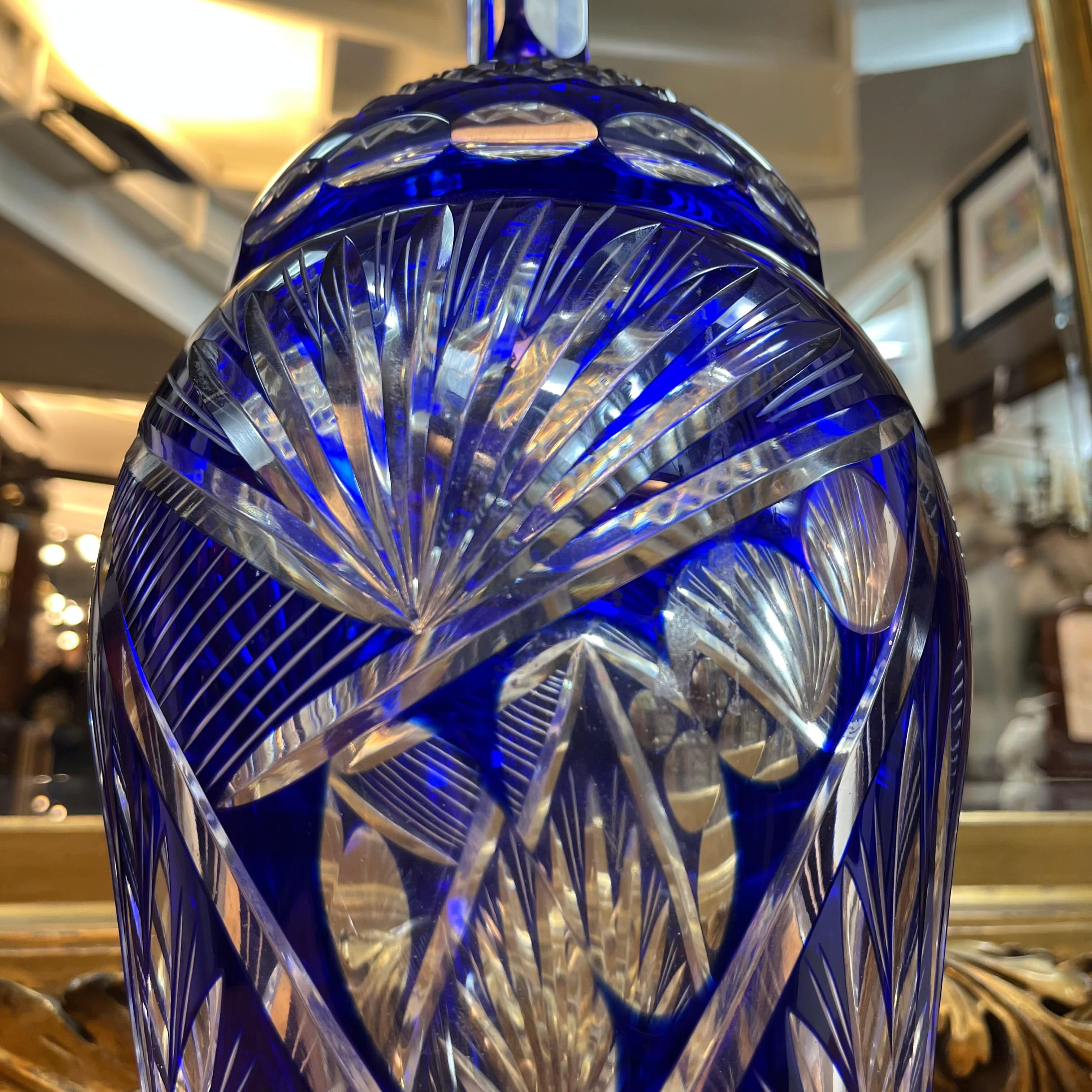 Bonbonnière en cristal taillé bleu cobalt français