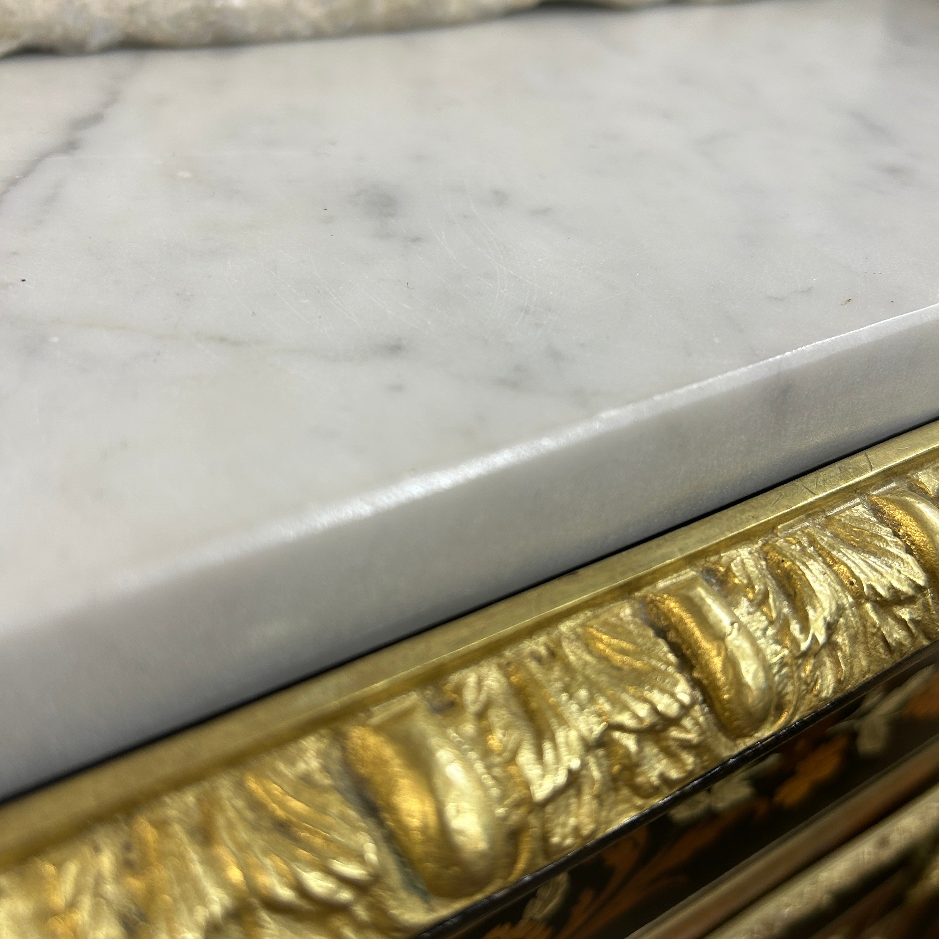 Boulle francés Napoleón III Marquetería en nácar bronces y raíz