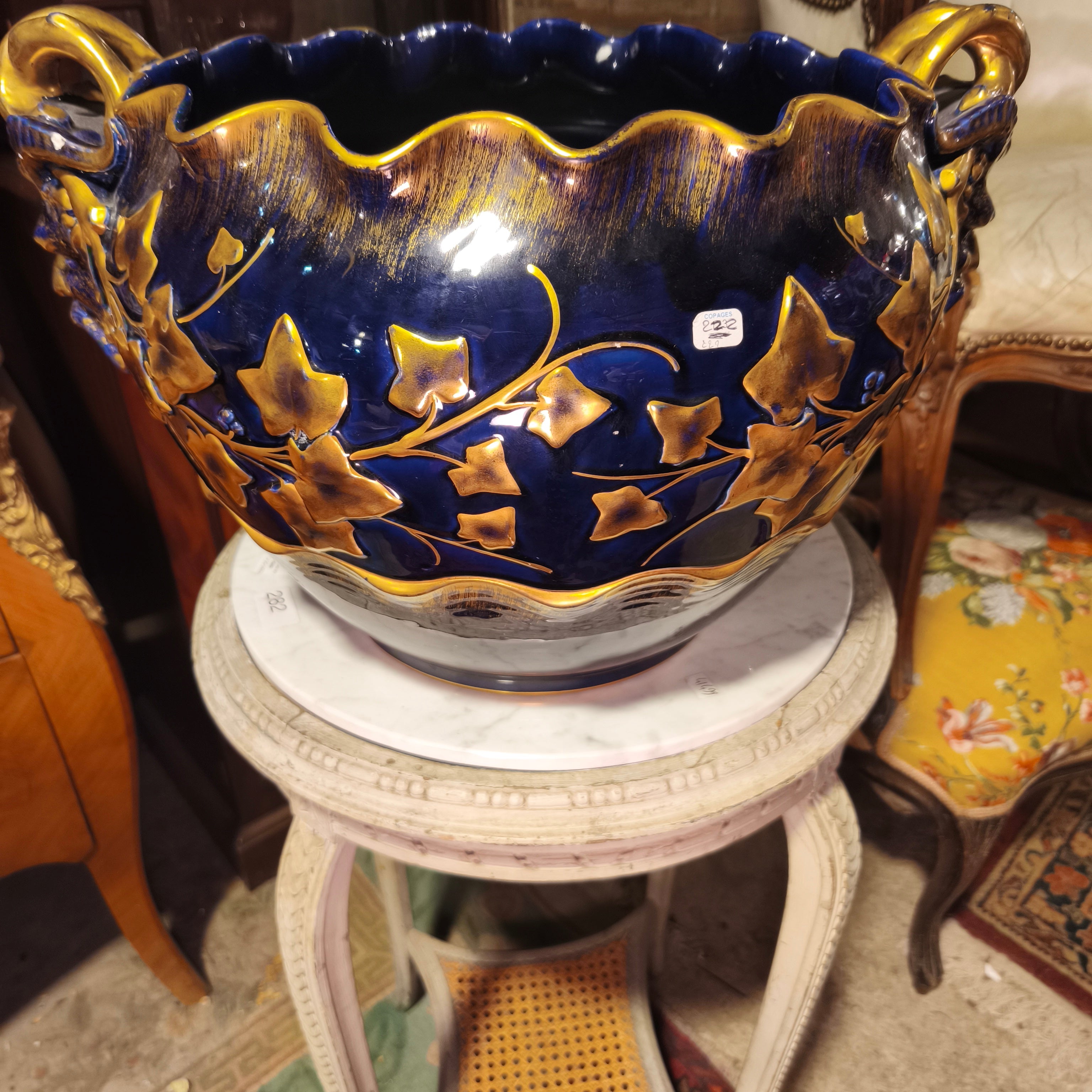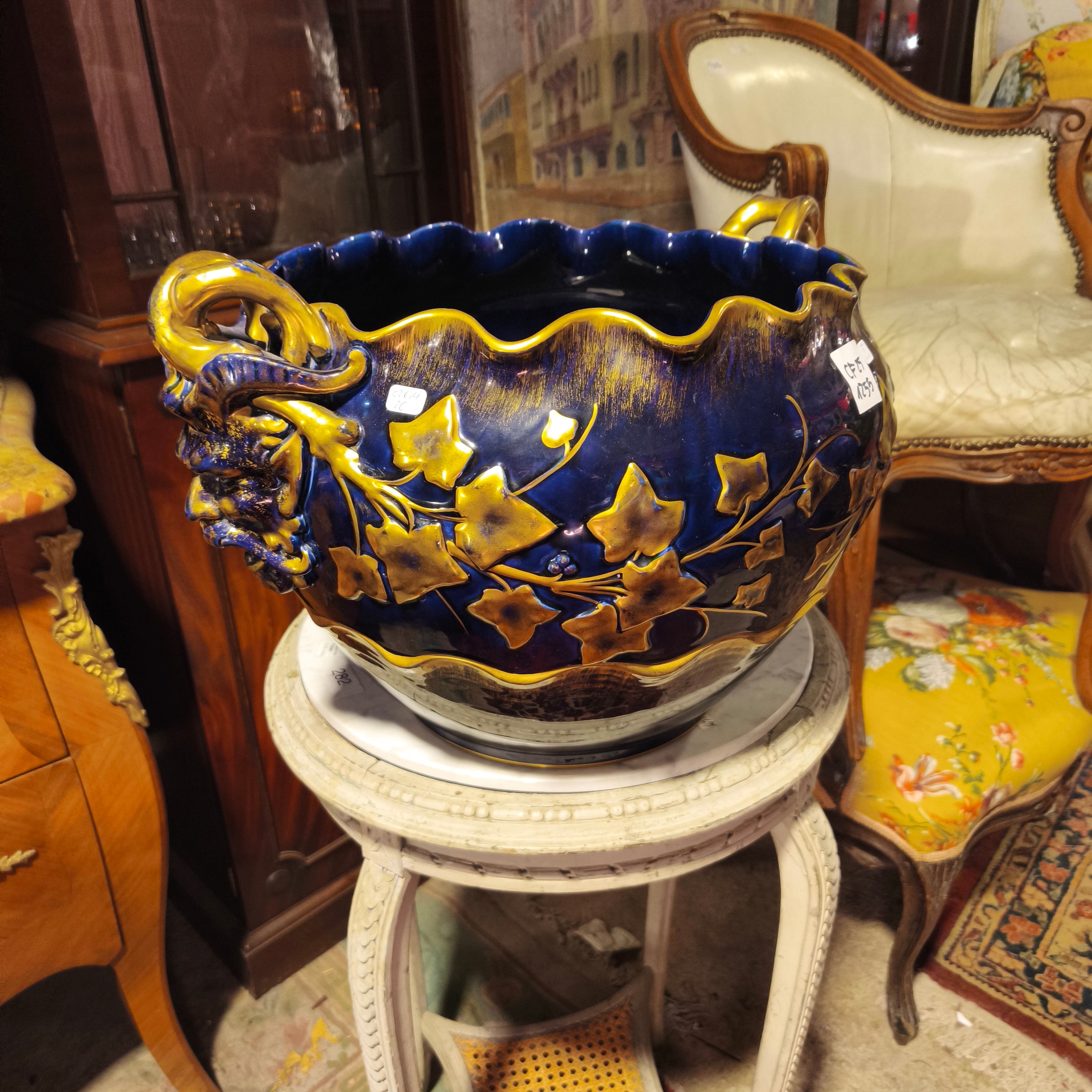 Grande jardinière en porcelaine des Satyres de Sarreguemines