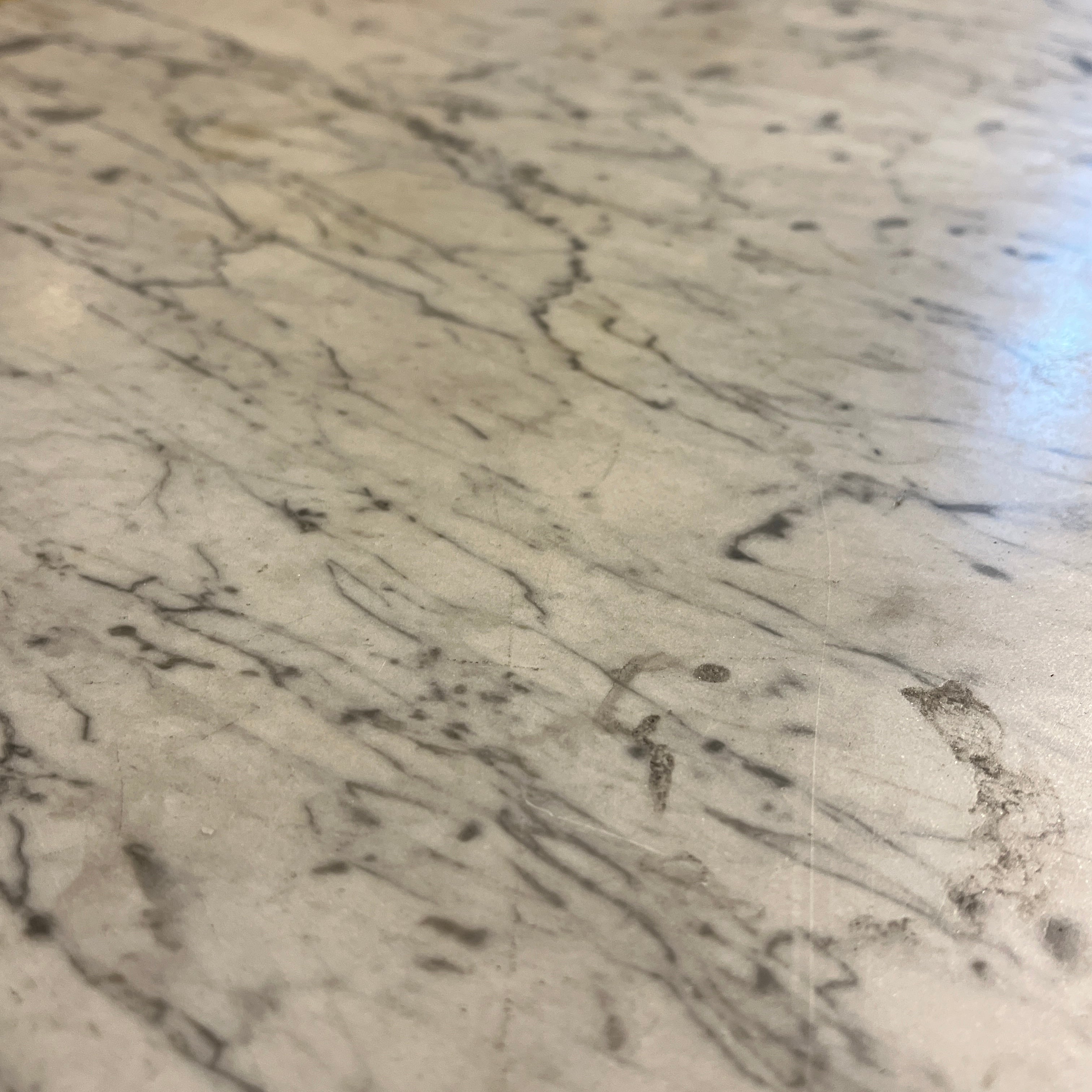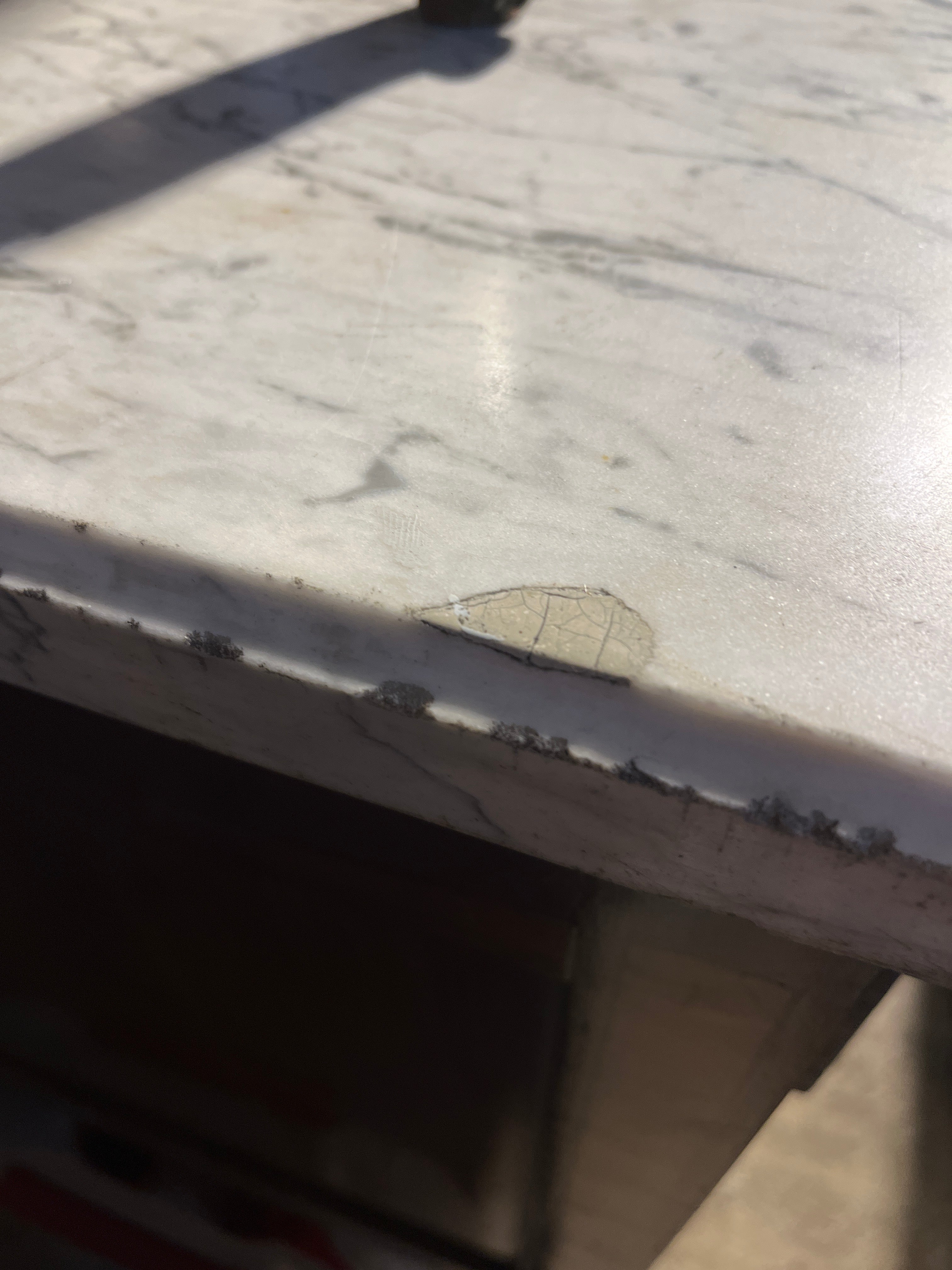 Estado: En buen estado. Cubierta de mármol con detalle. Una de sus esquinas tiene un golpe notorio. Se entrega barnizada.