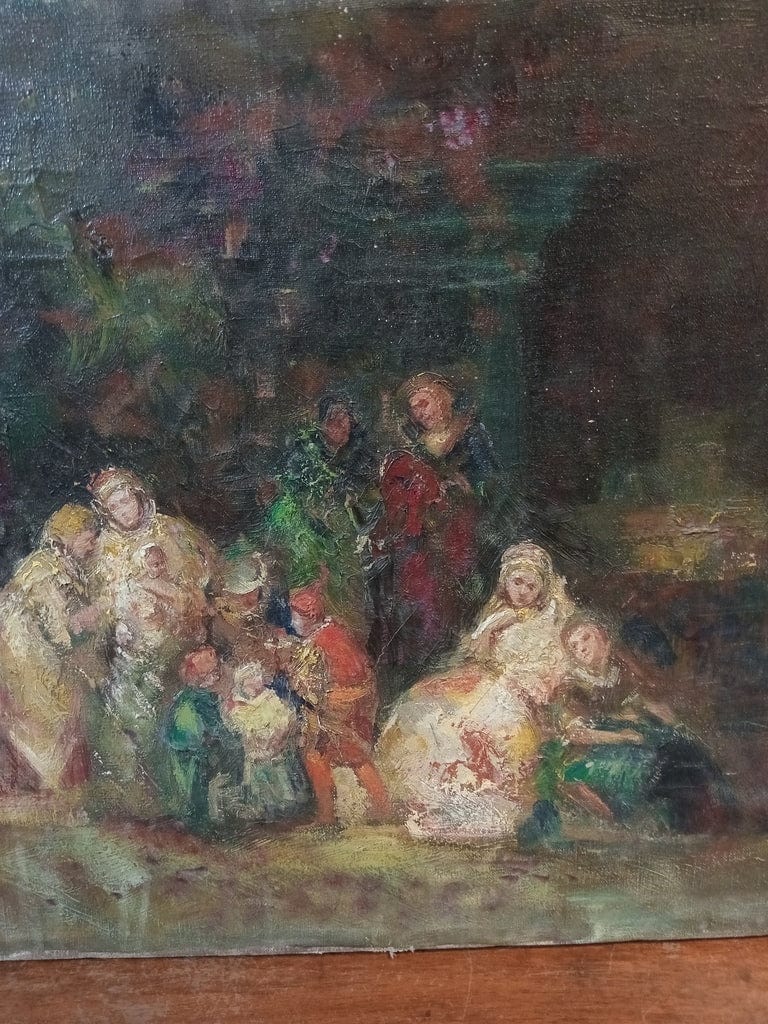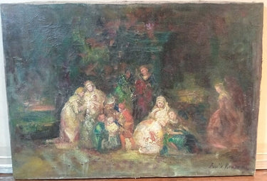 Emile Rousseau - Peinture à l'huile « Mères et enfants dans le parc »