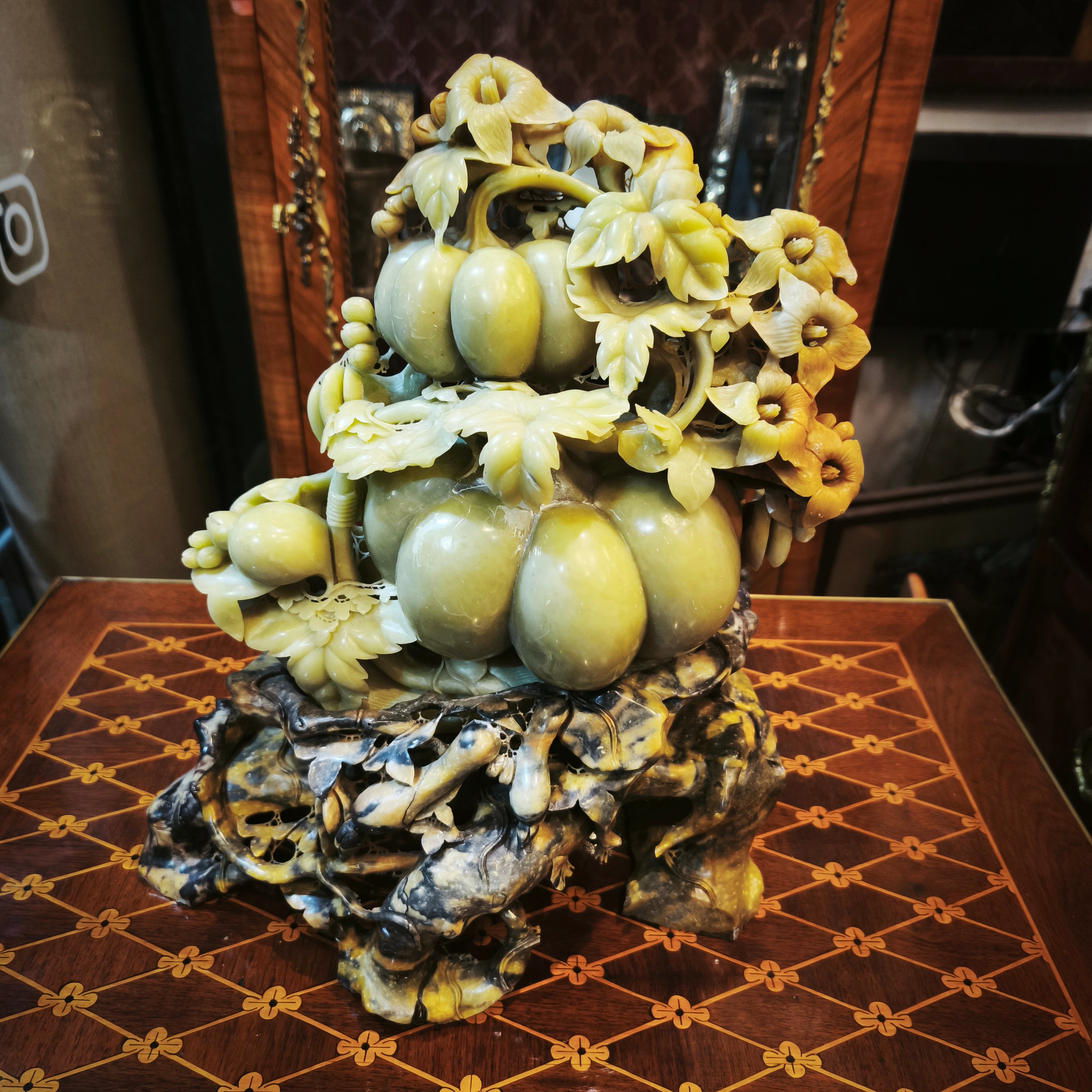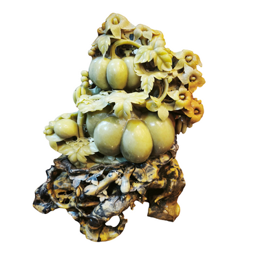 Sculpture asiatique en pierre dure « Vigne aux fruits et aux fleurs »
