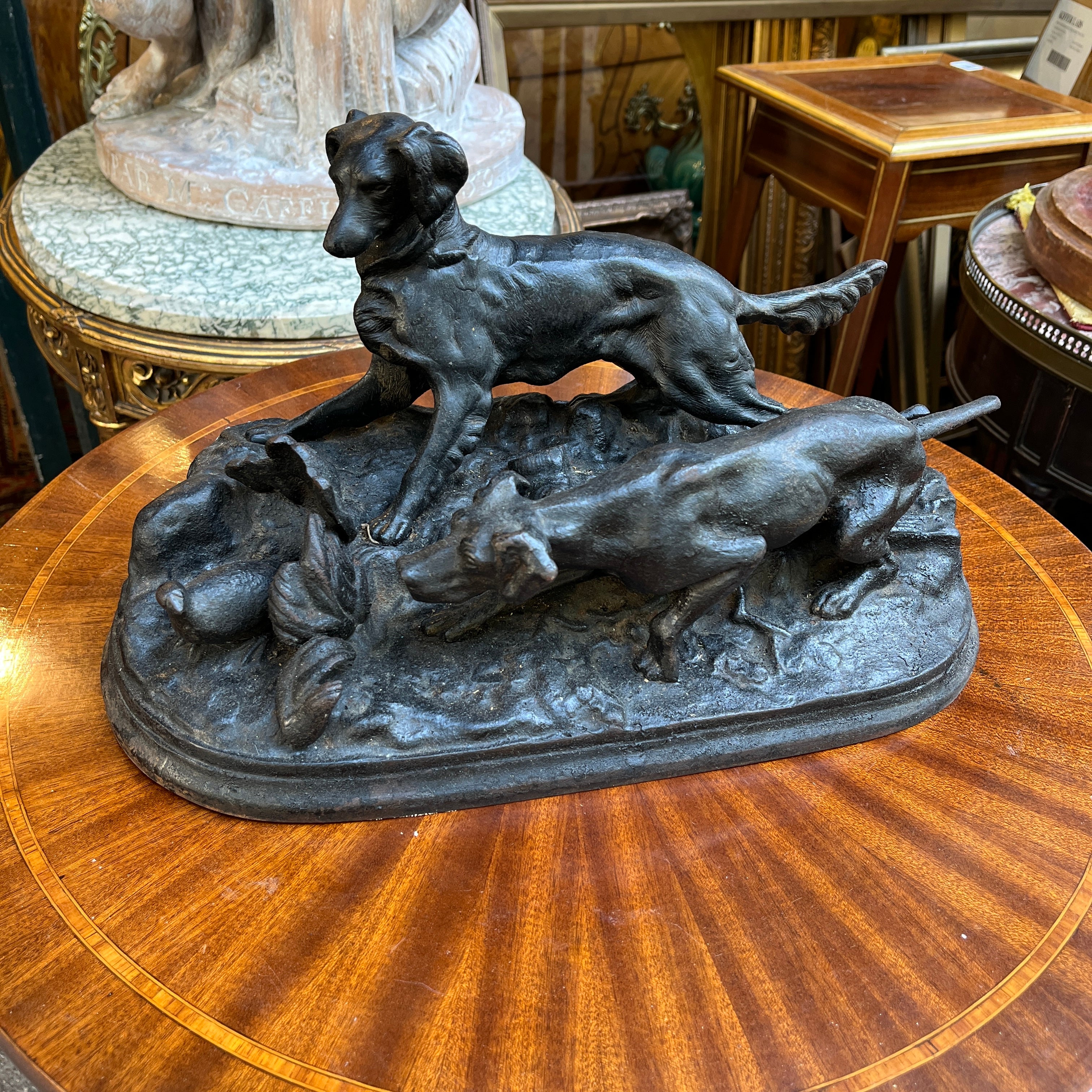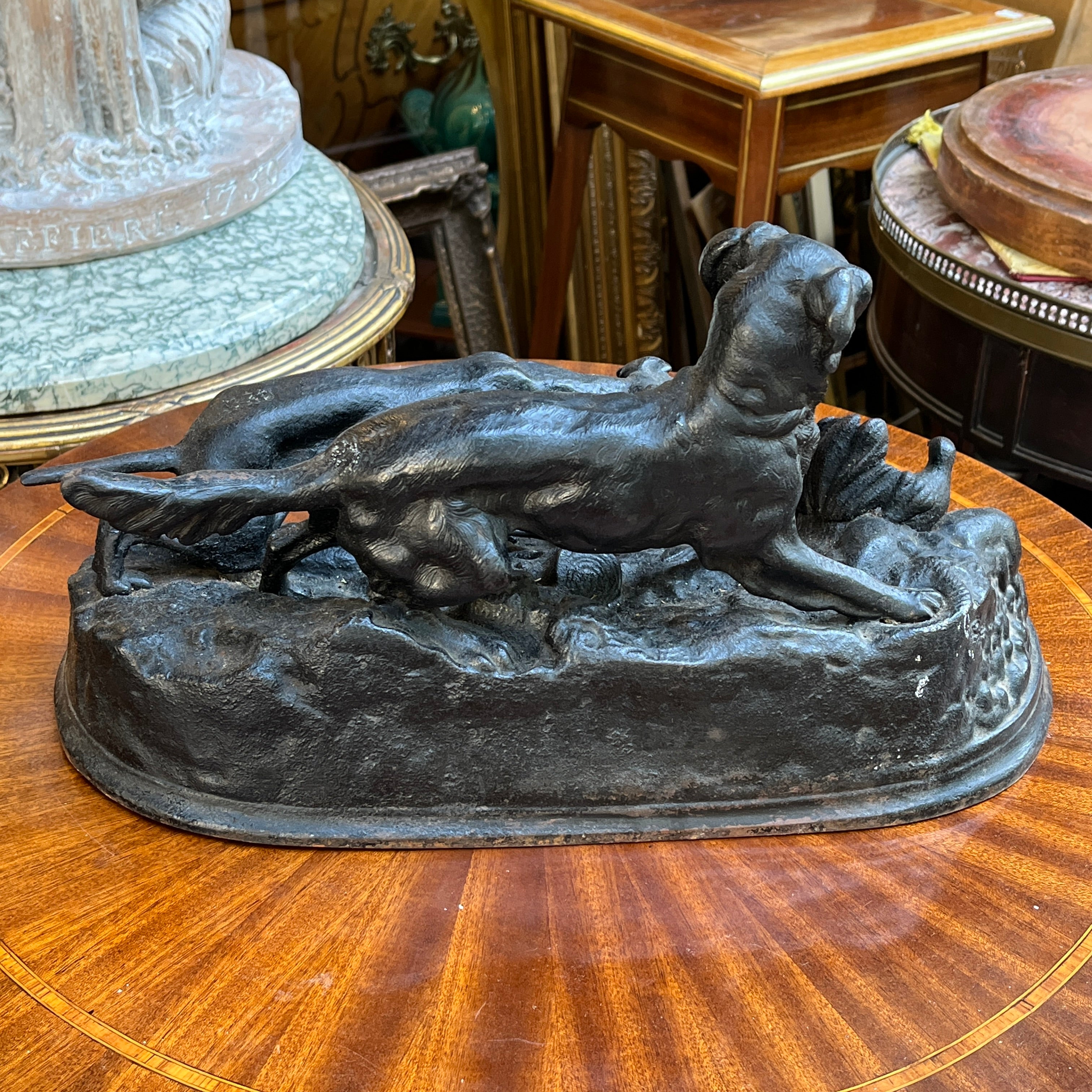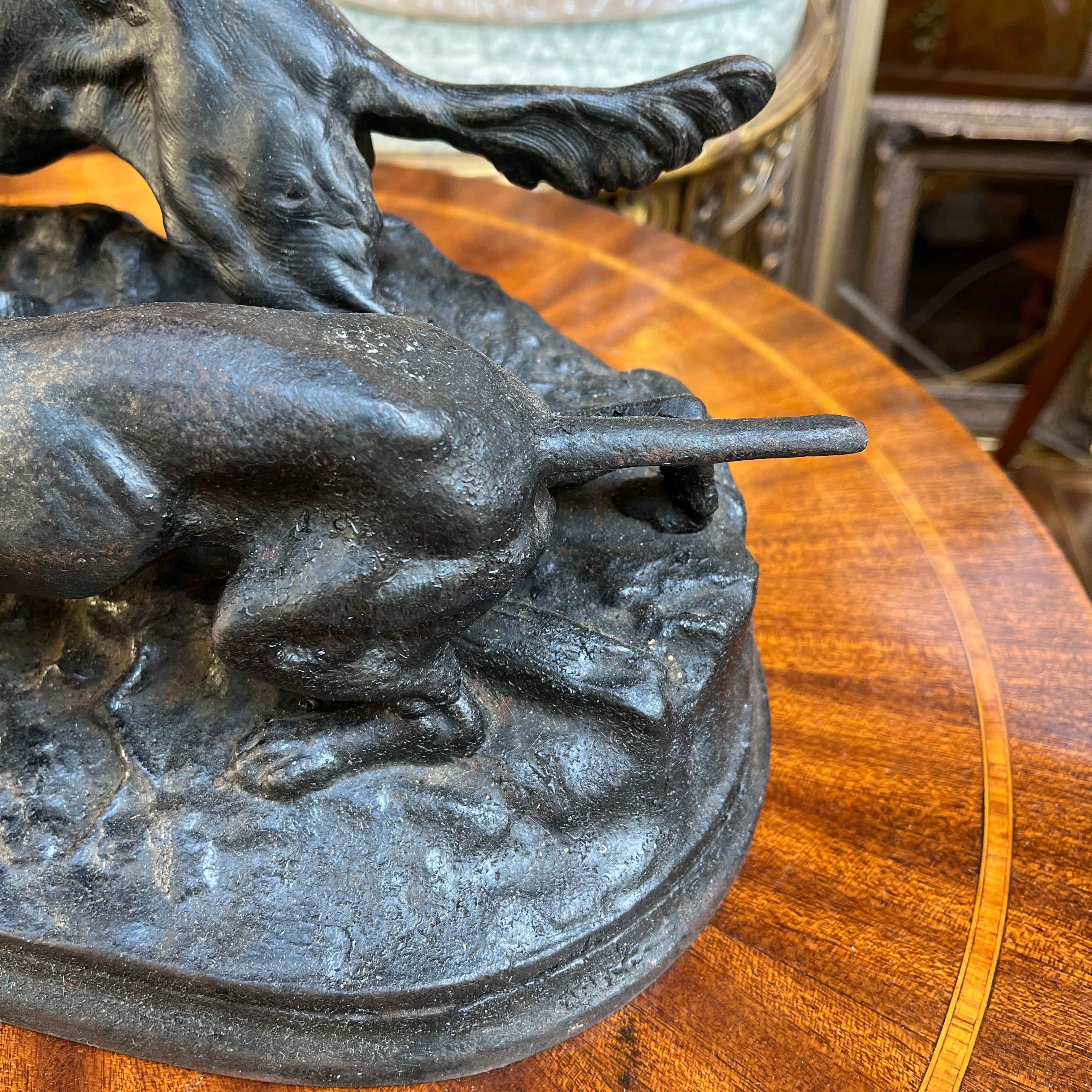 Escultura francesa de fierro fundido perros cazando una codorniz
