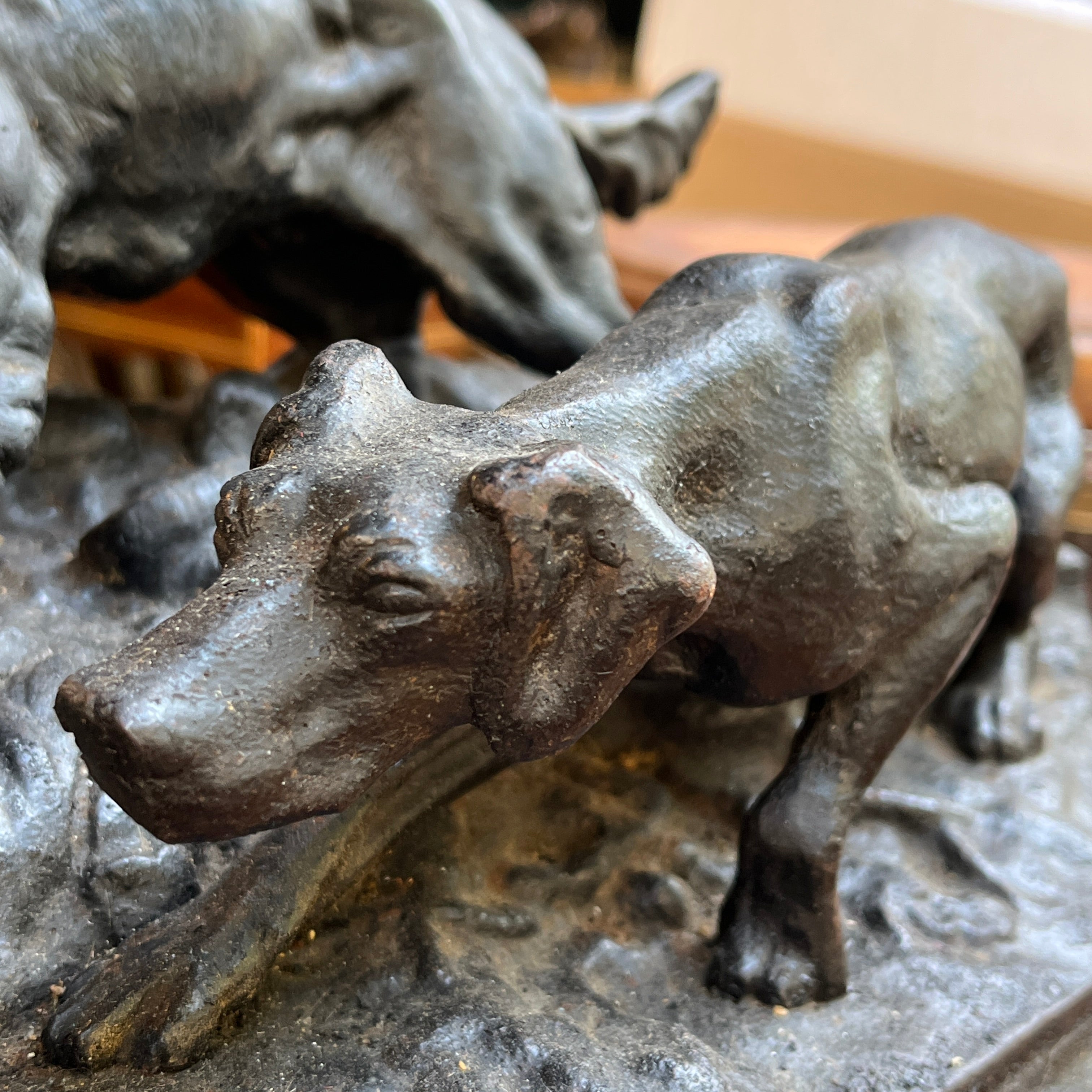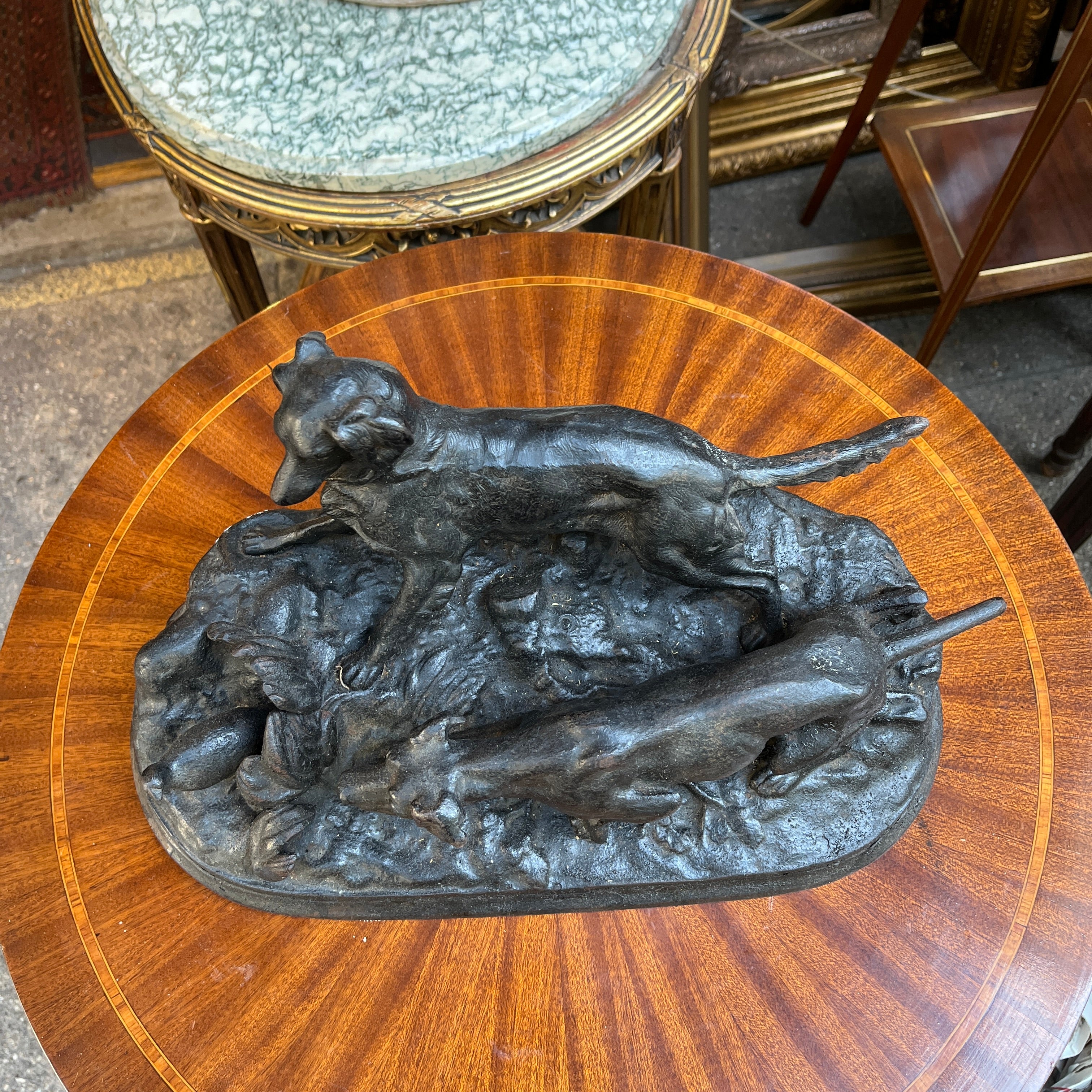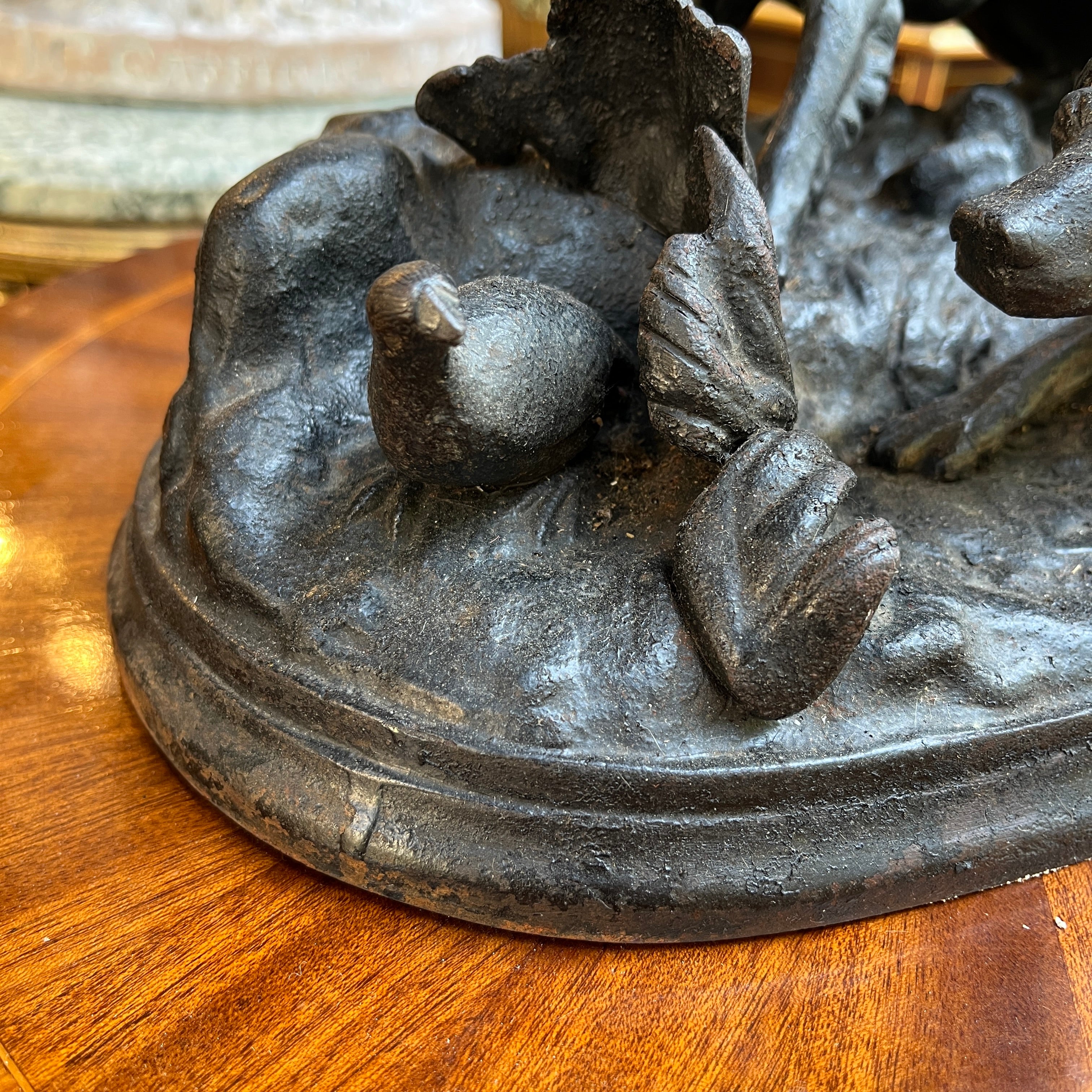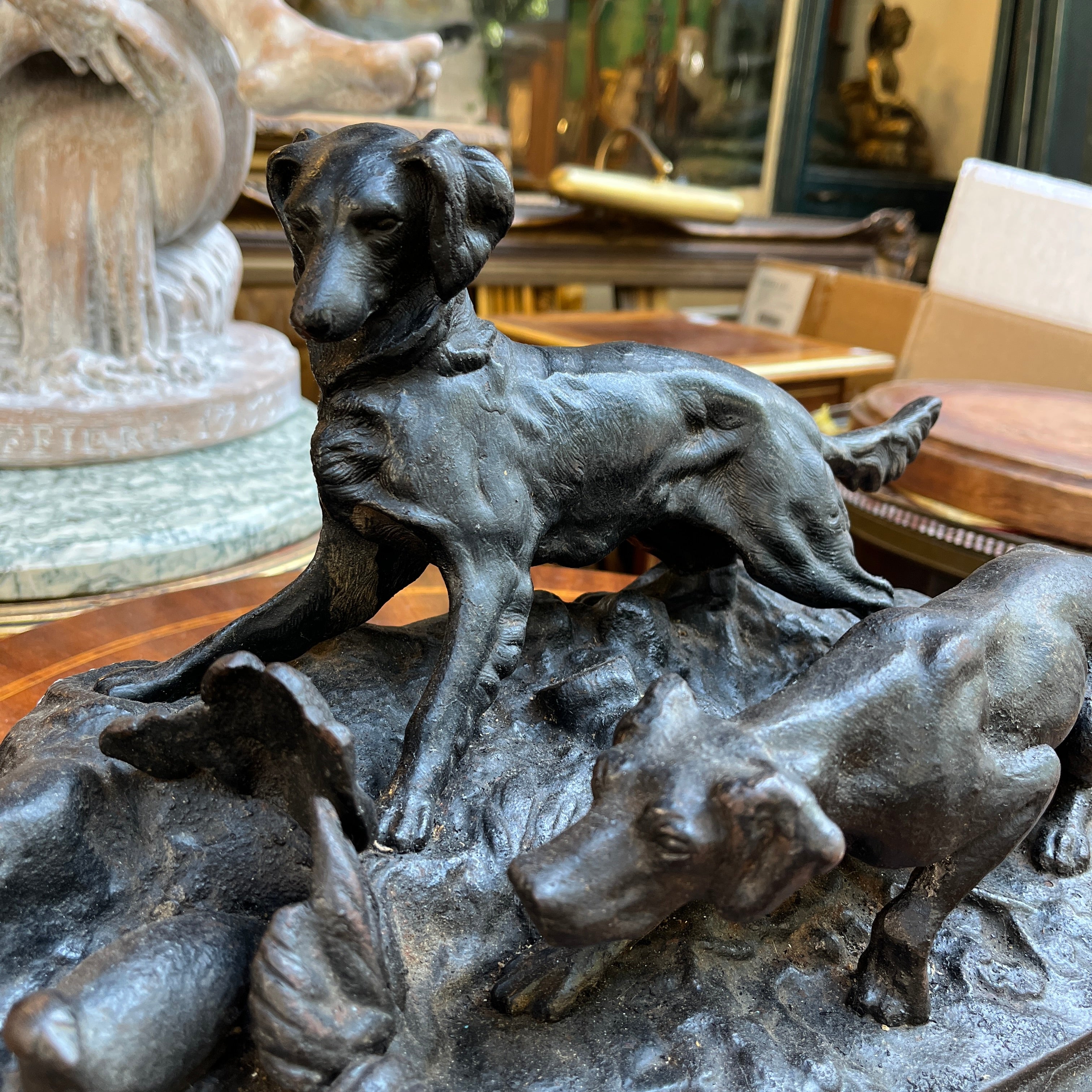 Escultura francesa de fierro fundido perros cazando una codorniz