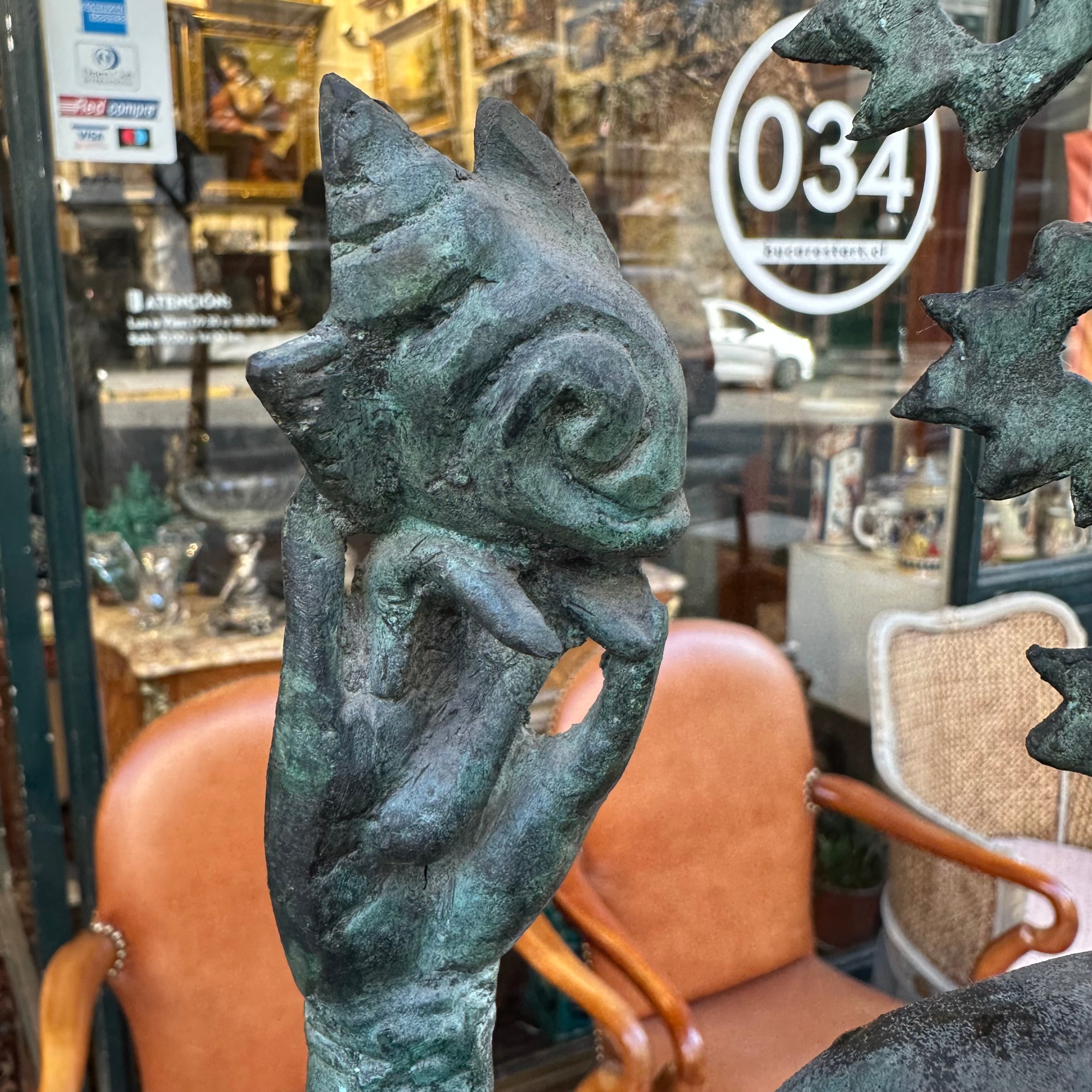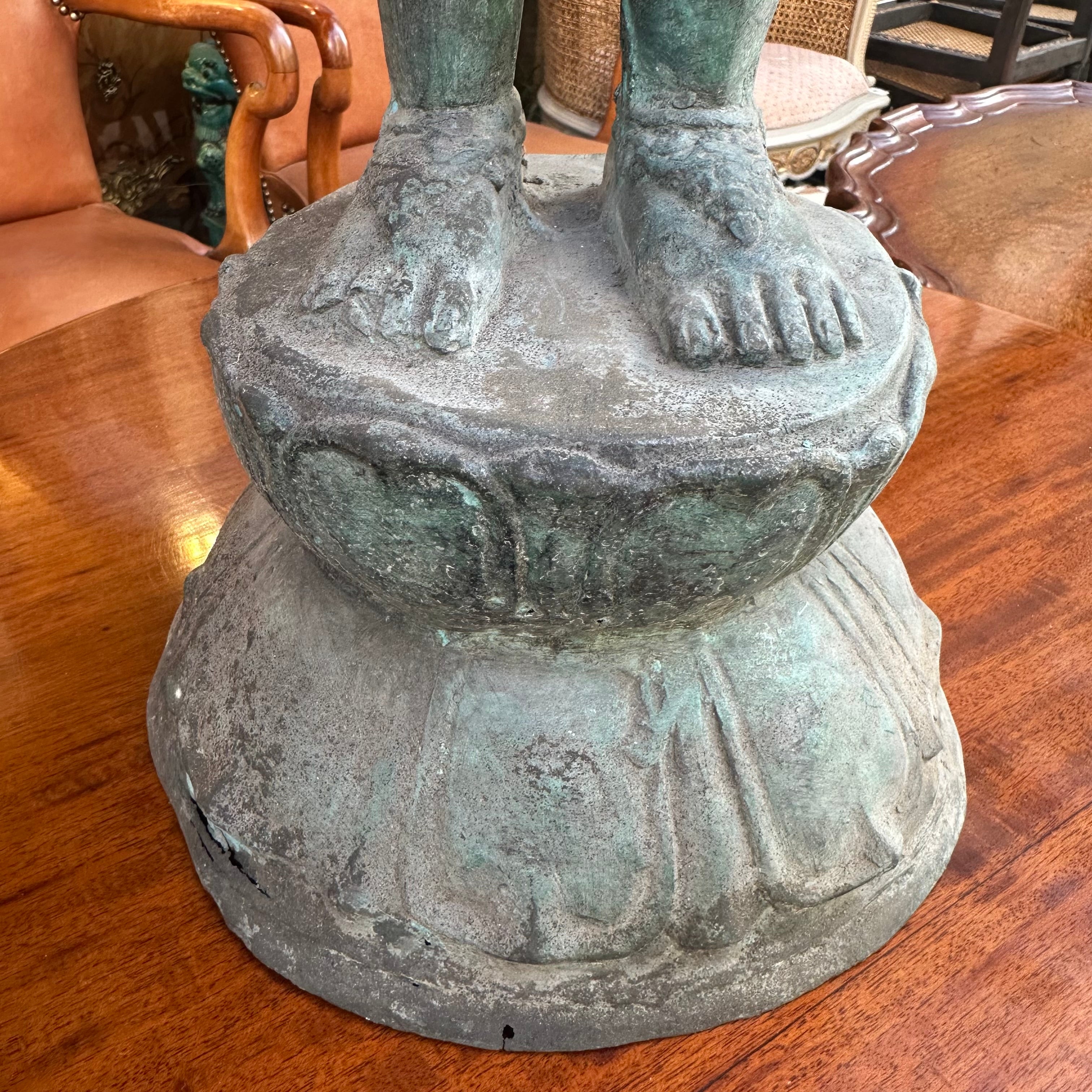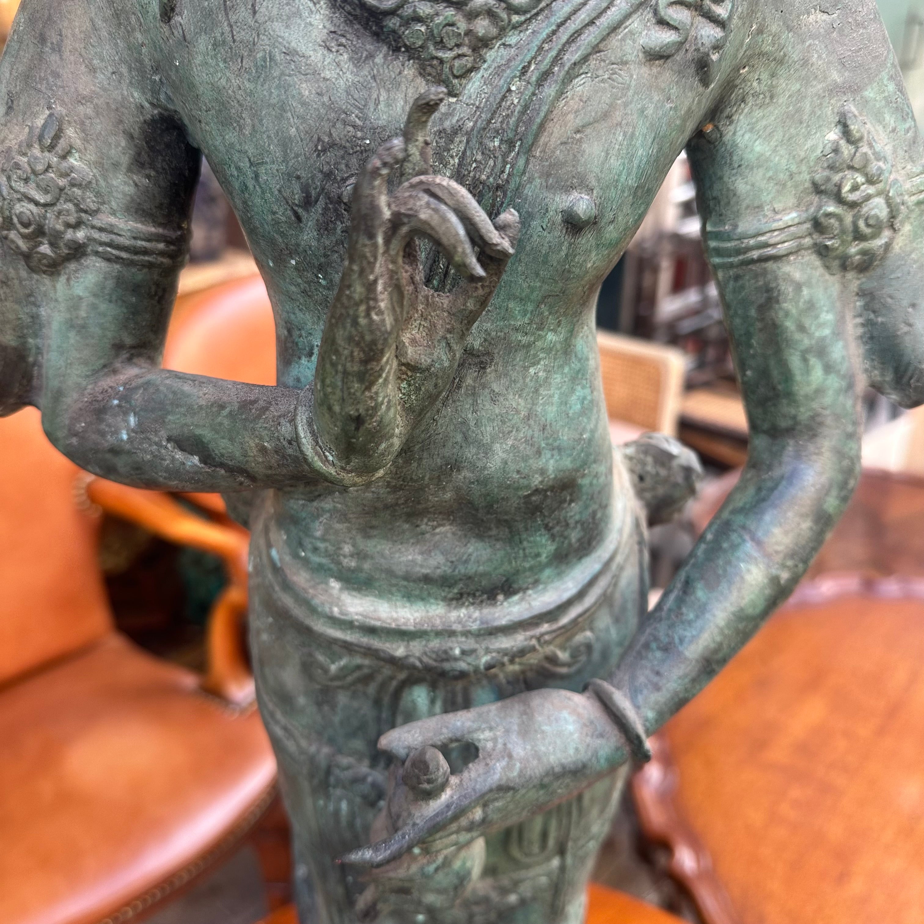 Sculpture en bronze vert d'origine indienne, représentant la divinité Brahma, une figure qui représente la création, la connaissance et la sagesse dans la cosmologie hindoue.