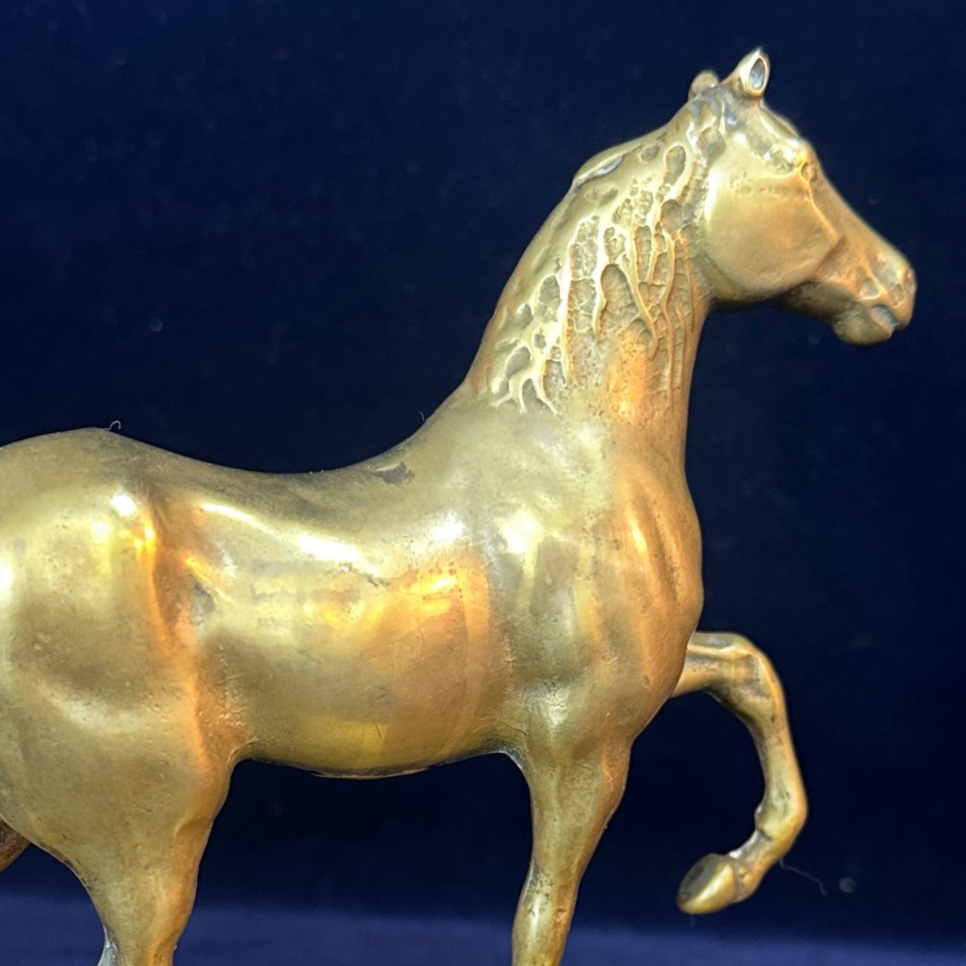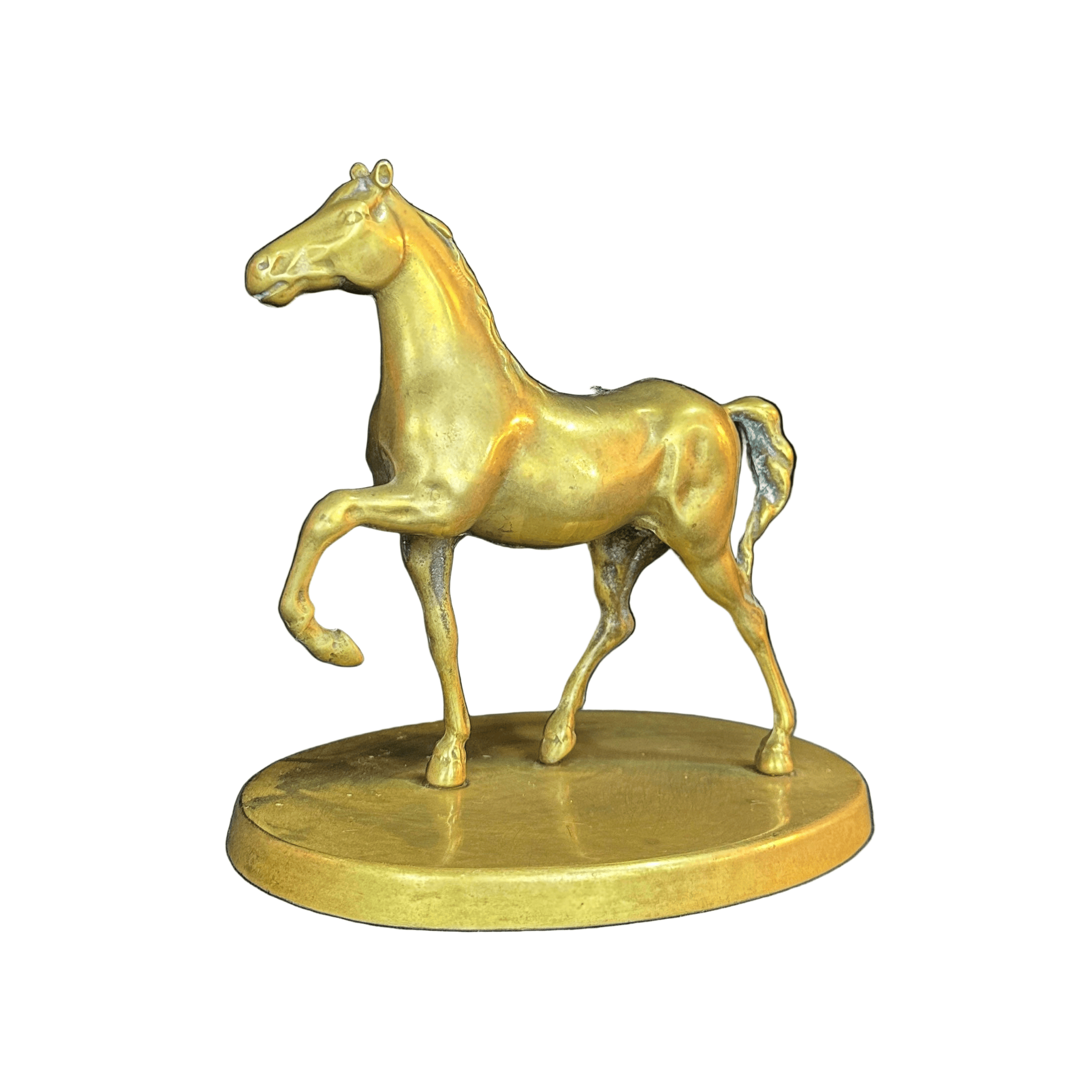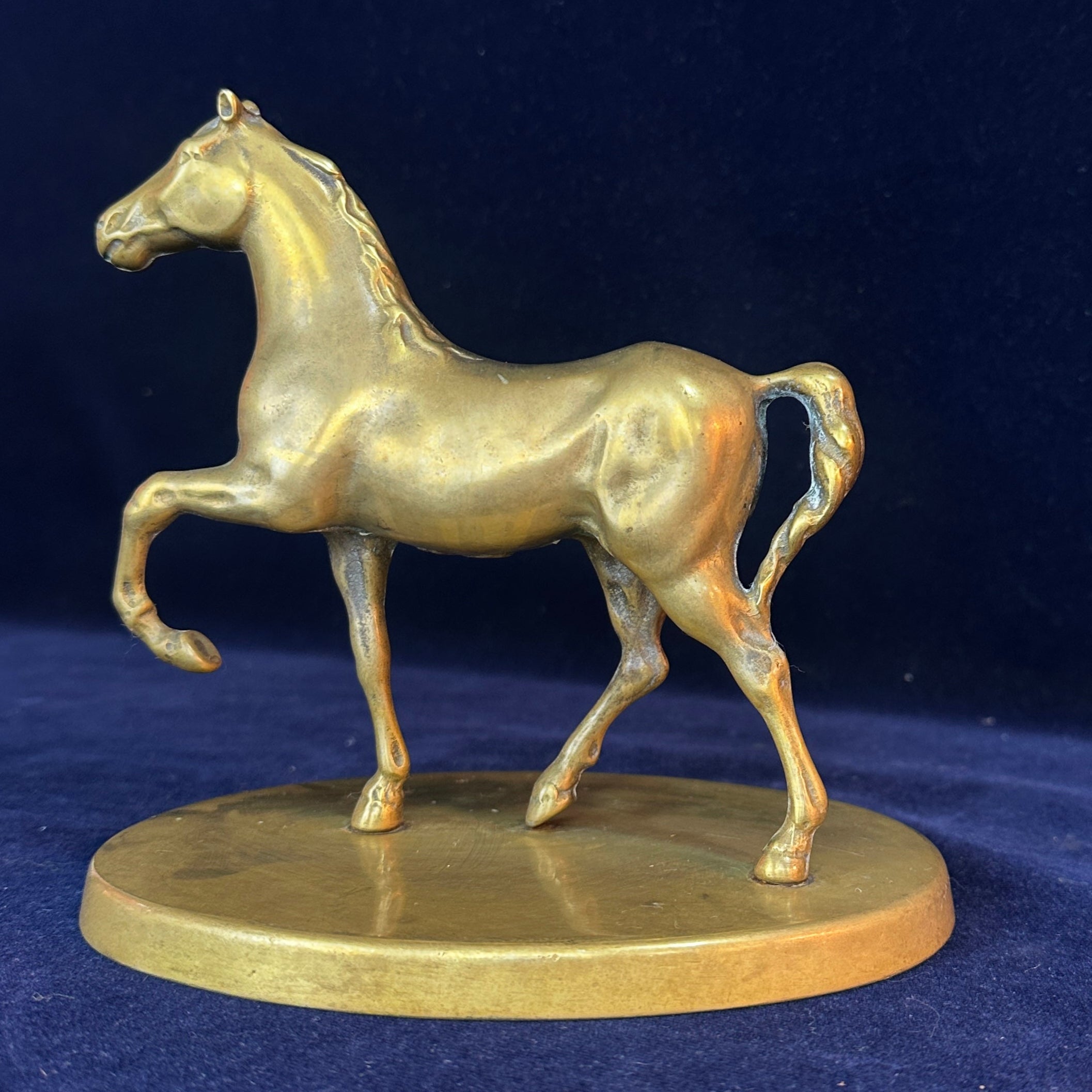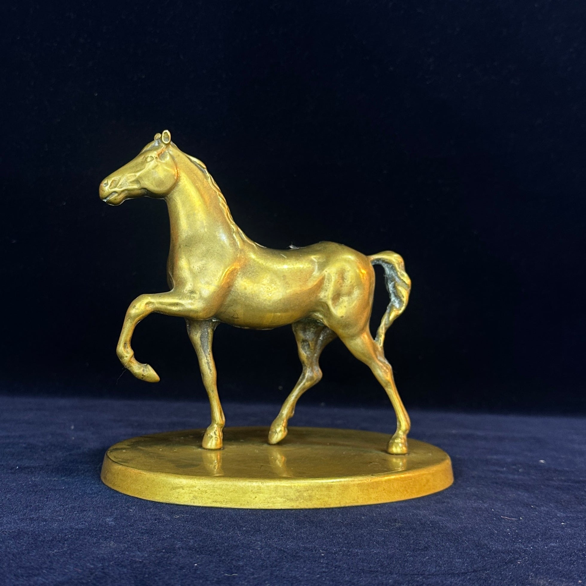 Magnifique statuette de cheval en bronze français, finement modelée, représentant un équidé marchant sereinement. La pièce présente des détails délicats qui soulignent la force et l'élégance de l'animal, perché sur un socle ovale en bronze.