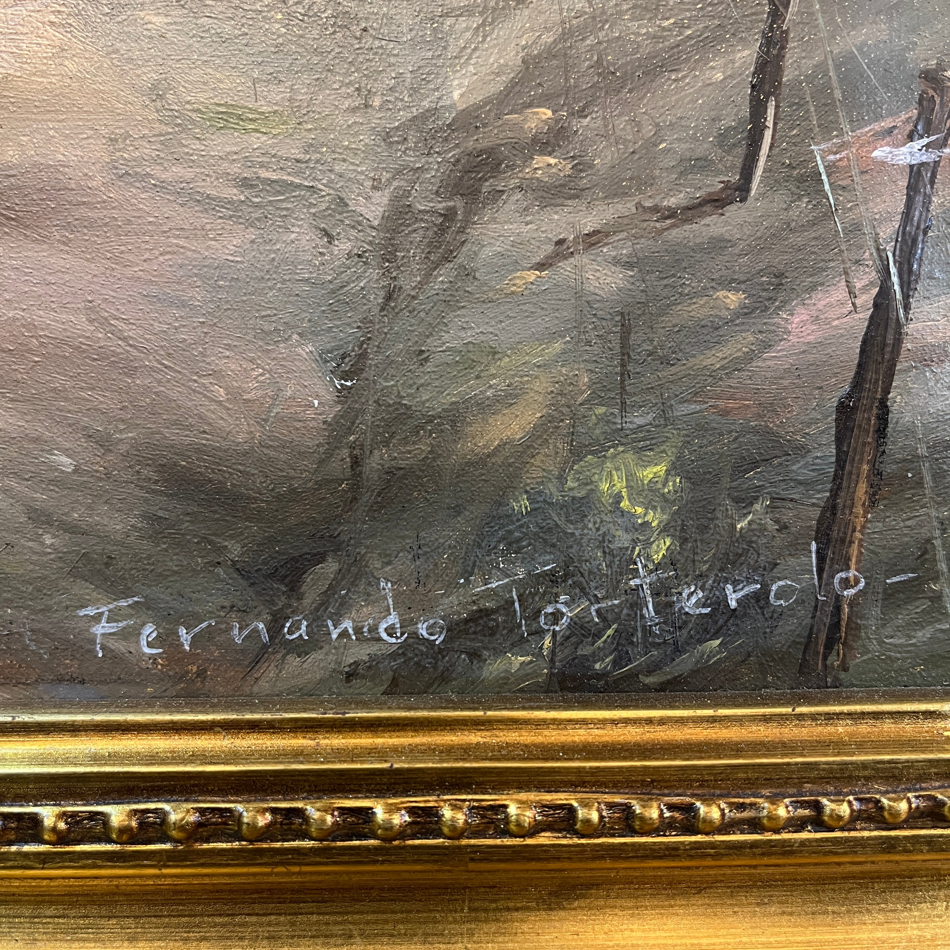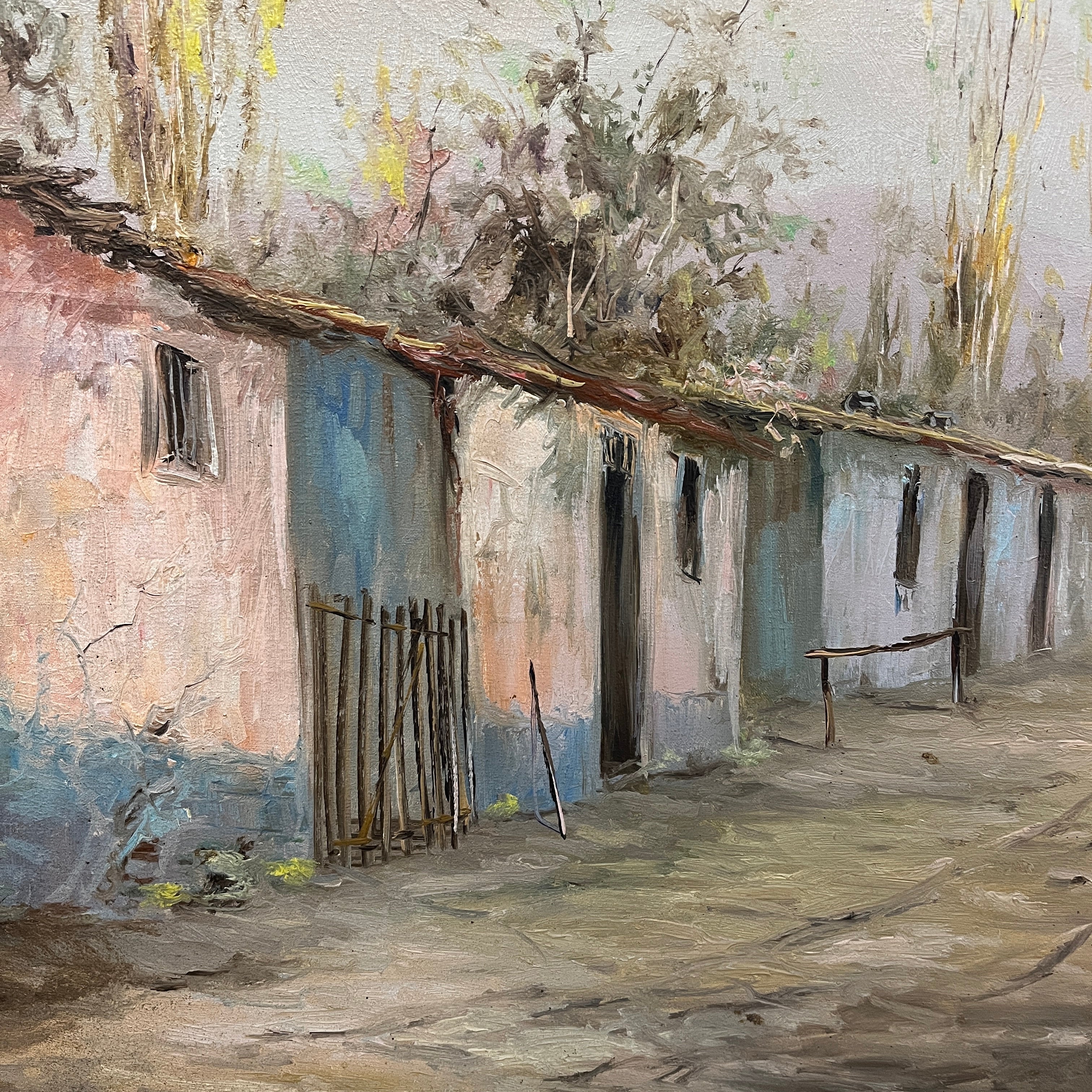 Fernando Tortorelo - Óleo sobre cartón 'Casas junto al camino'