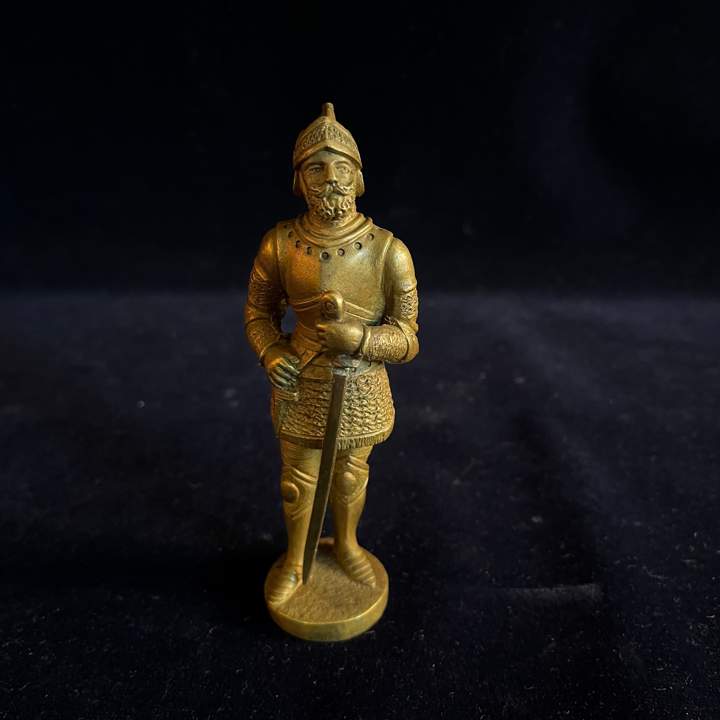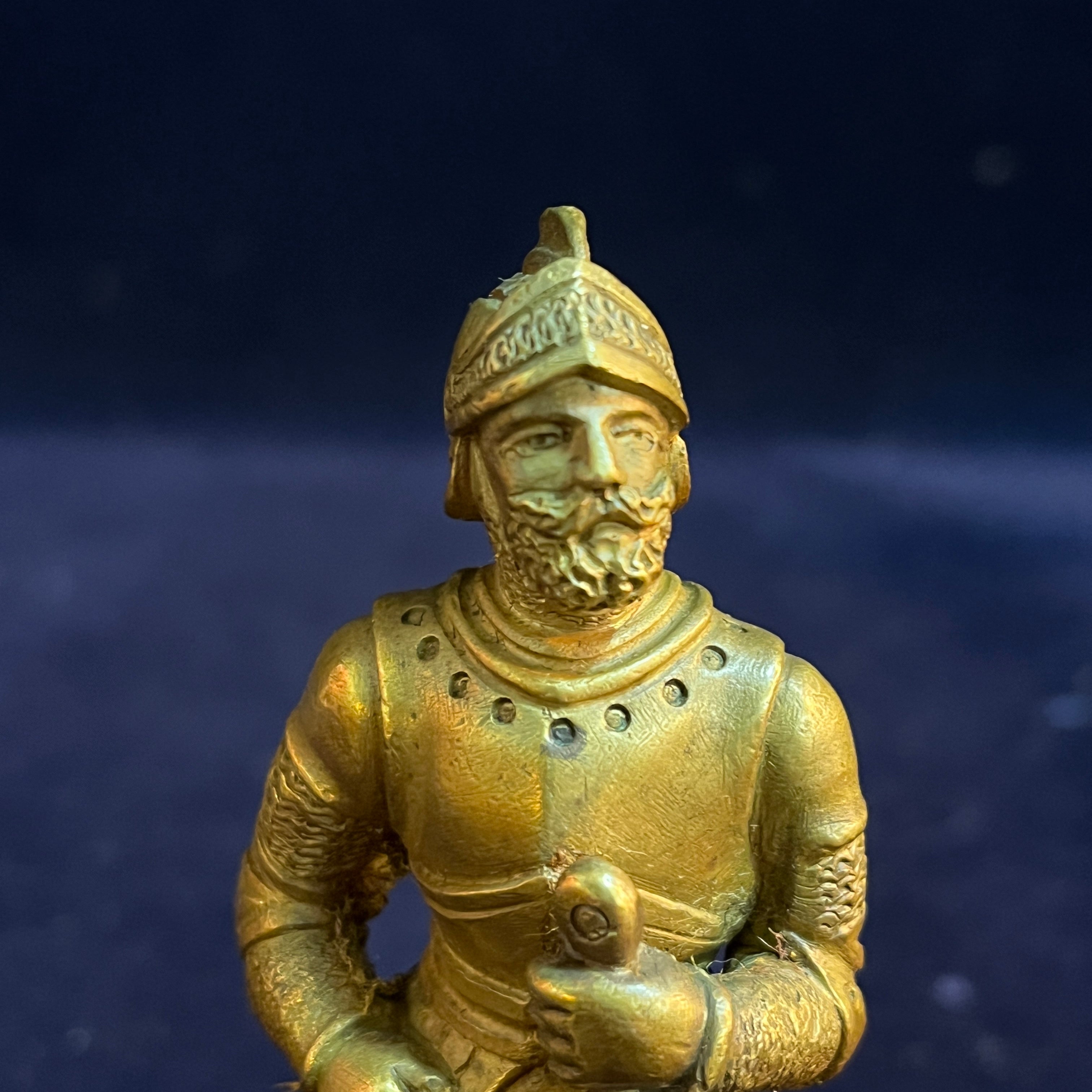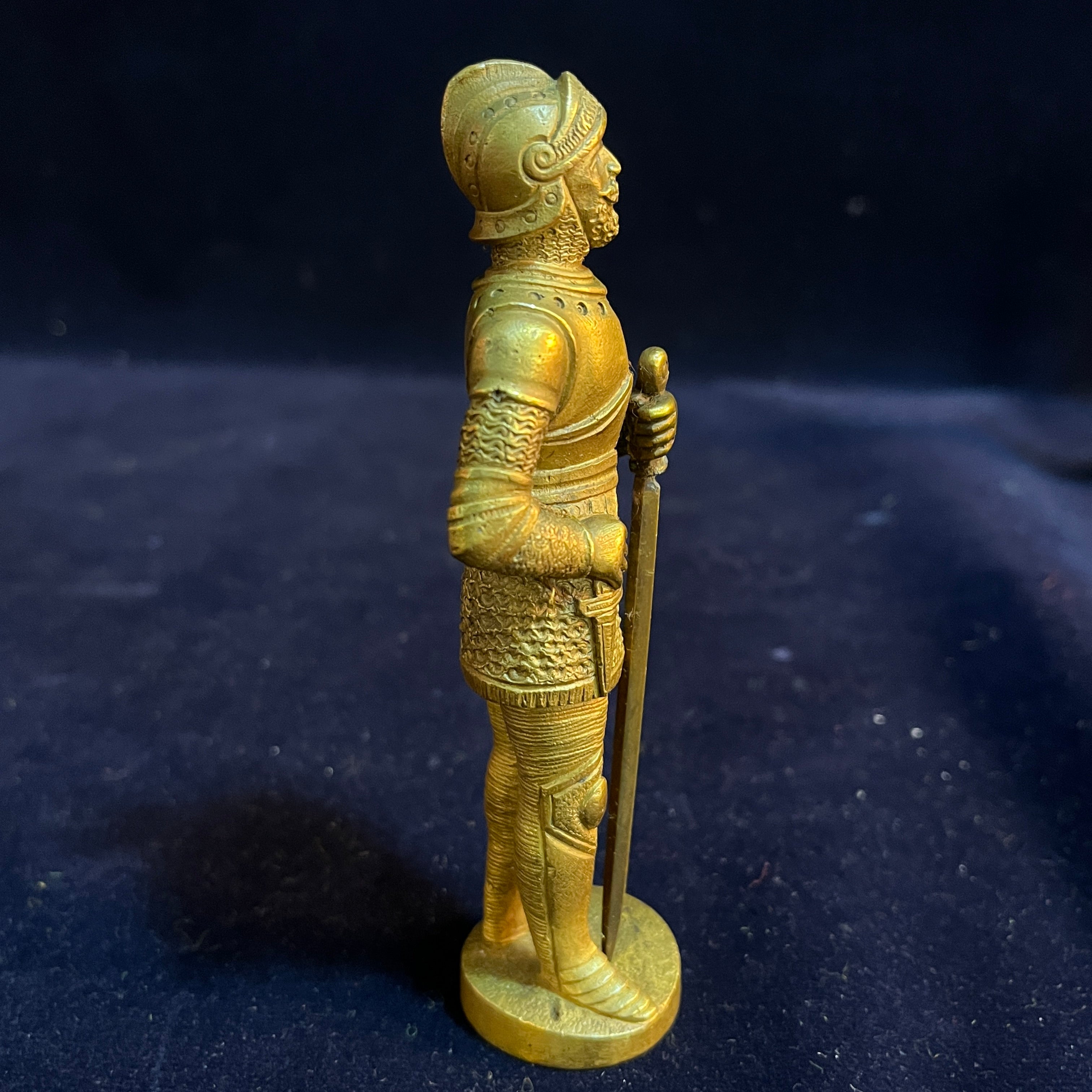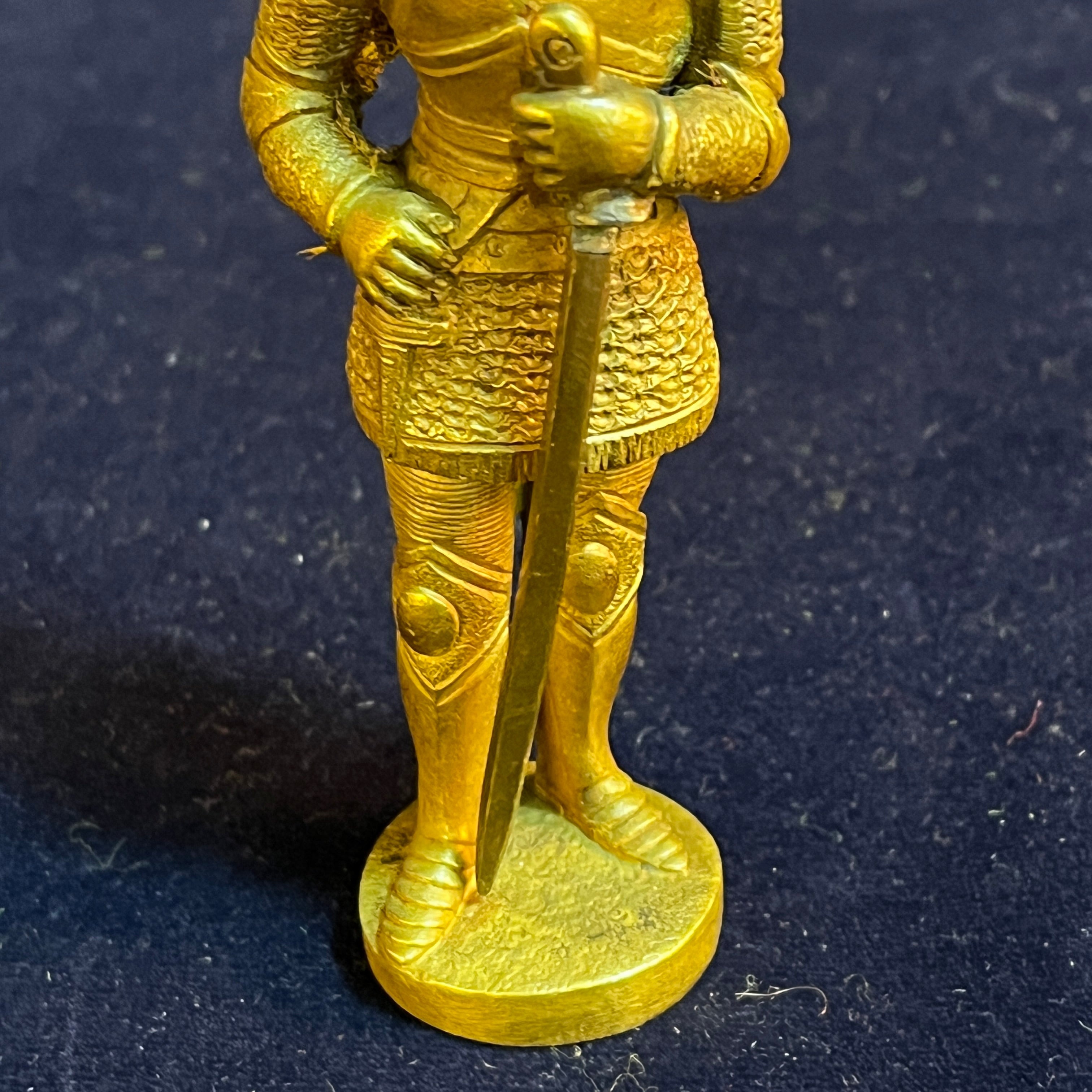 Figure en bronze française d'un chevalier médiéval avec une épée et un poignard