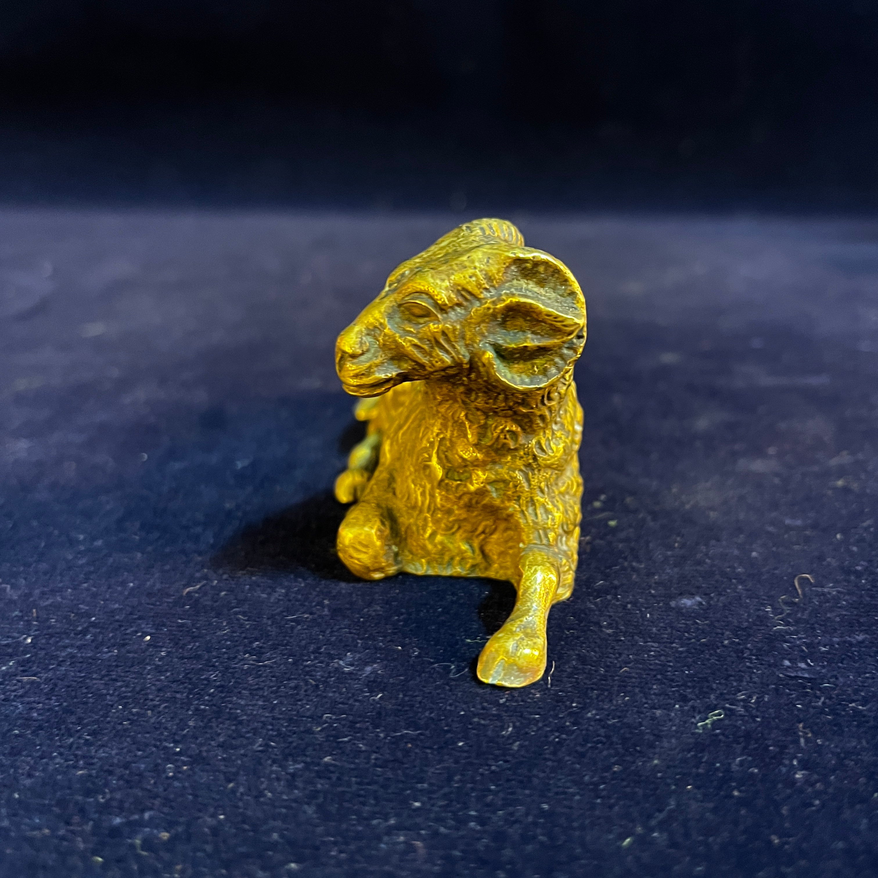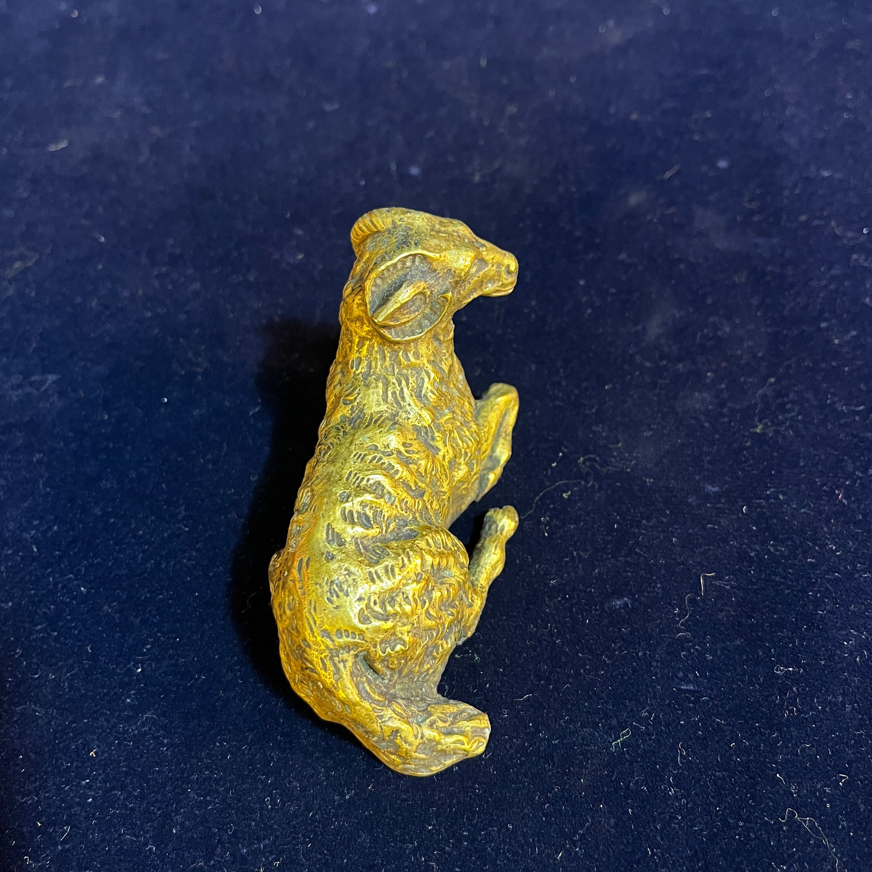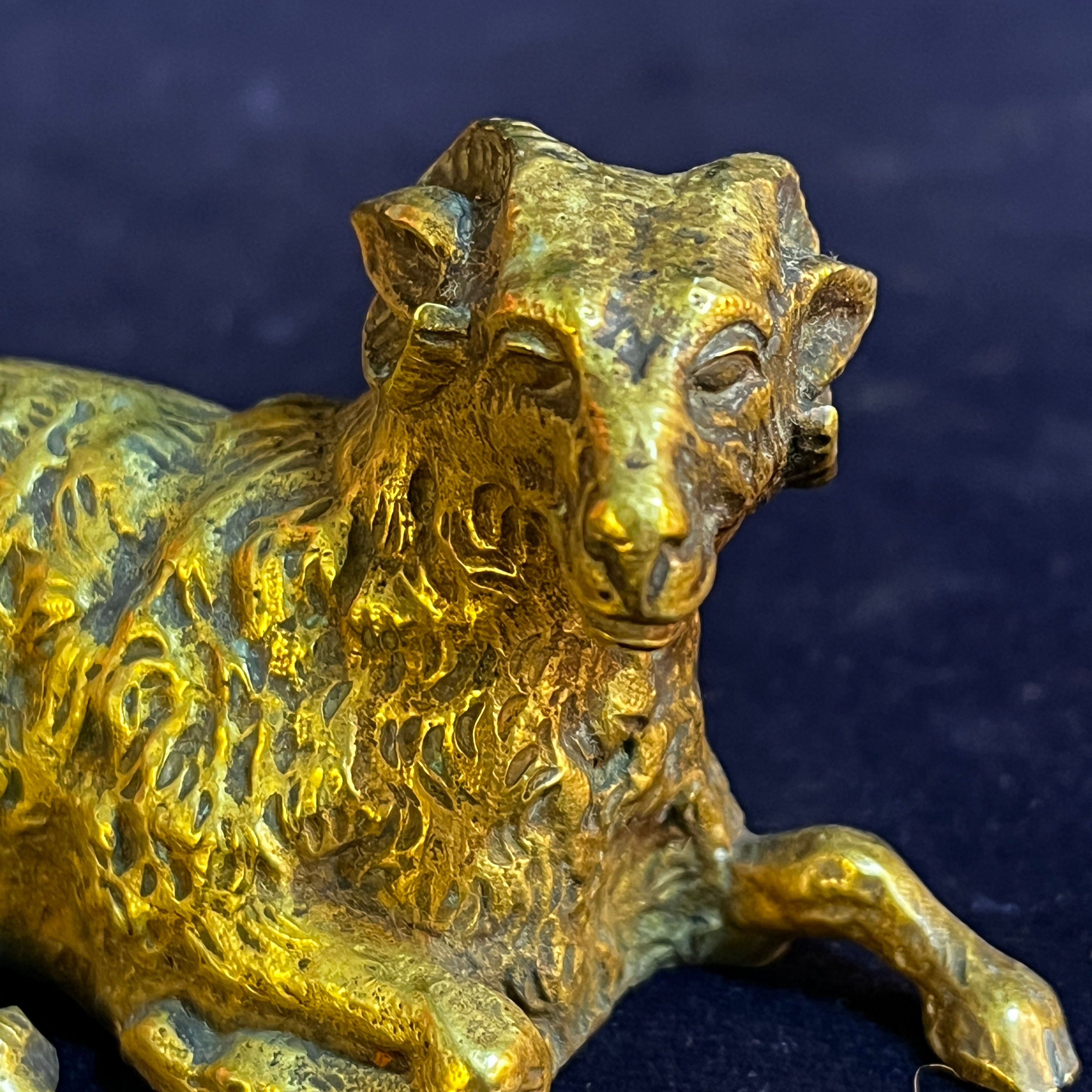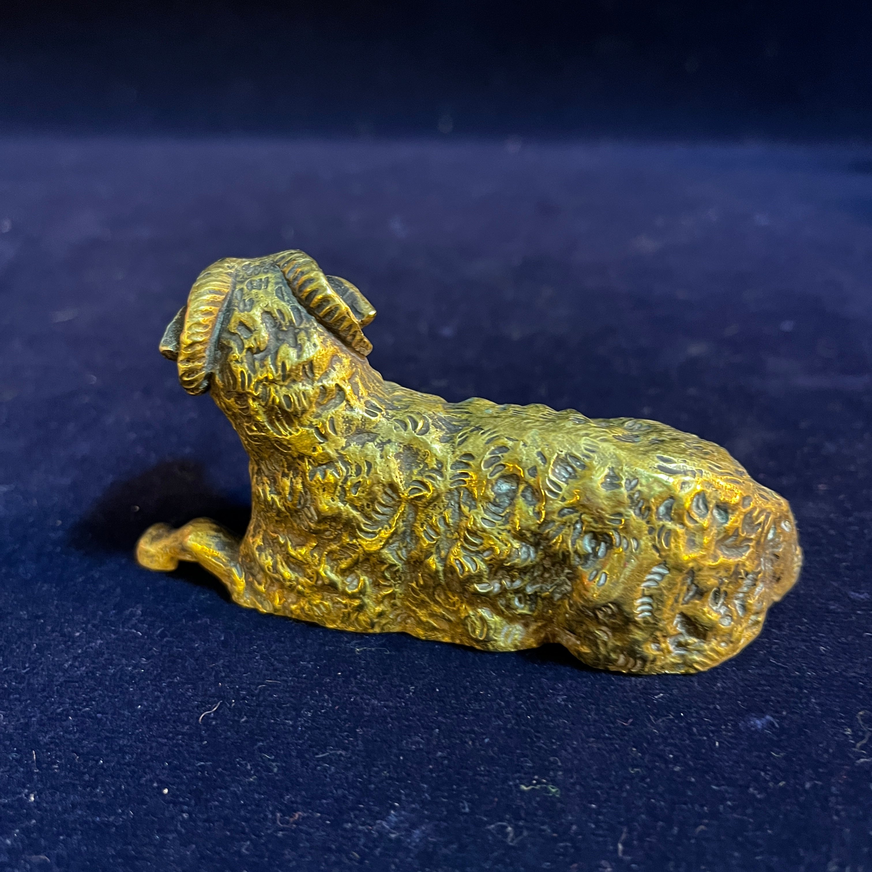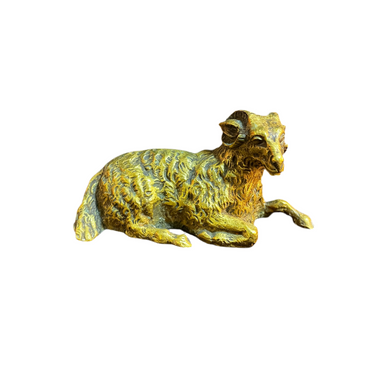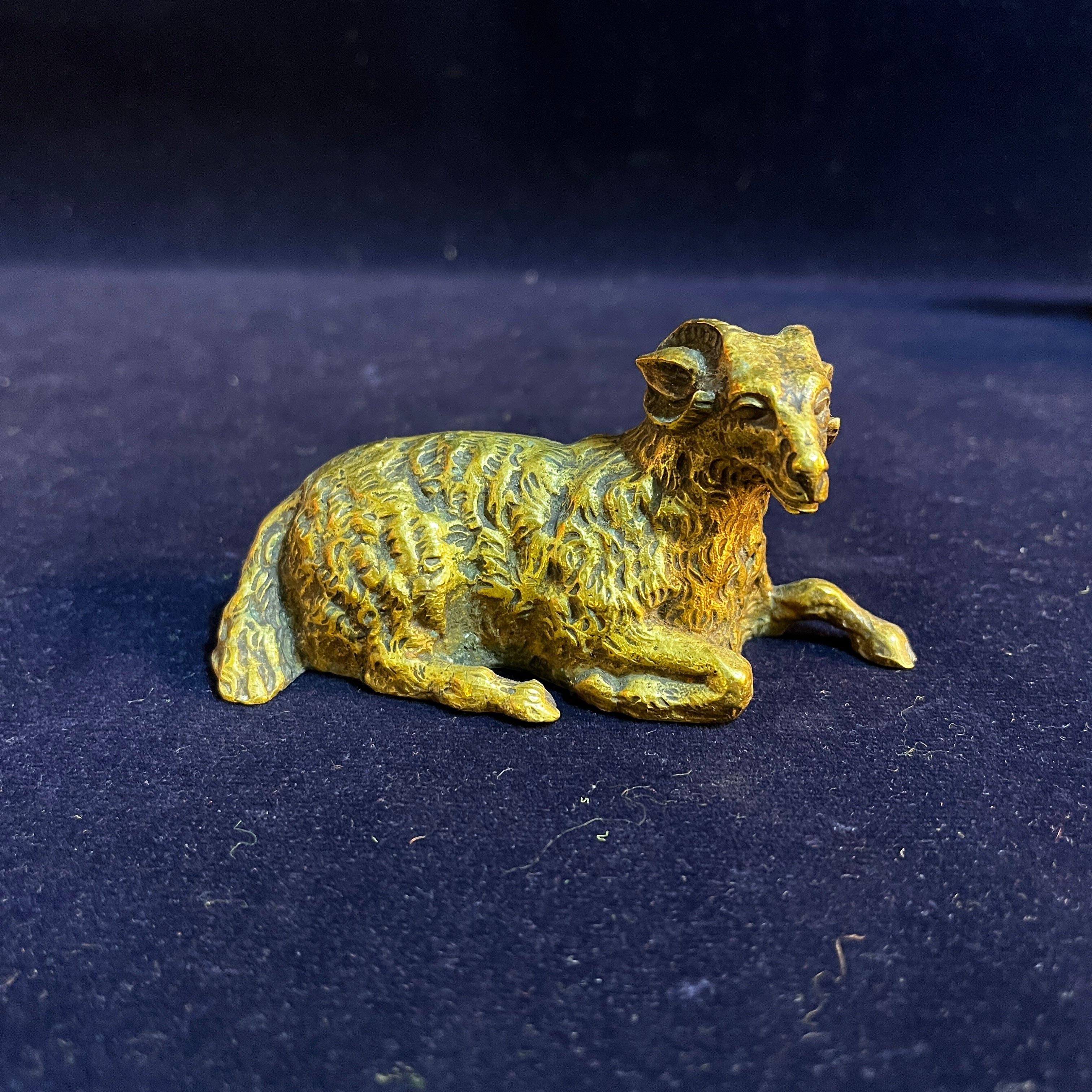 Belle figure en bronze, d'origine française, représentant une mignonne chèvre allongée.