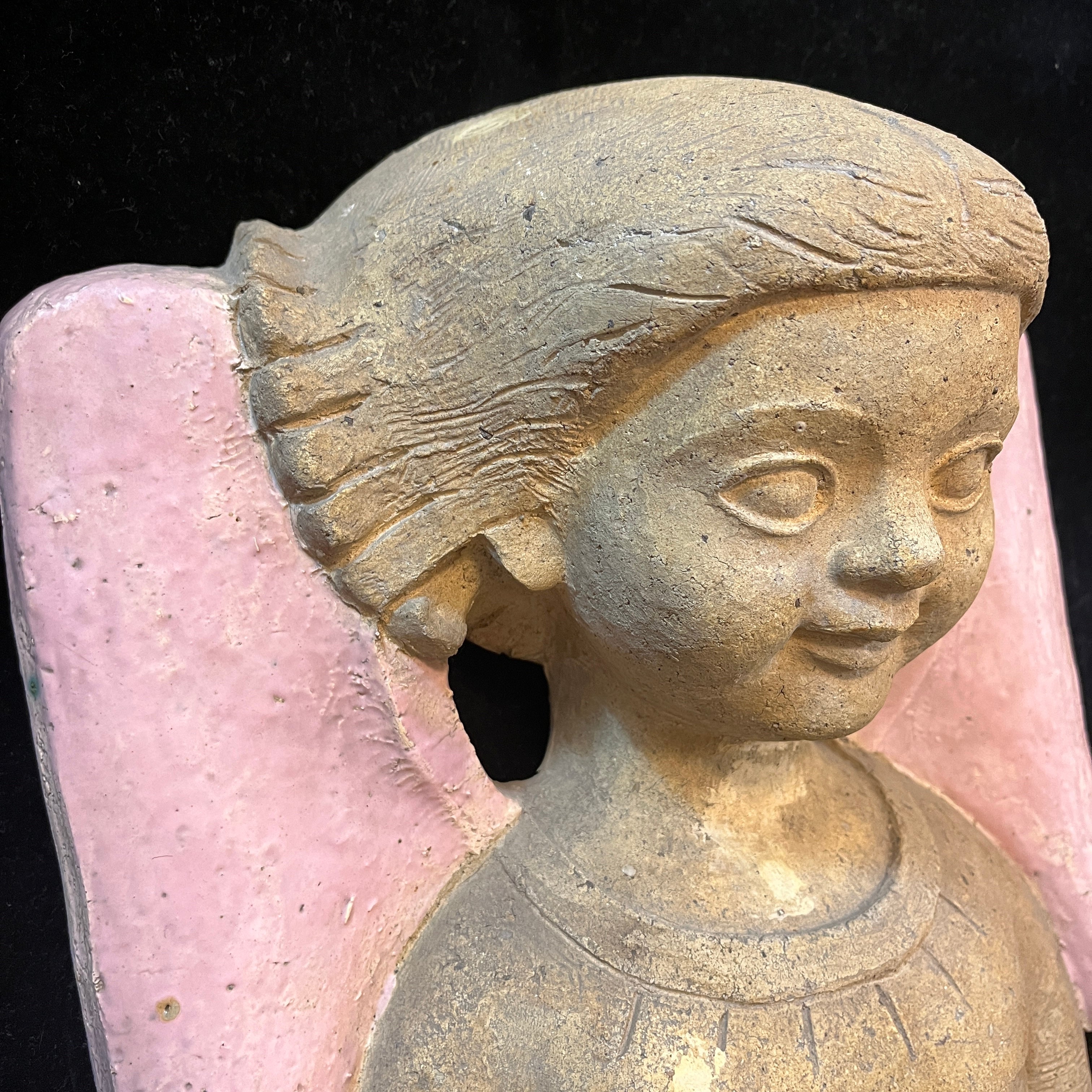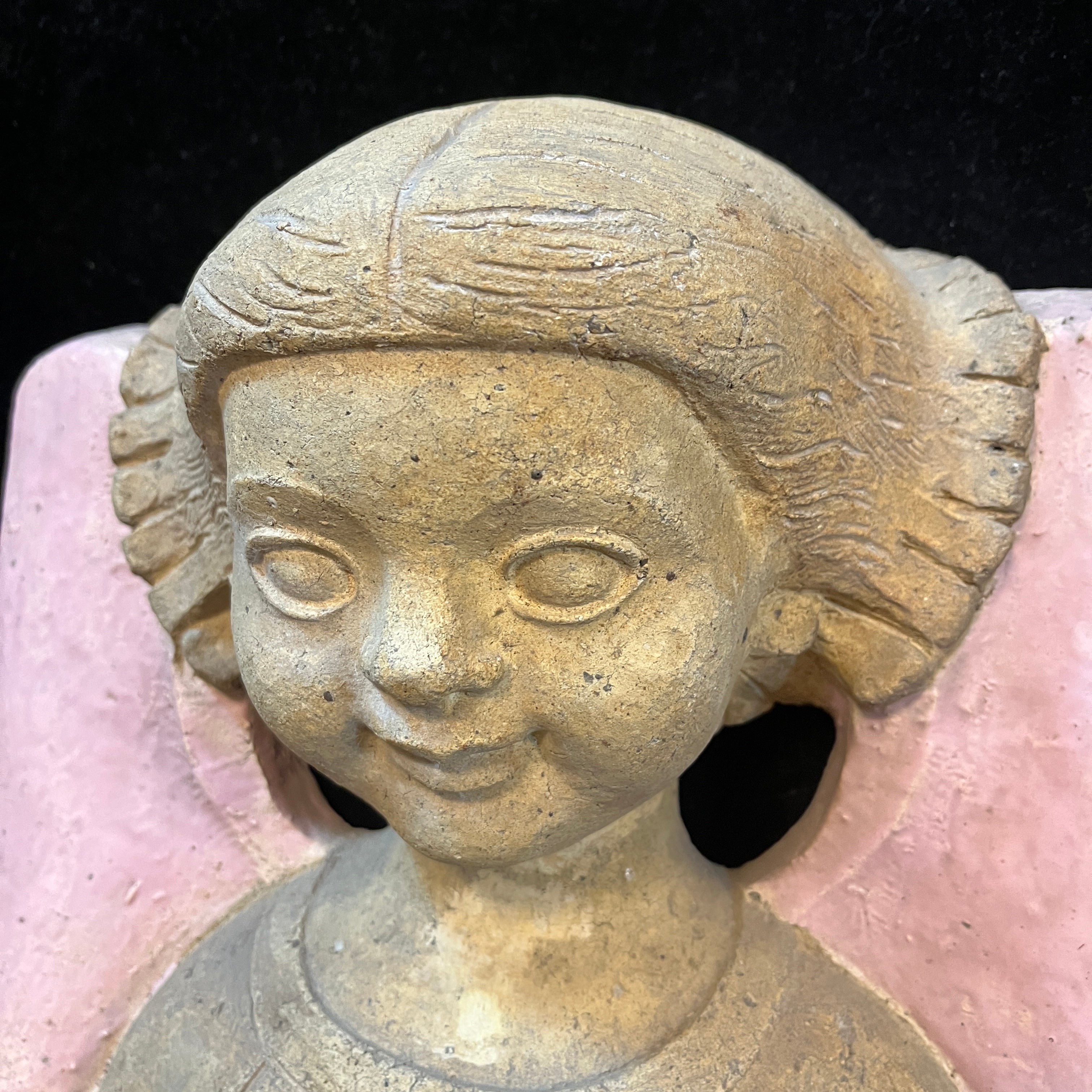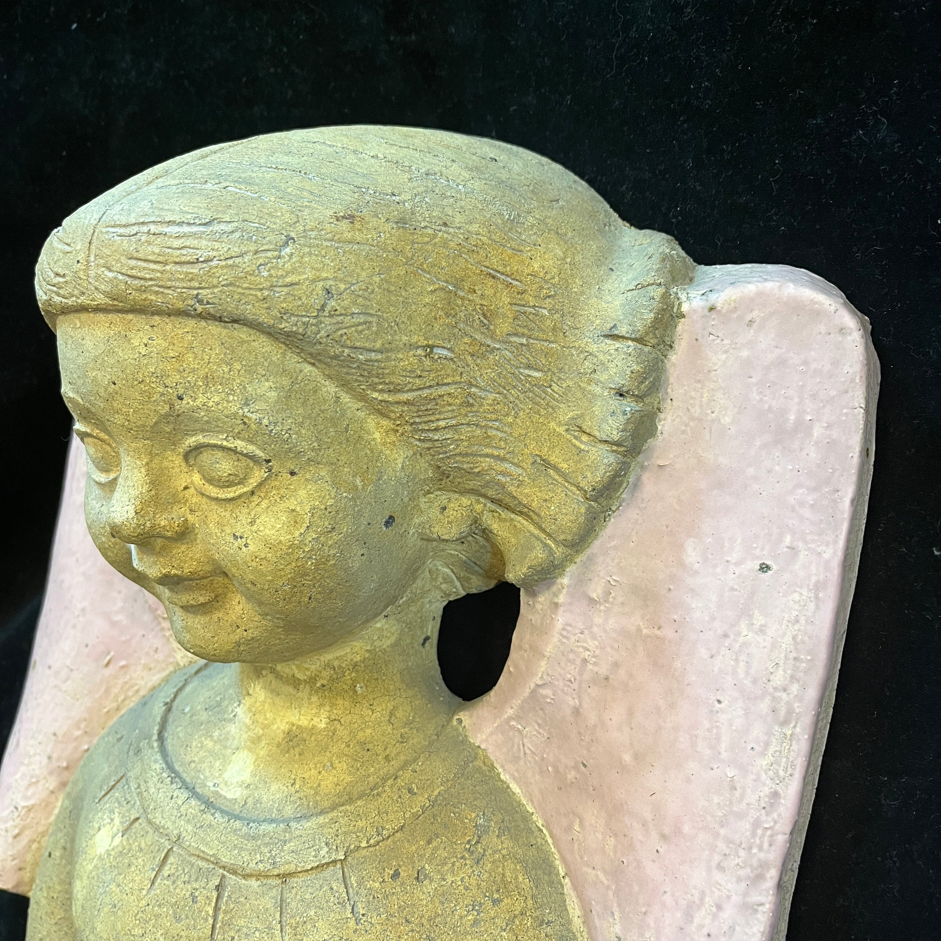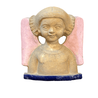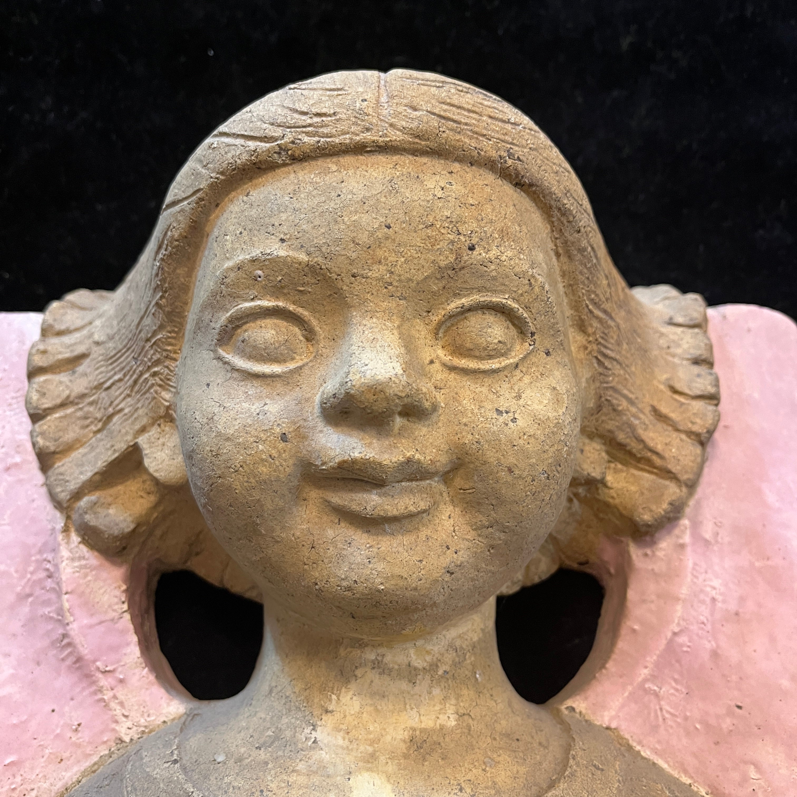 Tierna escultura del reconocido escultor chileno Héctor Román (1927-2007). Figura de un busto infantil que da la impresión de ser un ángel. La escultura viene con la firma del artista y con fecha en 1965.