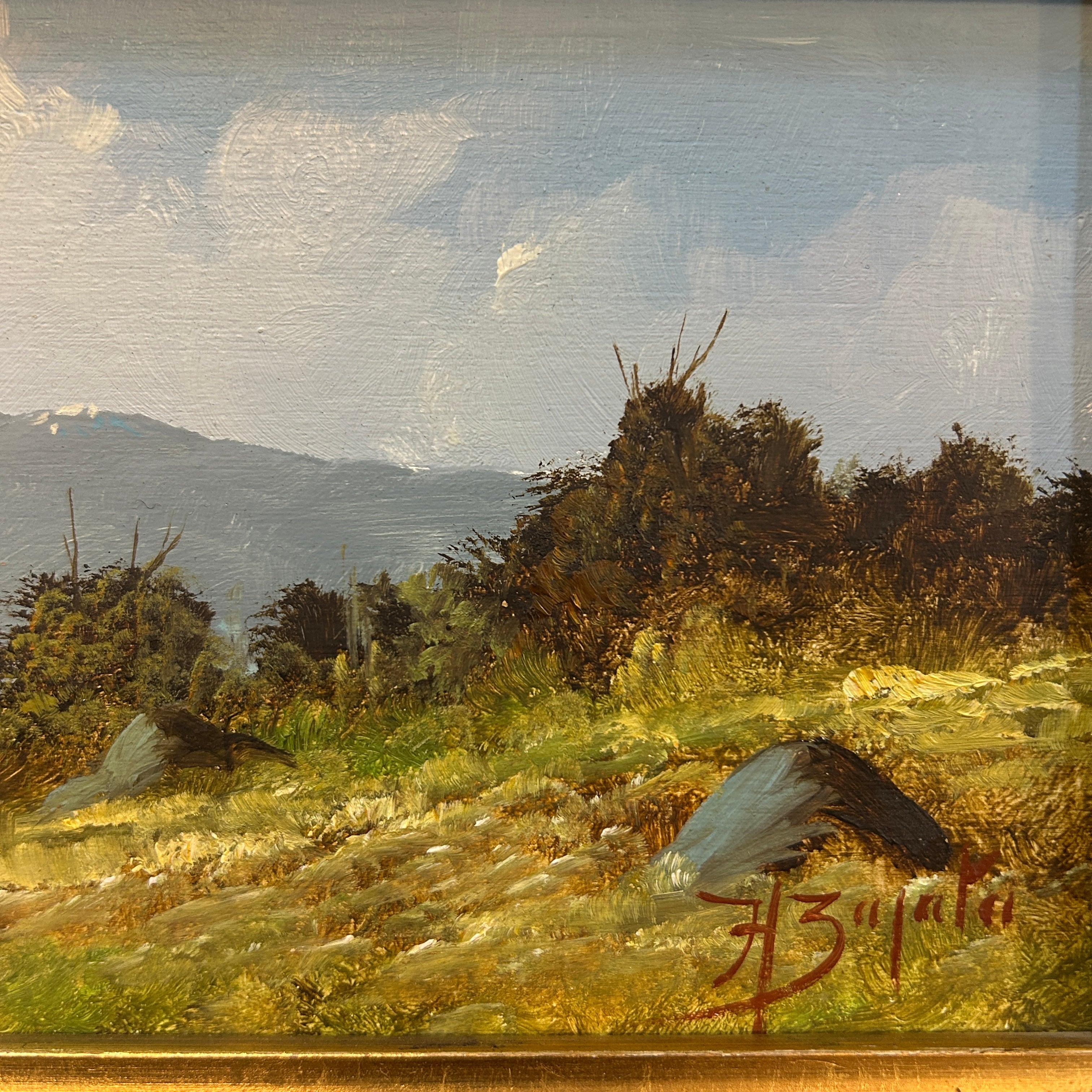 Hugo Zapata - Óleo sobre madera ‘Paisaje de campo y cordillera’ (live)