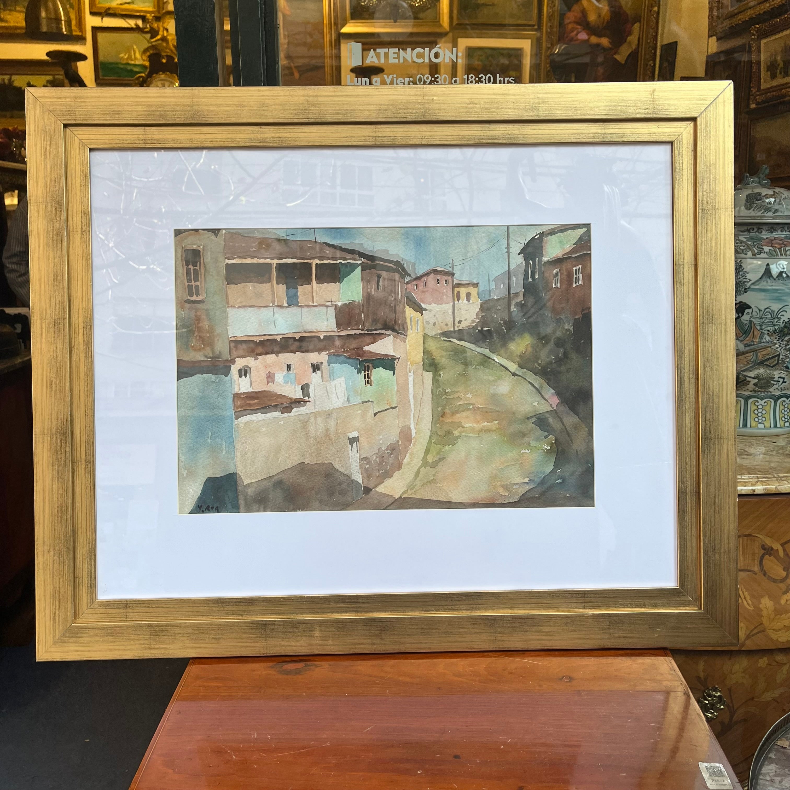 Belle aquarelle qui évoque les ascensions classiques des collines de Buenos Aires.
