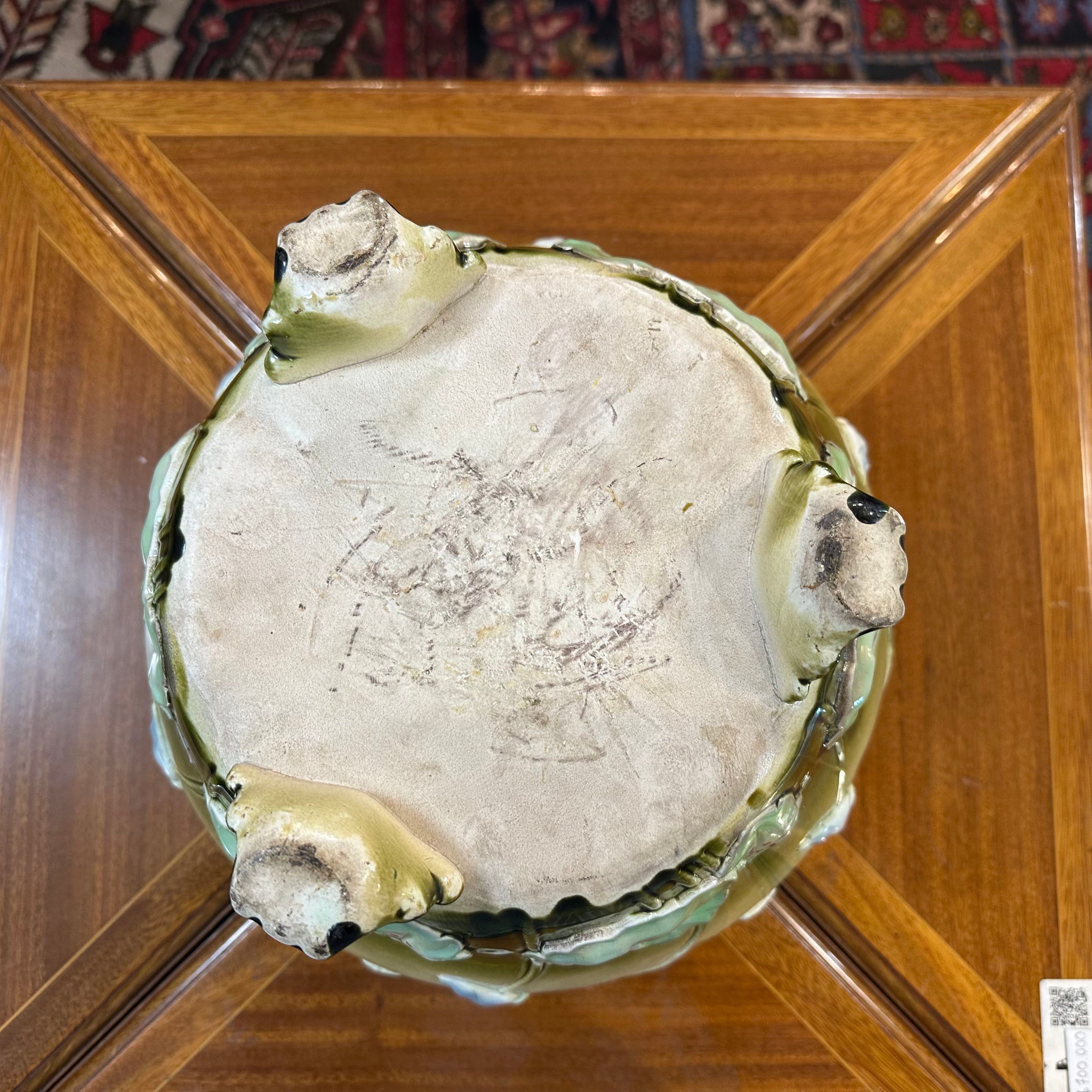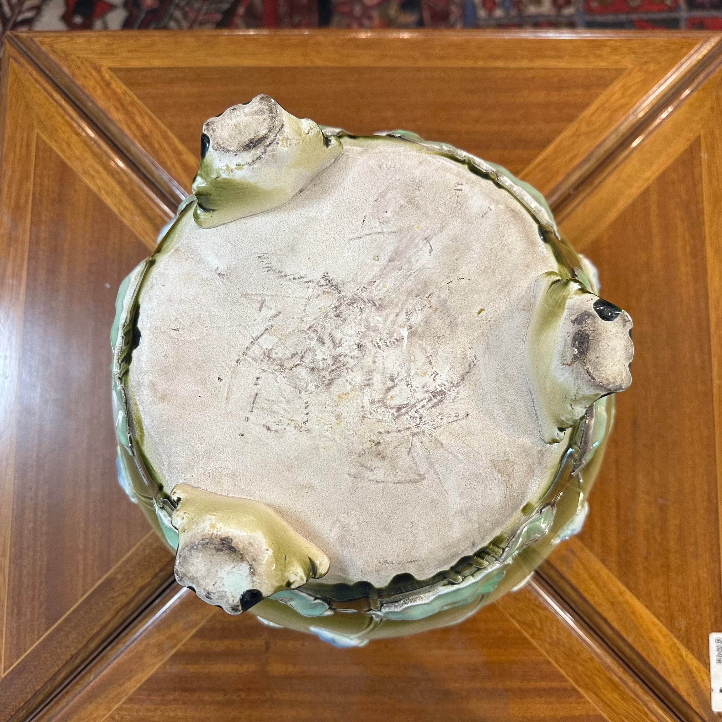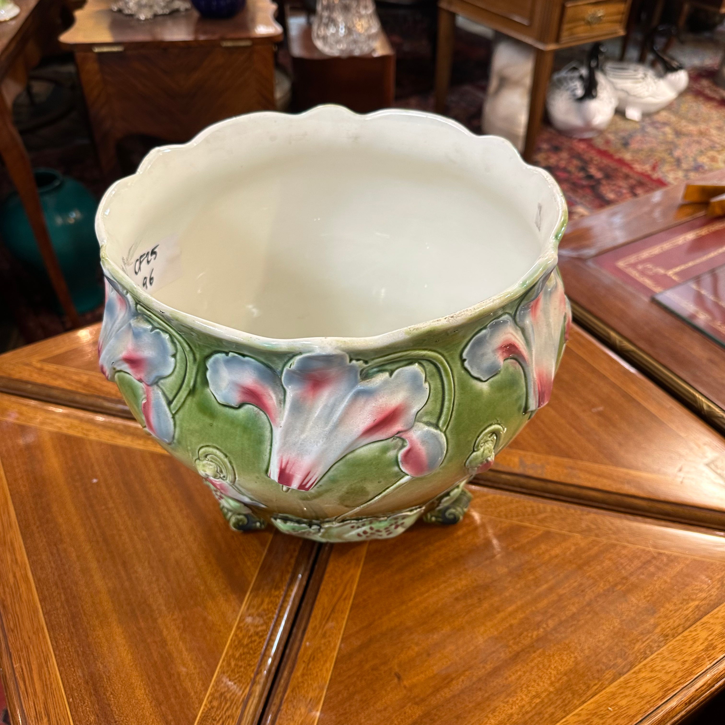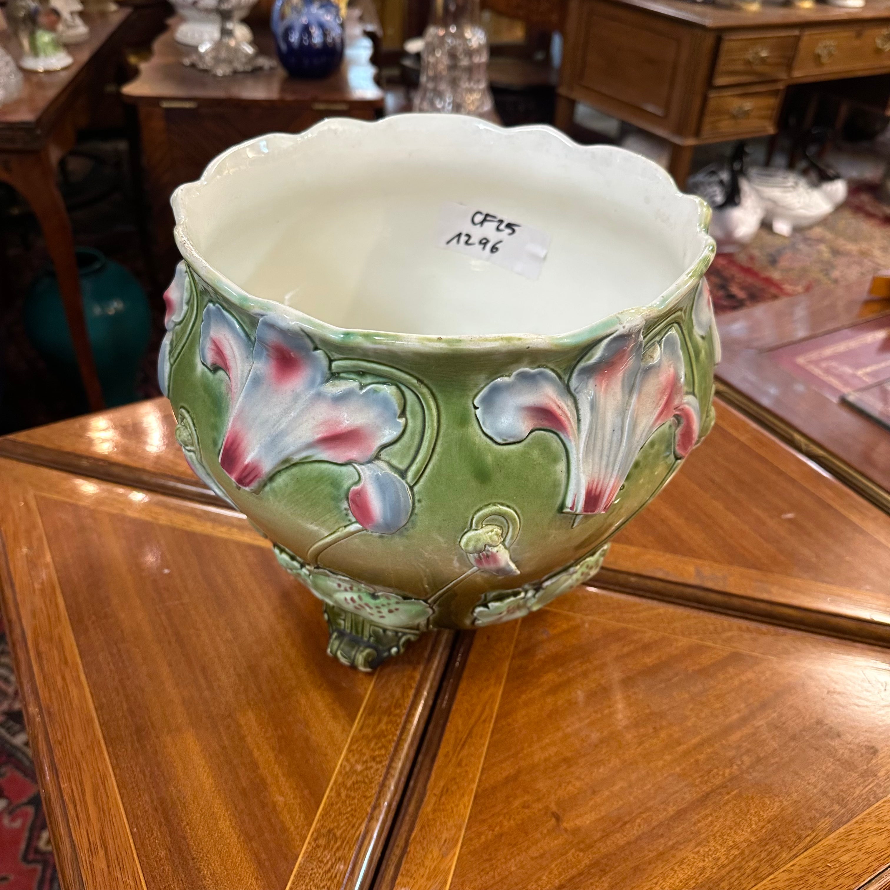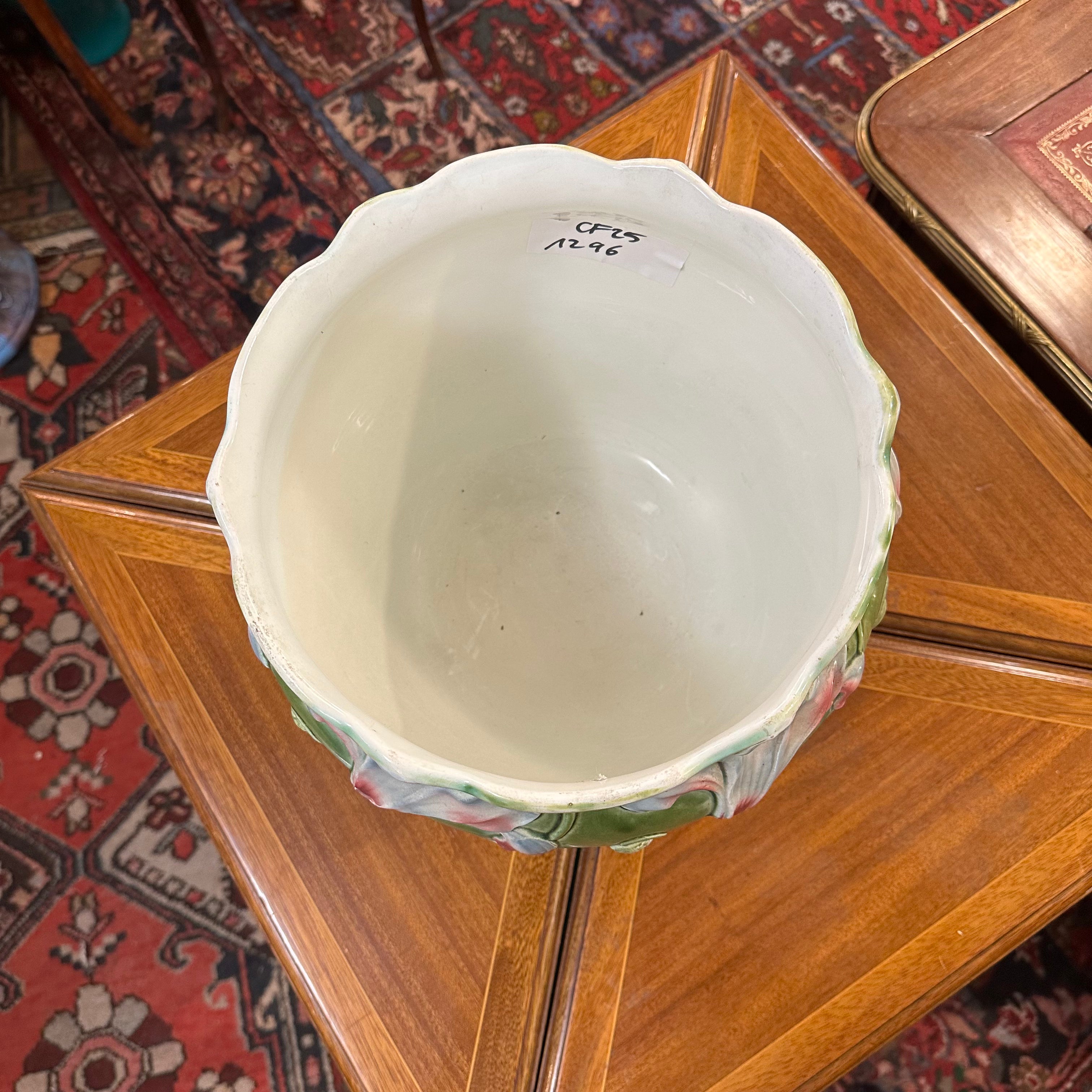 Jardinière en porcelaine majolique française « Fleurs sur fond vert »