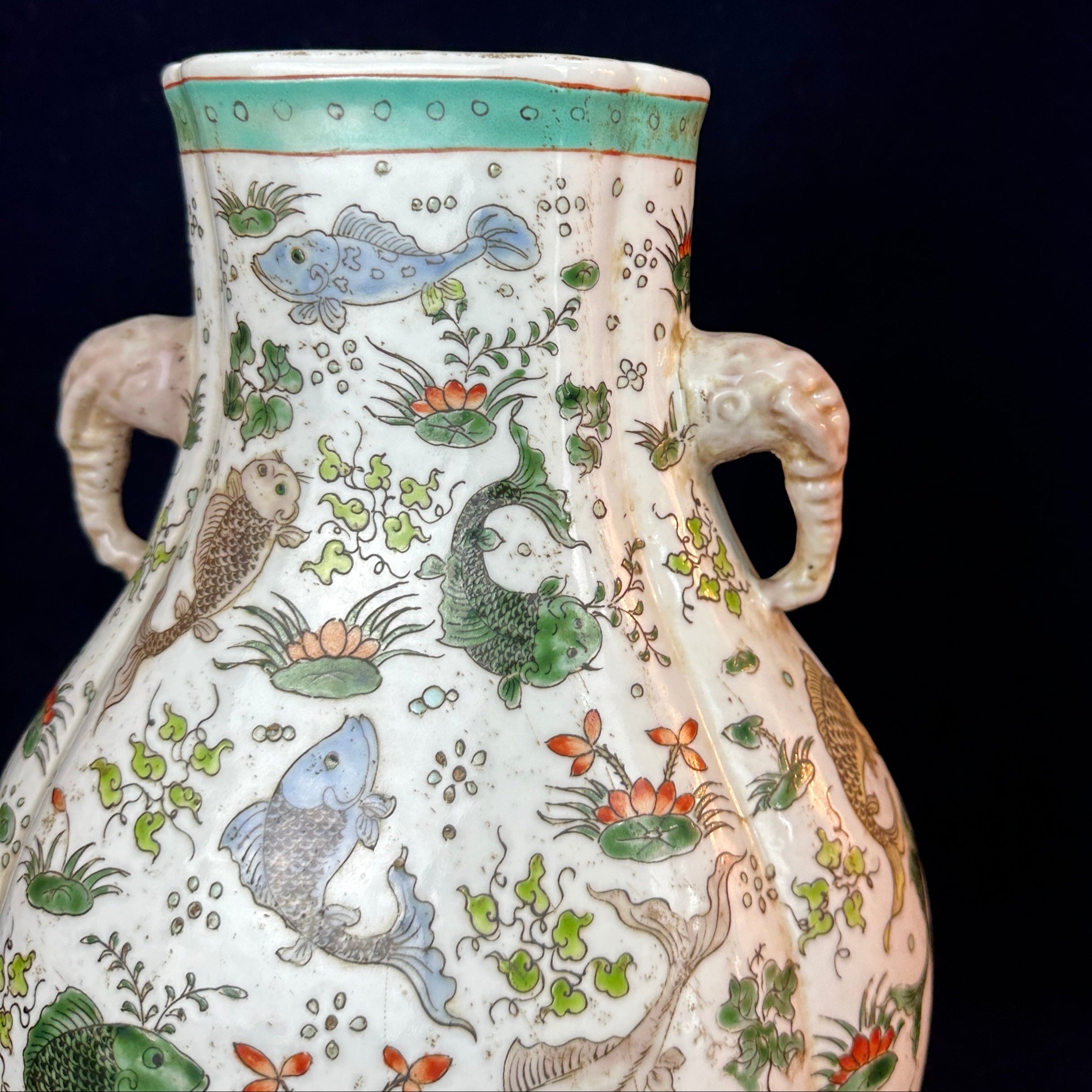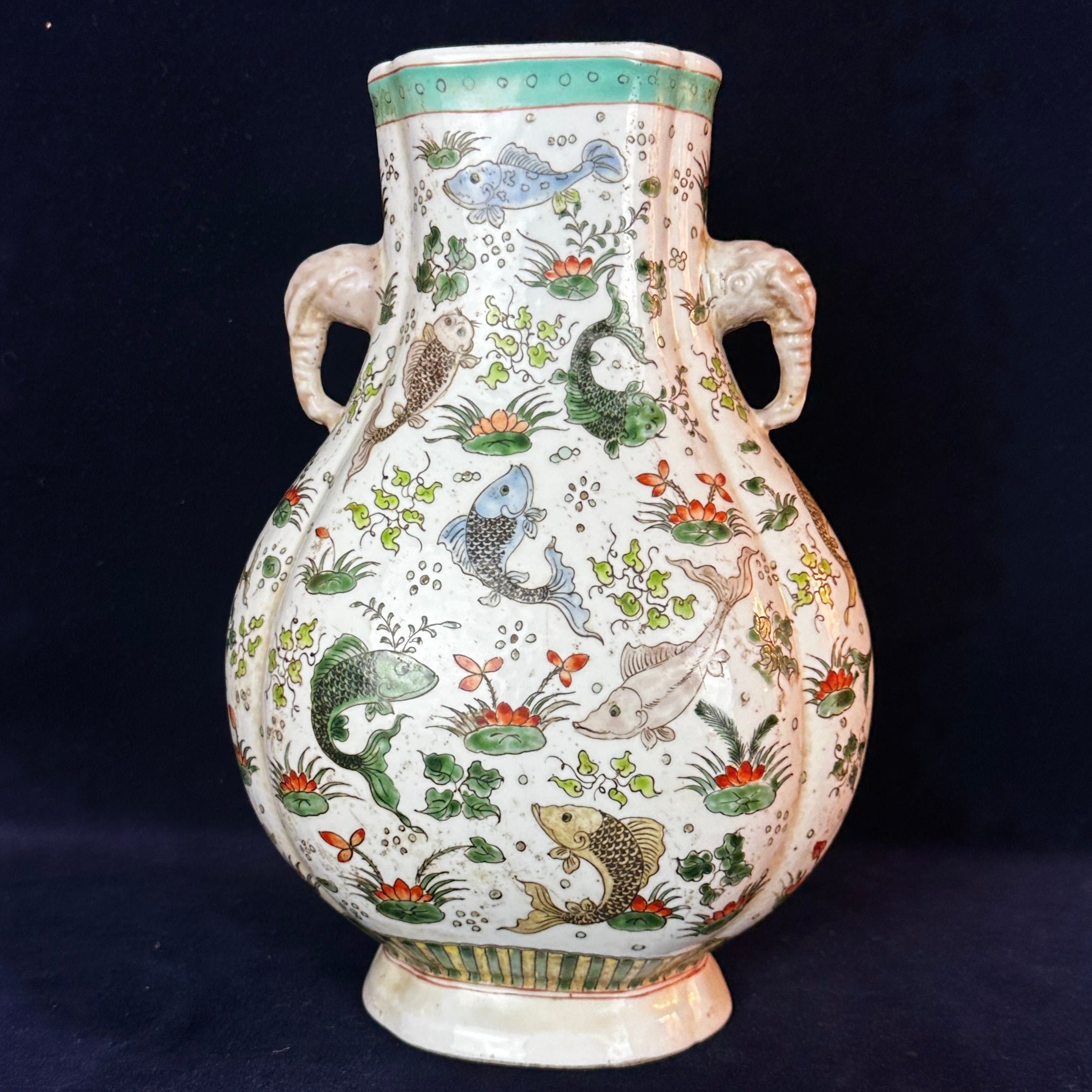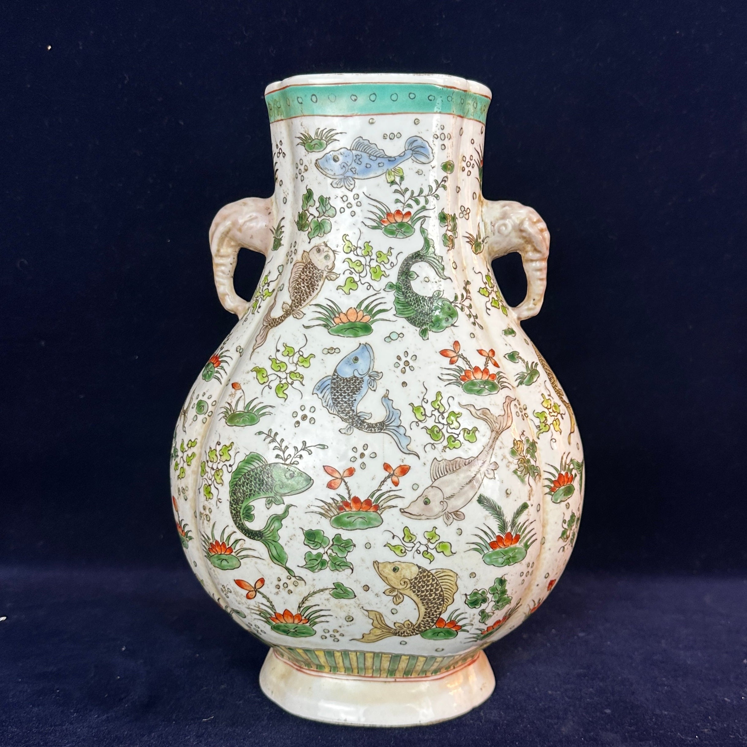 Vase en céramique chinoise à motif de poisson, XXe siècle