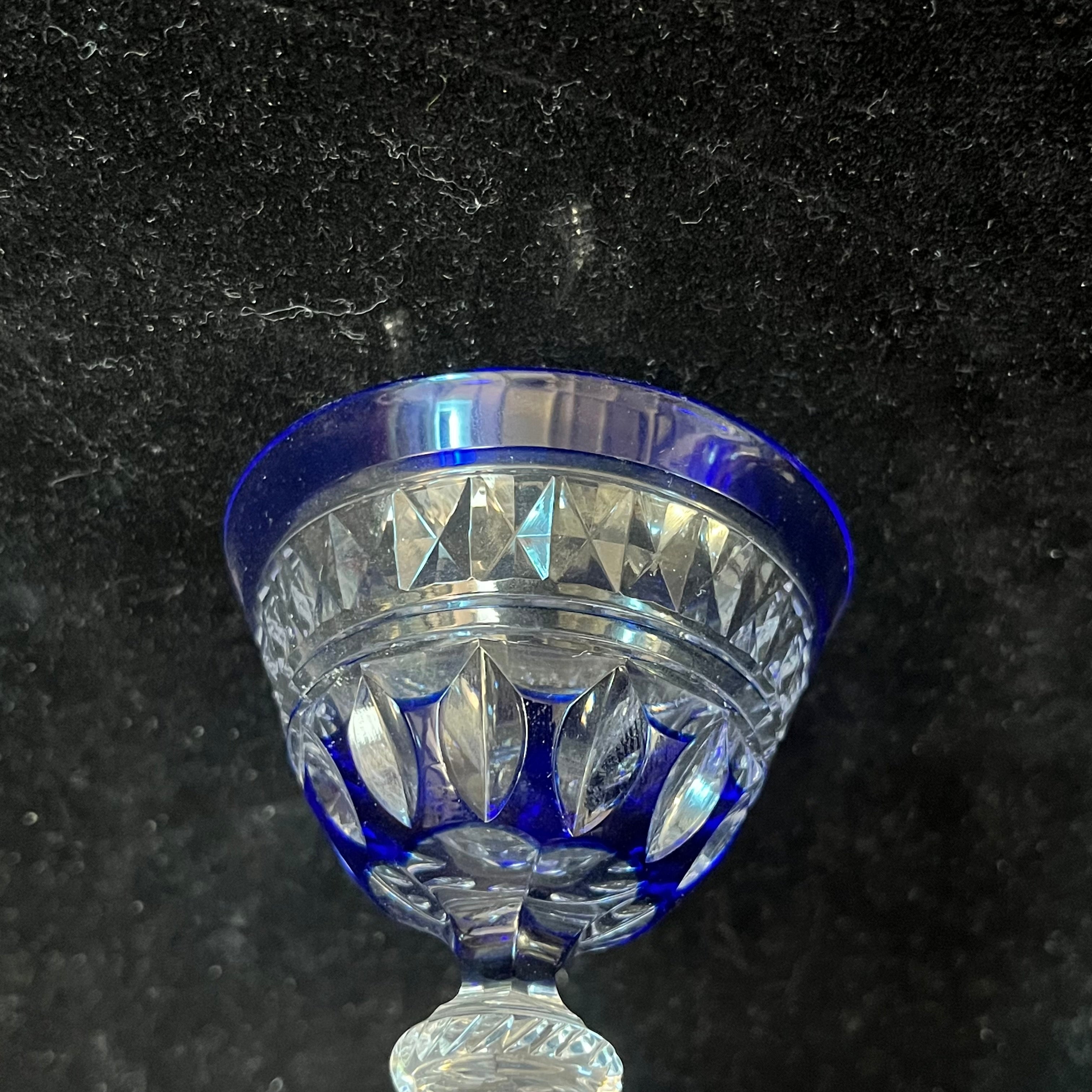 Juego de 4 copitas cristal tallado azul cobalto